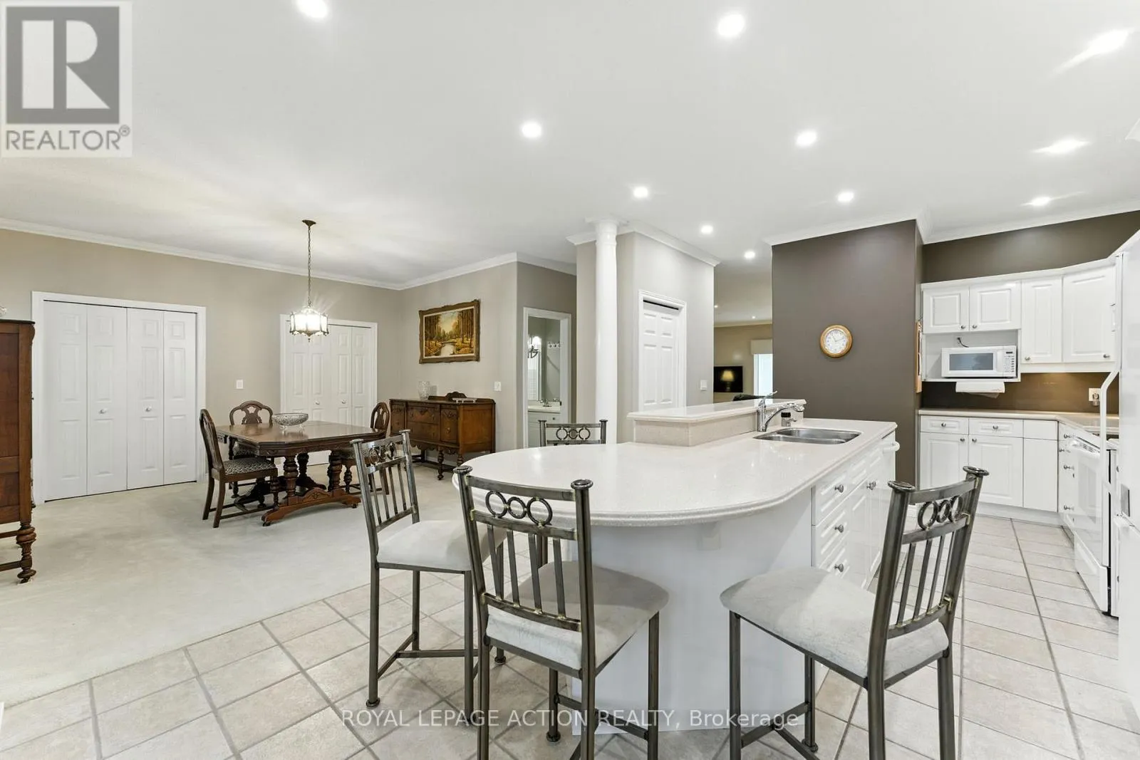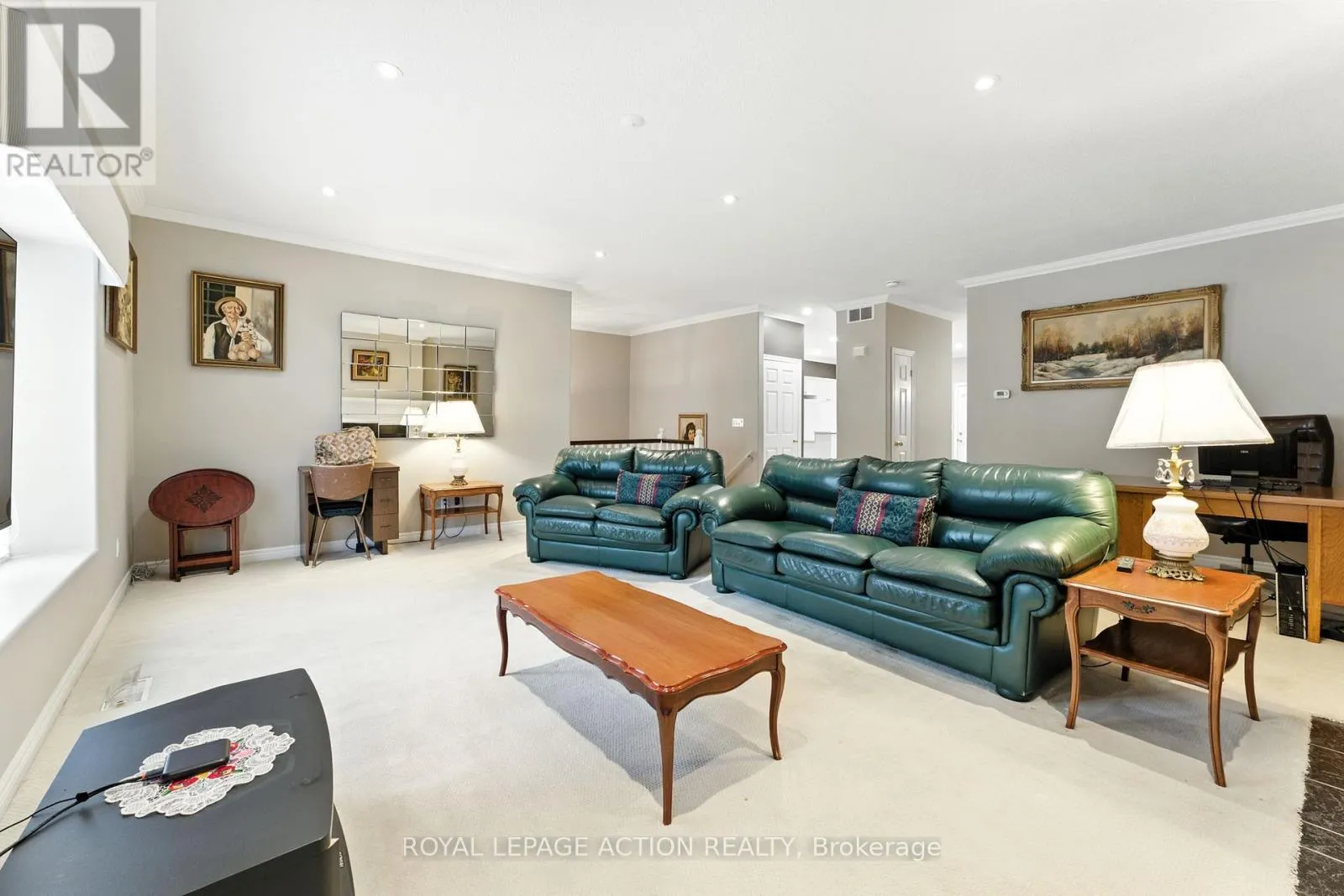 Cross Streets: Paris Road. ** Directions: Paris Road to Hardy Road. Welcome to this meticulously maintained condo ideally situated near the Brantford Golf & Country Club, Glenhyrst Gardens, HWY 403, and scenic walking trails. This home is perfect for anyone seeking a low-maintenance lifestyle in one of Brantford's most sought-after neighbourhoods. Step inside to an open-concept living area that feels spacious and inviting. The bright kitchen features a large centre island with a built-in eating counter, making it perfect for casual meals or entertaining. A separate dining room offers plenty of space for hosting gatherings and can easily be converted back into a third bedroom if desired. The main level also includes a 3-piece bathroom and laundry room. On the lower level, you'll find the primary bedroom, second bedroom, and 4-piece bathroom. This level also provides ample closet space, storage, and direct walk-in entry from the double car garage. The backyard and surrounding area offer peaceful outdoor enjoyment, while the property itself ensures a maintenance-free lifestyle without sacrificing comfort. Whether you're downsizing, investing, or simply looking for the convenience of condo living in a prestigious location, this home is sure to impress. (id:27476)