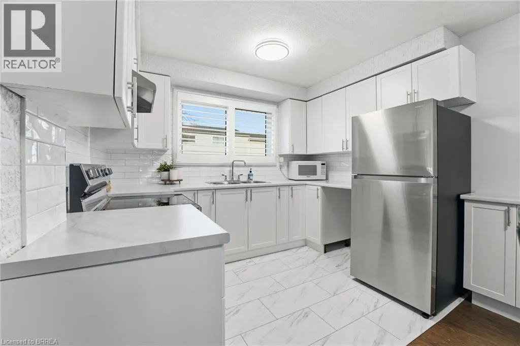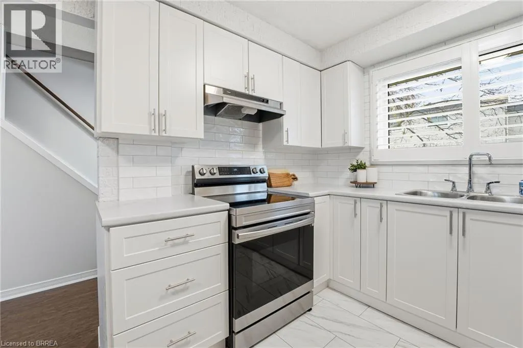 Henry Street Discover comfort and convenience at 281 Stanley Street, Unit F in Brantford! Completely updated this year and ready for new ownership! A turnkey opportunity where you'll find beautiful updated flooring, brand new custom kitchen with quartz countertops and newly laid tiled backsplash, complete with a coffee bar and plenty of pantry storage. Two updated bathrooms and freshly painted throughout. This stylish 3-bedroom, 1.5-bath townhouse has a versatile den & offers approximately 1,058 sq. ft. of bright, functional living spaceâperfect for families, professionals, or first-time buyers. An attached garage with access into the home offers convenience for ever day life. Step into the second level where natural light fills the open-concept living and dining area, seamlessly connected to an updated kitchen and powder room. Upstairs, the third floor features three generous bedrooms and a full bath with ensuite privilegeâideal for both everyday routines and overnight guests. All appliances are included. The home also includes parking for one, and the ease of low condo fees in a quiet, well-kept community. With easy access to major highways, shopping, dining, and great schools, this move-in-ready gem delivers modern comfort in a fantastic location. (id:27476)