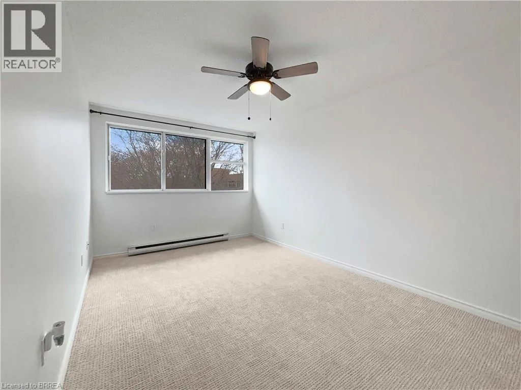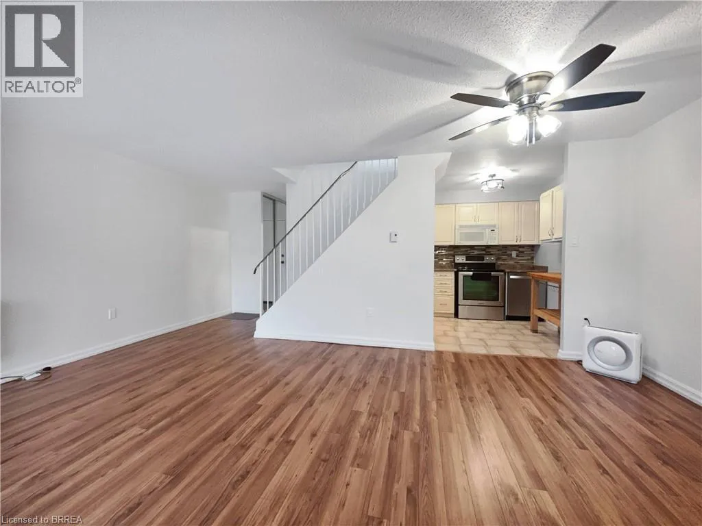 Fairview to Memorial to Hayhurst All utilities included in this move-in ready two-storey condo at Hayhurst Village. This third-floor unit offers two balconies overlooking the front courtyard and the bonus of no upstairs neighbours. Inside, the main level features a refreshed kitchen with stainless steel appliances (including a new dishwasher), a large living and dining area, a convenient 2-piece bathroom, and a flexible bedroom that could work as an office, games room, or nursery. Upstairs are two comfortable bedrooms with new light grey carpet, a full bathroom with updated fixtures and a Bathfitter tub, and in-suite laundry tucked neatly behind double doors. The ductless AC system (approx. 4 years old) cools the entire unit, and the fresh paint throughout adds to the clean, modern feel. Parking is included and located close to a building entrance for easy access. Hayhurst Village is known for its friendly community and its walkable location near schools, parks, shopping, and the Wayne Gretzky Sports Centre. A great option for first-time buyers or downsizers looking for a well-kept home with predictable monthly costs and a functional two-level layout. (id:27476)