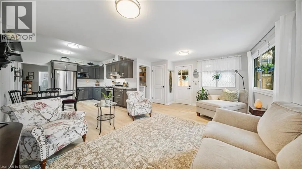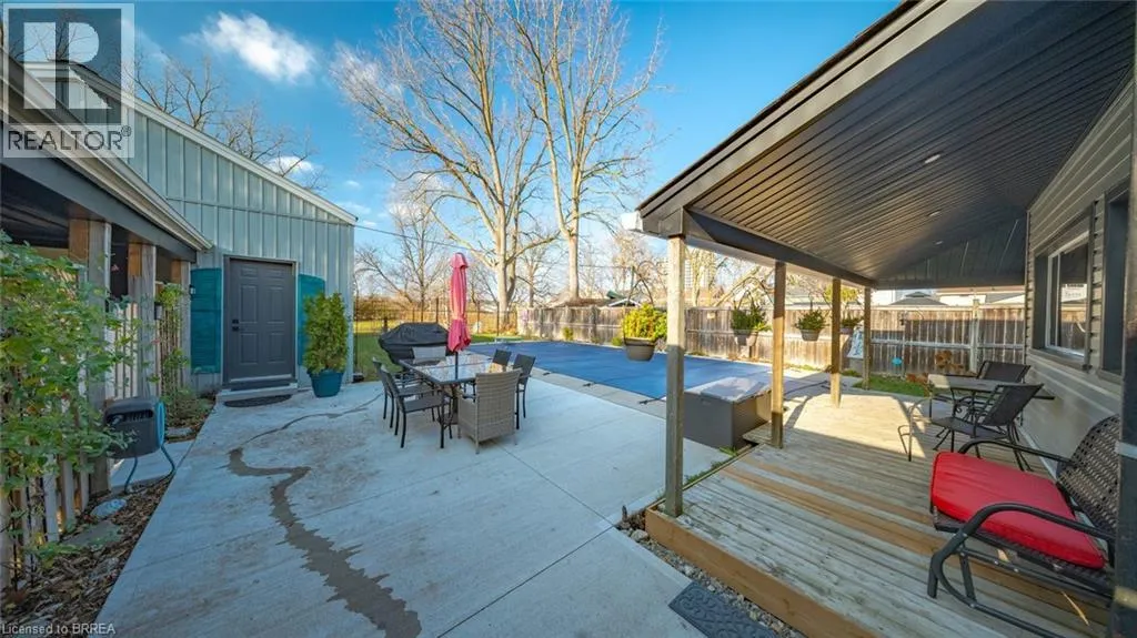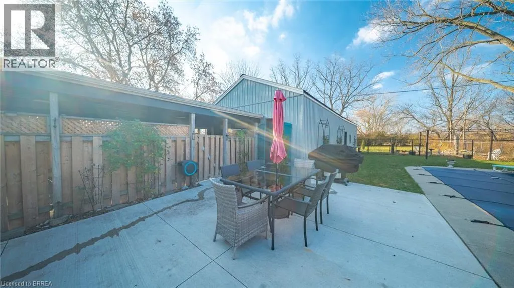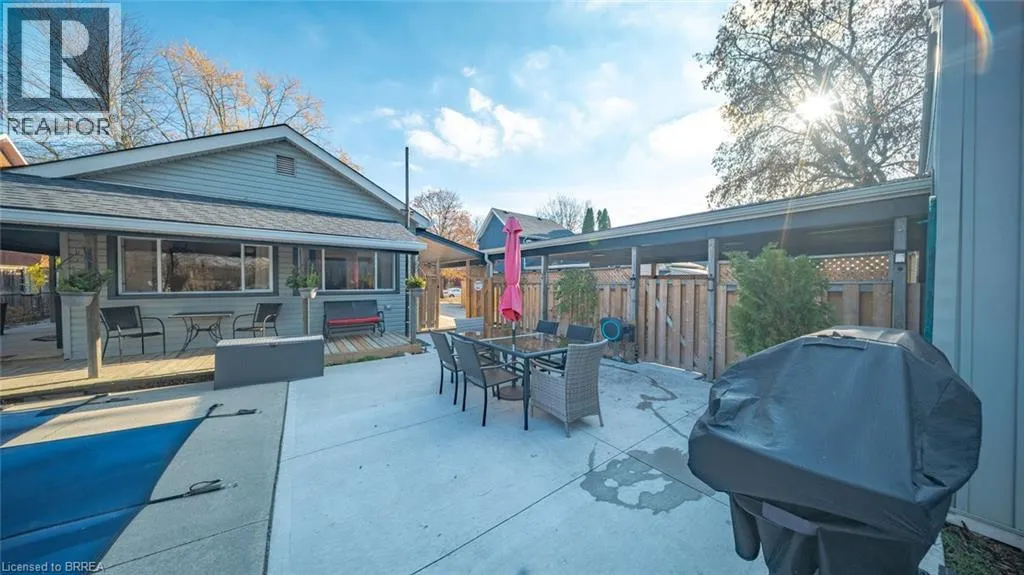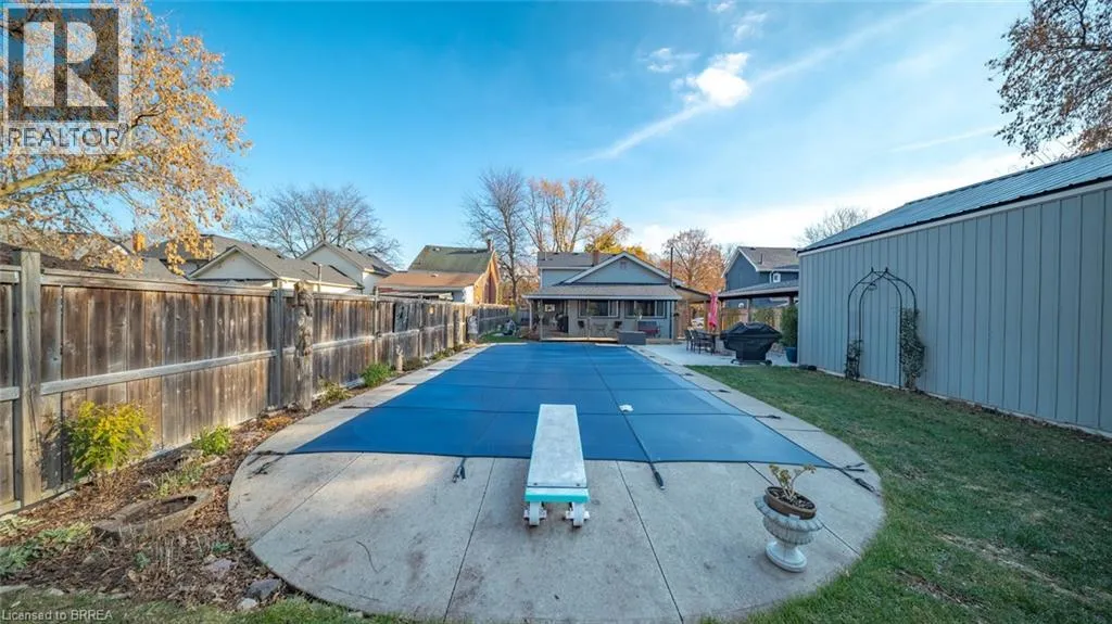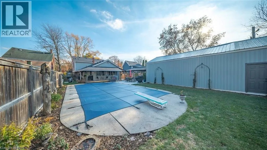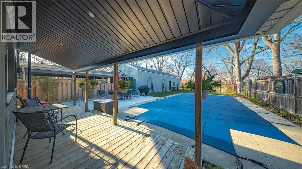 Erie Ave or Ontario St. to Eagle Ave The epitome of turnkey living. Set on an exceptionally deep lot with zoning that supports future opportunity. This 4 bedroom, 3 bathroom home features a layout that feels natural. From the large main floor master bedroom with spa like ensuite, to the large open concept family room with eat in kitchen and view of the beautiful back yard oasis and wrap around deck. Updated across 2023 and 2024, this property features a new roof on both the home and detached garage, fresh interior and exterior paint, renewed landscaping, wrap-around porch overlooking the private back yard. The inground pool has been upgraded with a new liner, pump, and automated cleaner and a new cement patio. No rear neighbours with greenspace stretching toward the Grand River and Brantford's trail system. The 1000 sq ft. heated detached garage is a standout! Upgraded hydro, LED lighting, a year-round versatile bonus room, a dedicated workshop, oversized eaves, and a covered carport and separate gardening room. A versatile workshop and year-round bonus room offer practical space for hobbies, hands-on projects, or a dedicated home work area, with the flexibility to evolve as your needs do. Interior updates include new washer and dryer, CSA-certified wiring, 200-amp service, HVAC, water heater, furnace and a new heat pump servicing the rear family room. The deep lot and zoning framework may allow buyers to explore options such as lot configuration changes, expanded use of the garage/workshop and zoned for additional dwelling considerations. With trails, parks, river access, and daily conveniences nearby, this location blends residential comfort with true urban walkability. (id:27476)