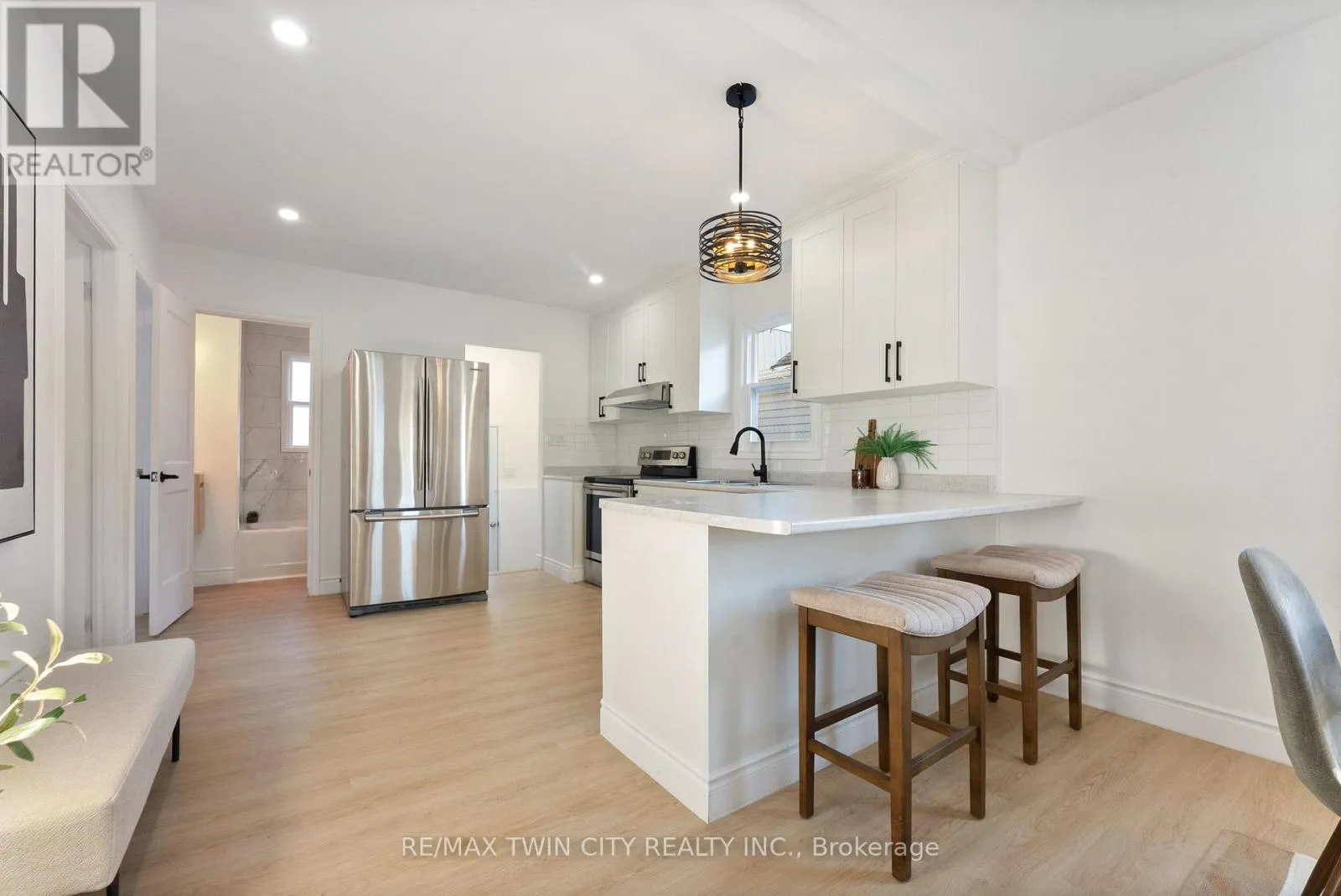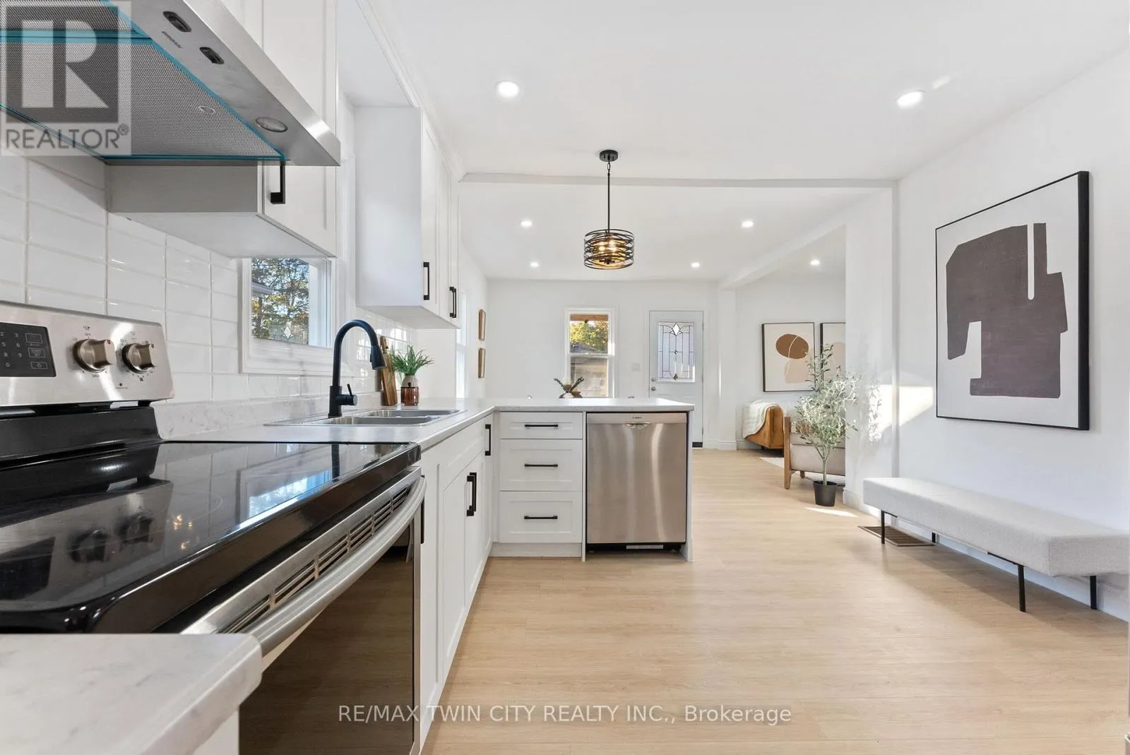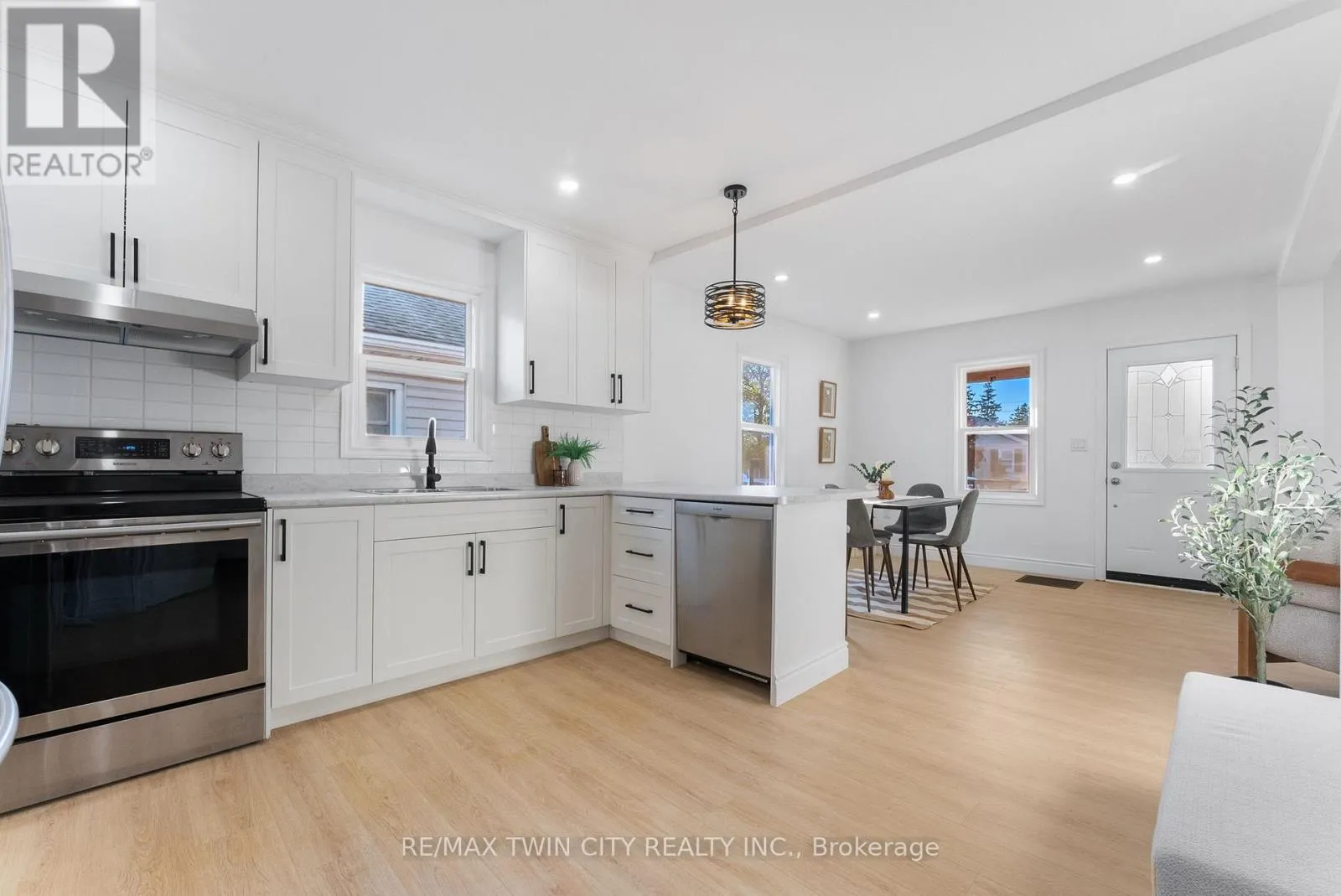 Dundee Street and Dublin Street Welcome to 25 Dundee Street, Brantford. This beautifully renovated 3-bedroom, 2-bathroom bungalow with over 1300 square feet of living space is fully updated and move-in ready for you and your family. Located in a family-friendly neighbourhood, the home is close to all major amenities - including grocery stores, top-rated schools, parks, the public library, restaurants, easy Highway 403 access, and the world-class Wayne Gretzky Sports Centre. Step inside to a bright, open-concept layout featuring a brand-new kitchen with a breakfast peninsula, stainless steel appliances, a separate dining area, and a spacious living room. Recent upgrades include a 100-amp breaker panel, new windows (2025), roof (2025), and doors (2025), high-efficiency furnace (2025), luxury vinyl plank flooring, LED pot light and much more. The fully finished basement offers exceptional versatility, complete with a large bedroom and walk-in closet, a recreation room, a modern bathroom with a glass shower, and a generous laundry area. A separate side entrance provides excellent potential for an in-law suite or rental opportunity. Outside, enjoy a 15' x 25' solid block workshop with new windows and an insulated garage door - perfect for a workshop, business, hobbies, or extra storage. The spacious backyard features a lovely patio, ideal for relaxing or entertaining on warm summer evenings. Don't miss your chance to make this stunning home yours - schedule your private viewing today! (id:27476)