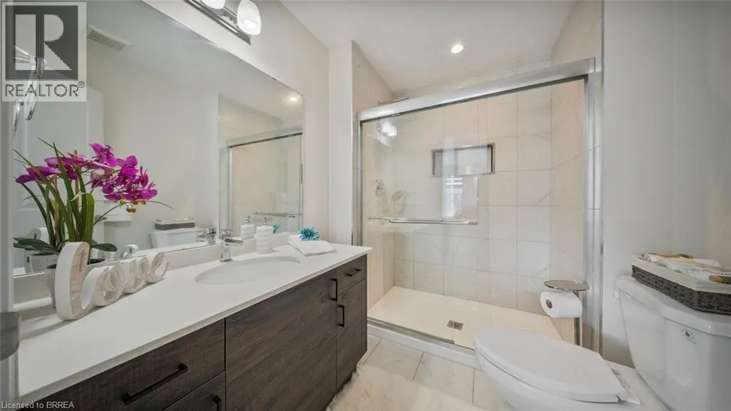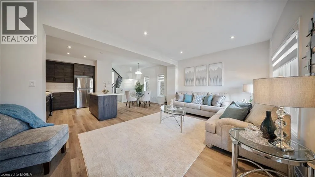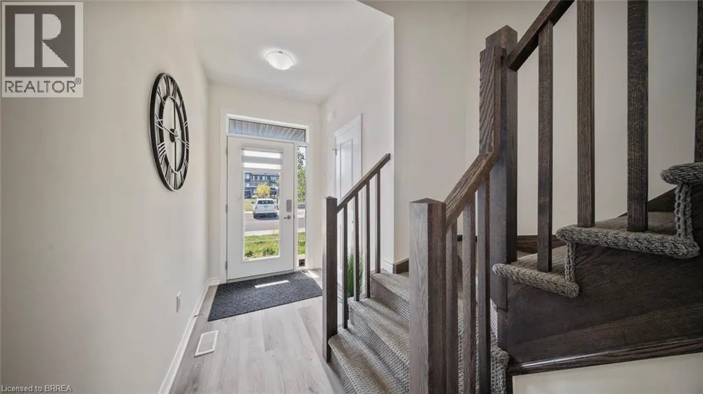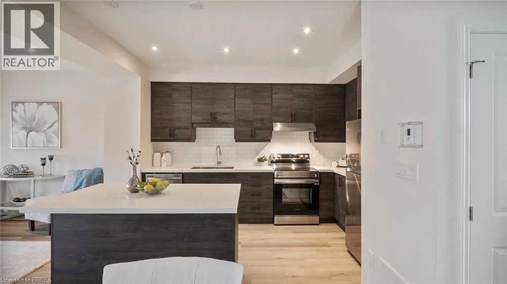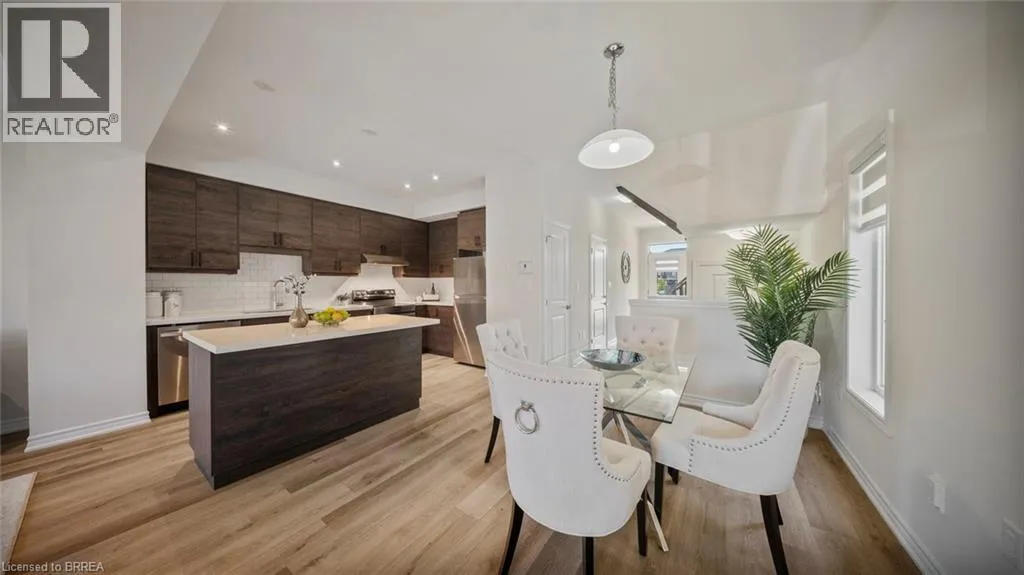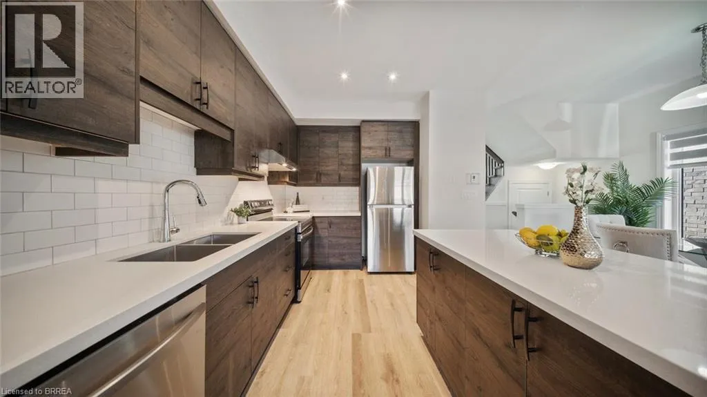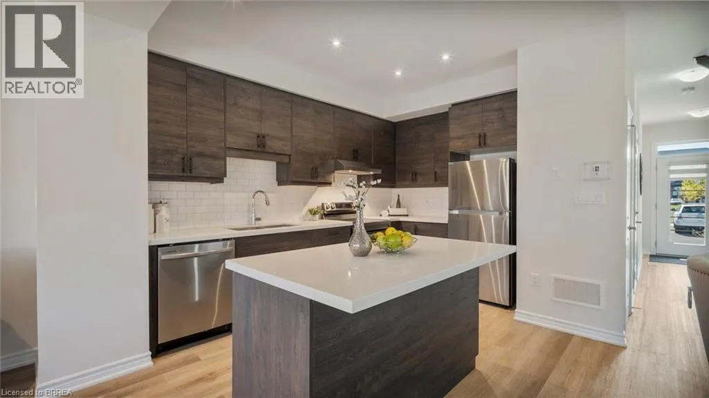 Blackburn Dr & Shellard Lane Welcome to 461 Blackburn Drive Unit #18, where modern comfort meets elegant design in the heart of beautiful Brantford City. This modern masterpiece end unit townhouse offers more than most detached homes do, with 3 spacious bedrooms, 3 bathrooms, and over 1,600 sq ft of thoughtfully designed living space. Step inside to a sun-soaked, open-concept main floor, where oversized windows, 9-ft ceilings, and rich laminate flooring create a bright, airy atmosphere. The gourmet kitchen is a true showstopper, featuring stainless steel appliances, quartz countertops, a large centre island, and stylish tile backsplash, perfect for casual meals or entertaining guests. Upstairs, retreat to the primary suite oasis with a walk-in closet and a private 3-piece ensuite. Two additional bedrooms offer flexibility for kids, guests, or a home office. Convenient upper-level laundry adds ease to everyday living. Enjoy outdoor space on your private backyard patio â ideal for morning coffee or evening relaxation. With an attached garage + driveway, parking for two is a breeze. Set in a quiet, family-friendly neighbourhood, youâre minutes from parks, schools, shopping, and all the conveniences of West Brant. This is low-maintenance living without compromise.. the perfect place to call HOME. Treat yourself to a new set of keys this fall, and fall in LOVE with where you live. (id:27476)