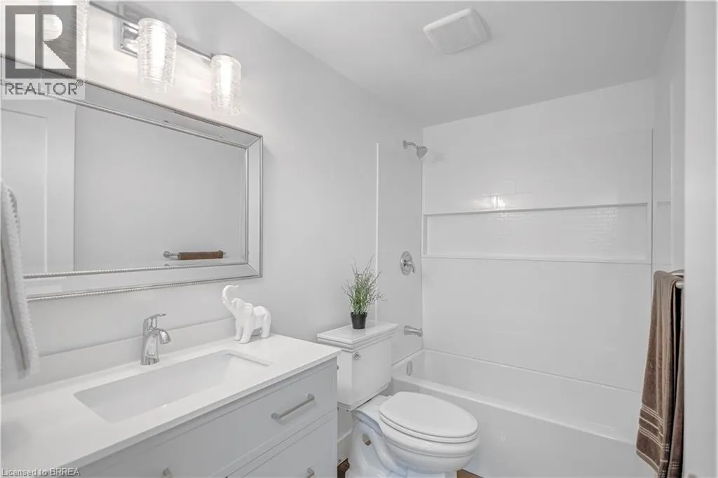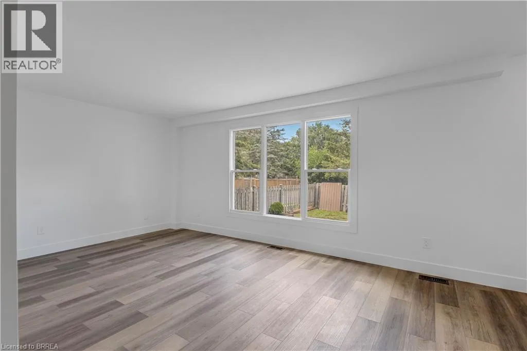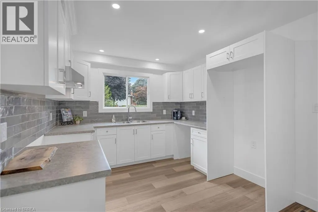 Colborne St. W. to Oakhill Dr, turn right, turn right again into complex, then right again Step inside this fully updated 3-bedroom, 1 ½ bath condo and fall in love with the clean, modern finishes and low-maintenance lifestyle. This unit has been completely redone from top to bottom, offering the rare peace of mind that comes with new systemsâenjoy a brand-new HVAC and furnace (no electric heat here!) plus updated wiring and plumbing. The crisp white kitchen is the heart of the home, featuring classic subway tile backsplash, a pantry for extra storage, and a bright, airy feel that makes cooking a joy. Every level has been refreshed with new flooring, wider trim, and new doors, giving the whole space a cohesive and polished look. Both bathrooms have been updated, and the finished basement adds that extra living space for a family room, home office, or gymâwhatever suits your lifestyle best. Step outside to your fully fenced yard, a perfect spot for morning coffee or evening relaxation, with the bonus of having your assigned parking space conveniently close by. Condo fees are low, making this a smart and affordable choice for first-time buyers, downsizers, or anyone seeking a move-in ready home without the upkeep of a detached property. The location is just as appealing as the home itself. Youâre a short walk to parks, scenic walking trails, and the beautiful Grand River, perfect for outdoor enthusiasts or those who just enjoy a peaceful stroll in nature. This property truly blends style, function, and value in a community setting youâll be proud to call home. (id:27476)