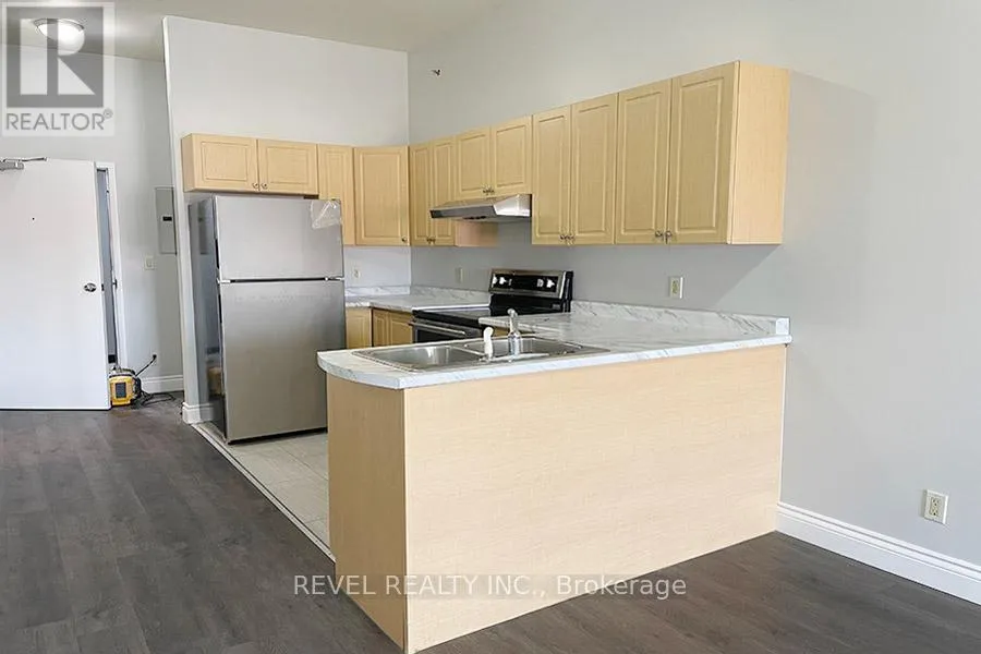 Cross Streets: Brant Ave & Colborne. ** Directions: From Brant Ave, head east on Colborne St. Building on left hand side. Located Downtown at Harmony Square. Not ready to buy - no problem! Welcome home to 150 Colborne Street, Unit 403, located in the heart of downtown Brantford looking onto Harmony Square. This renovated loft-style condo offers 1 bedroom, 1 bathroom, high ceilings, a spacious balcony and beautiful finishes throughout. The first thing you will notice when entering this condo is the fantastic kitchen with stainless steel appliances and new countertops. The kitchen is open to the dining and living spaces making entertaining a breeze! The large window allows tonnes of natural light to flood into this space. The main bedroom is very spacious and offers enough space to include a desk or work area. French doors off the bedroom bring you out the balcony that overlooks Harmony Square making this the perfect spot to enjoy the warm summer months. Last but not least is the 4 piece bathroom which has been beautifully updated. The air conditioner was replaced in 2024. This building offers coin-operated laundry so you don't have to worry about going to a laundry mat-location, location, location. With a large selection of entertainment and dining choices within steps of the building including frequent festivals and events, this is the perfect spot for you to call home! Parking is all around and Municipal parking is available for approximately $80.00 per month if parking is required. Application, letter of employment & proof of income, credit report and reference required. (id:27476)