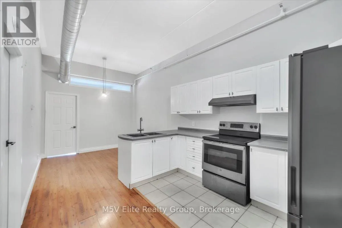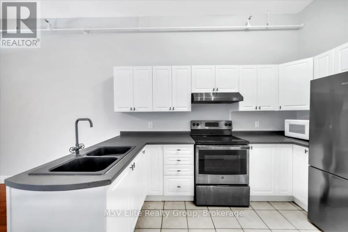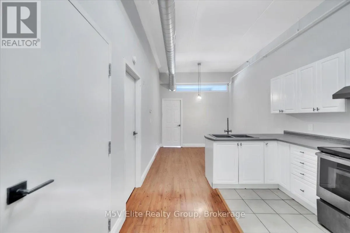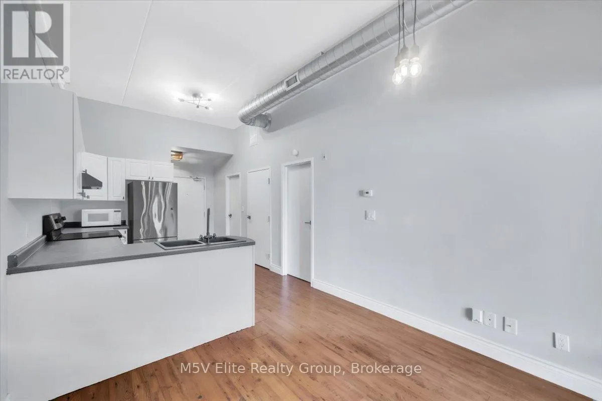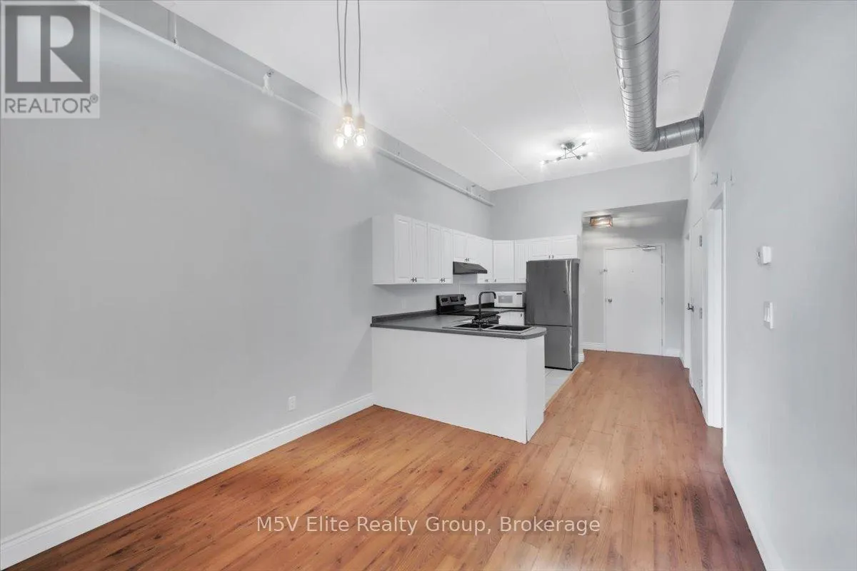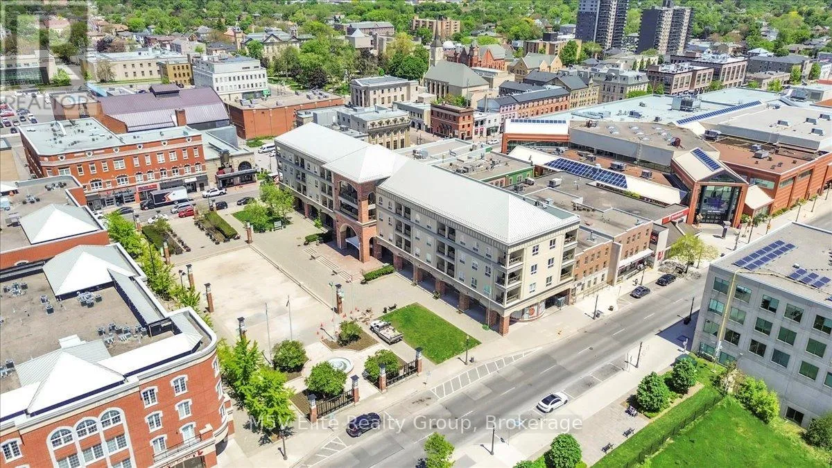 Colborne St E & Queen St Modern 2-BR, 1-BA loft-style condo in the heart of downtown Brantford at Harmony Square. Fully renovated with soaring ceilings, open layout, sleek kitchen w/ stainless steel appliances, and private balcony overlooking the square. Steps to Laurier, Conestoga, YMCA, cafes, restaurants & shops. On-site laundry & secure access. Nearby parking at Market Centre Parkade ($80/mo). (id:27476)