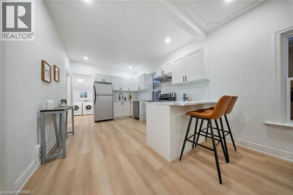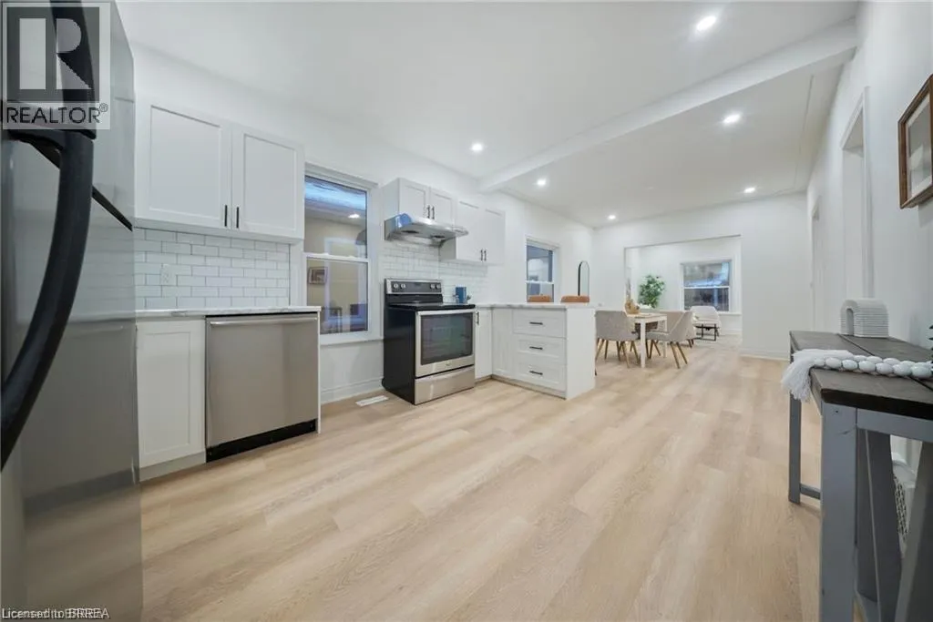 Carlyle Street and Colborne Street West Welcome to 12 Carlyle Street in the City of Brantford. This beautifully renovated 3-bedroom, 2-bathroom solid brick bungalow has been updated from top to bottom and is truly move-in ready. The home features a bright, open-concept layout complete with a brand-new kitchen with a breakfast peninsula, a dedicated dining area, a separate living room, over 1300 sqft of living space and the convenience of main-floor laundry. Recent updates include a new roof, windows, 100-amp breaker panel, luxury vinyl plank flooring throughout, new doors, and more. Located in the family-friendly Old West Brant neighbourhood, this home is close to all amenitiesâmultiple grocery stores, shopping, restaurants, quality schools, parks, Starbucks, and miles of scenic walking, hiking, and biking trails along the Grand River. Enjoy the spacious patio overlooking the large backyardâperfect for entertaining on warm summer evenings. Donât miss your chance to view this stunning home. Schedule your showing today! (id:27476)