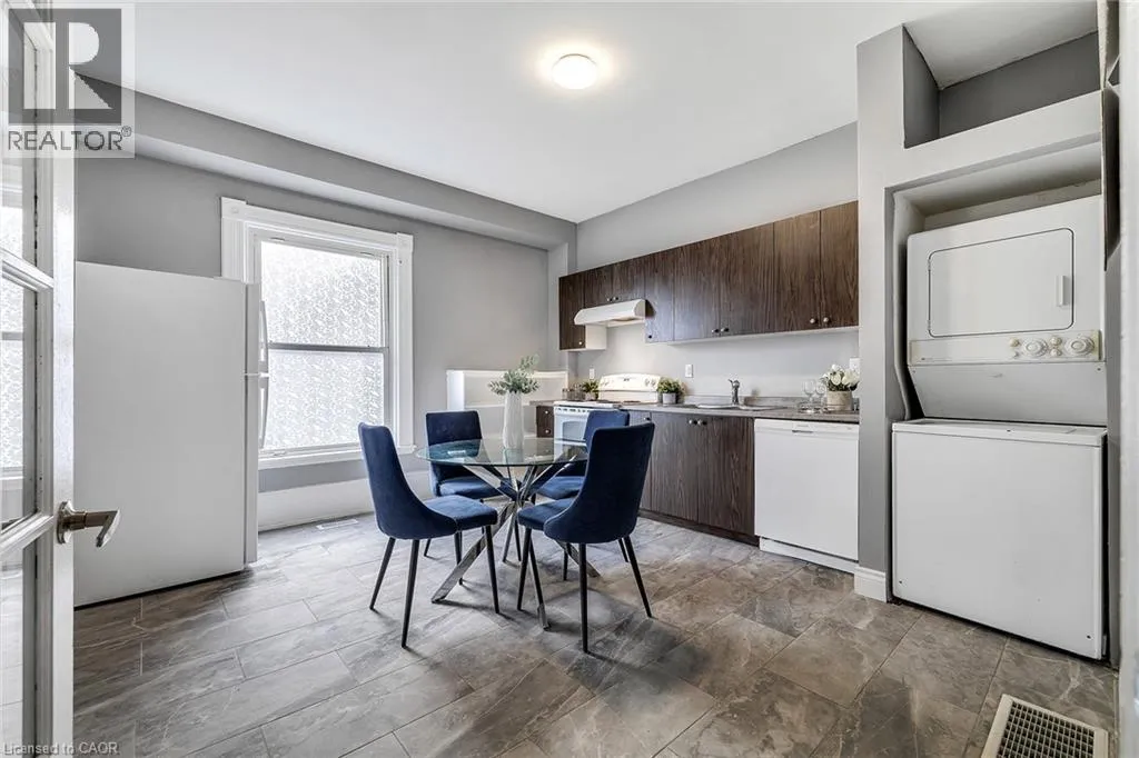 Brant Ave to St. James St to William St. Welcome to a stunning home located in Brantford's Victorian District. This charming and spacious 3 bed, 1.5 bath main + second floor unit features 10' ceilings, Porcelain tiles, a new powder room (Oct 2025), main floor laundry, kitchen, living and dining. Upstairs offers 3 spacious bedrooms, and a 4-pc bath. Professionally done exterior painting, gives a fresh and modern finish. Don't miss this charming, move-in ready home. (id:27476)