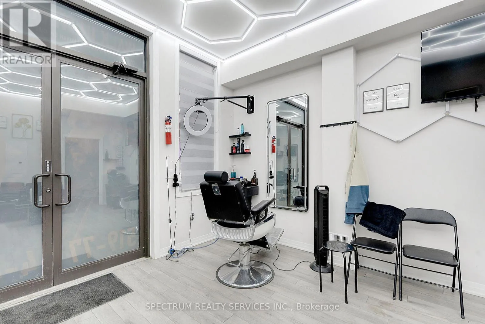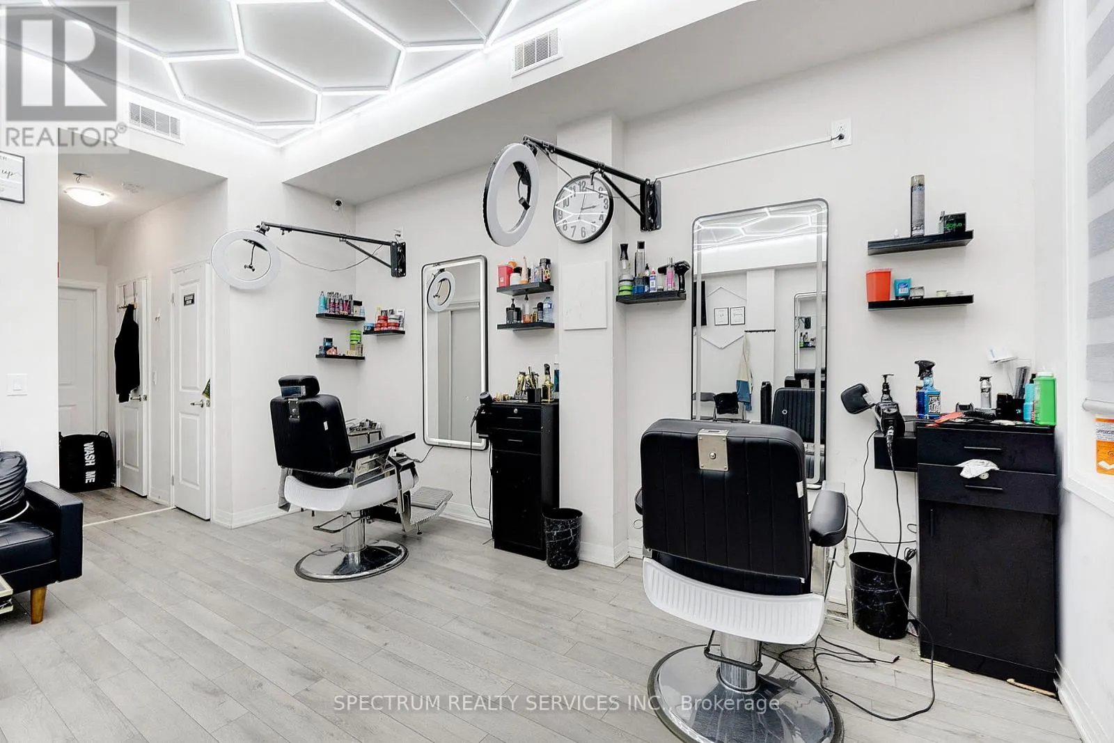 COLBORNE & KIWANIS PARK Excellent opportunity to lease a retail unit in a prime location near Highway 403, within a well-established commercial plaza and close to major amenities. This 410 Sq.Ft. Unit is ideally suited for a hair salon, beauty salon, spa, or nail salon. The space is currently operating as a hair salon and generating strong income. Convenient access and high visibility make it easily accessible for clients. Utilities not included. (id:27476)