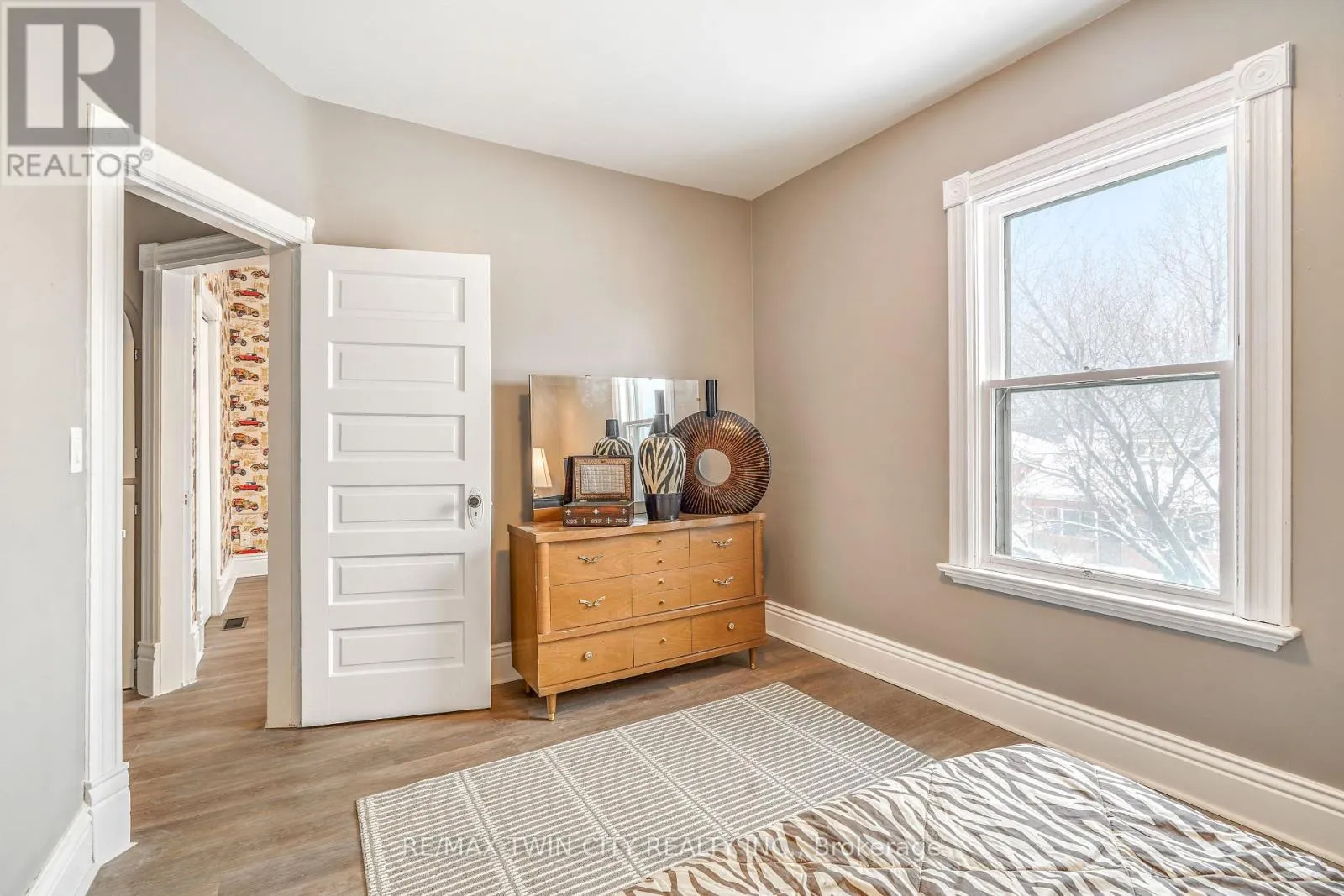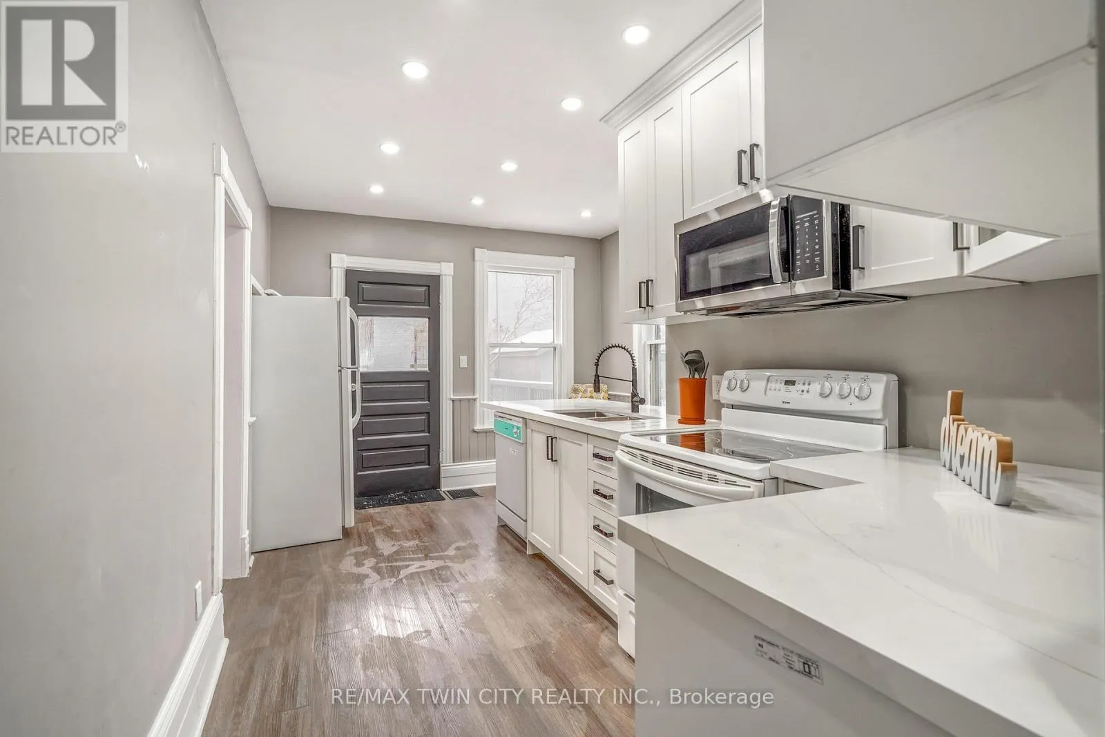 Cross Streets: Rawdon Street. ** Directions: Head West on Dalhousie Street. Property at Corner of Rawdon St. and Dalhousie St. First Time Offered for Sale! Check out this beautifully updated and spacious 5 bedroom, 2 bathroom all brick home that is loaded with character and charm featuring a roomy covered front porch for relaxing with your morning coffee, an inviting entrance for greeting your guests, generous-sized principle rooms with high baseboards, attractive luxury vinyl plank flooring, and elegant Craftsman style trim around the windows, French doors leading to a bright living room for entertaining that is open to a formal dining room that's large enough for you to enjoy hosting family gatherings, a gorgeous kitchen with contemporary cabinetry, attractive quartz countertops, a new built-in microwave and a new dishwasher, and access to the backyard, two newly updated bathrooms with one featuring a modern tiled walk-in shower, a full basement that offers lots of possibilities, and a big backyard for the kids to run around and play. This home is conveniently located in the desirable East Ward neighbourhood that's close to schools, parks, trails, shopping, restaurants, on the bus route, and only minutes away from highway 403 for commuters. Pride of ownership shines in this solid brick home that has been lovingly maintained by the same family for many years with 5 bedrooms all on the same level and despite the recent renovations the character and charm of yesteryear has been preserved with the original high baseboards, beautiful trim and woodwork, a claw foot tub, and more. Recent updates include a new kitchen in 2025 with quartz countertops, a new built-in microwave and a new dishwasher, new roof shingles in 2024, new high efficiency forced air gas furnace in December 2025, new vanities in both of the bathrooms with marble countertops and modern fixtures, newly tiled walk-in shower, new luxury vinyl plank flooring, and more. A wonderful family home that's just waiting for you to move-in and enjoy! Book a viewing for this home today! (id:27476)