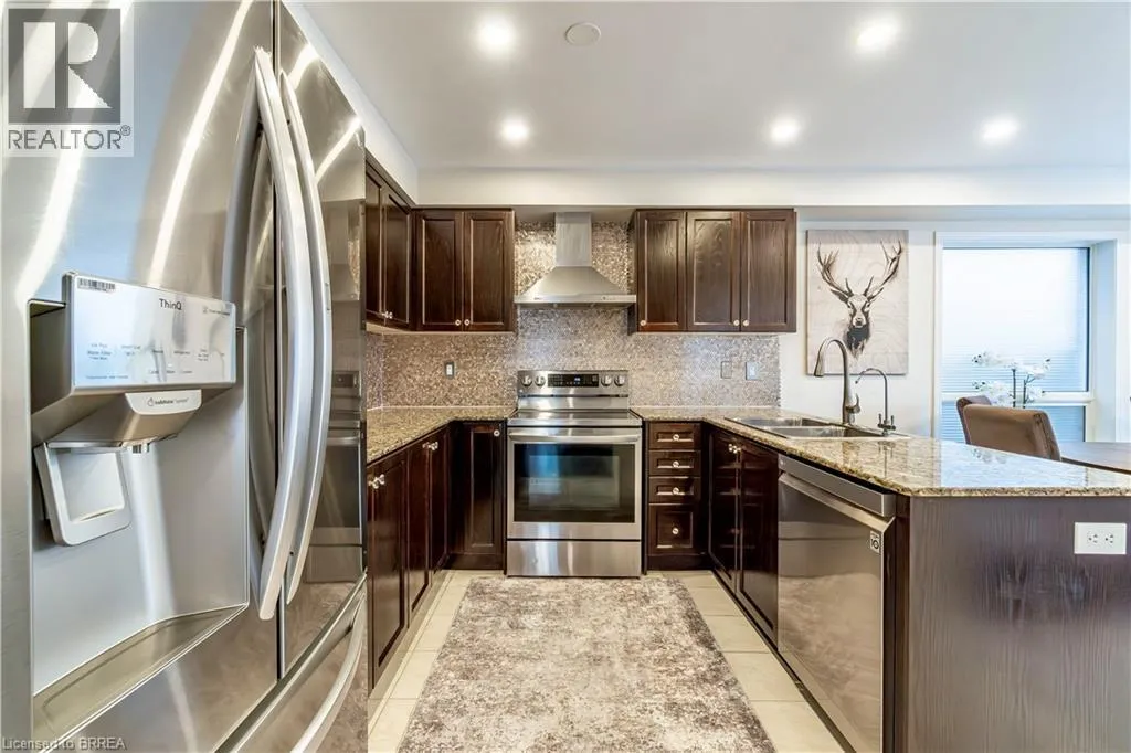 Garden Ave to Brennan St to Bolster to Thomas Ave Stunning 4+1 bedroom, 4 bathroom home with a granny suite in desirable Brookfield neighbourhood only minutes to the 403. The main floor boasts an upgraded kitchen with granite countertops, a bright and spacious family room with a cozy gas fireplace, nice size dining area, convenient 2pc bathroom, main floor laundry and access to the double car garage, and a big bonus room that can be anything you need; private office with a separate entrance, main floor bedroom, formal living or dining room, kids playroom etc. The upper level has a luxurious primary suite with a huge master bedroom, spacious walk-in closet and an ensuite bathroom with a soaker tub and walk-in shower. There are three more generous bedrooms all with big closets and lots of natural light, another 4pc bathroom and a loft that could be a computer area or reading nook. The owners have recently invested $100,000 finishing the basement into a stunning granny suite or possible rental opportunity with a large bedroom with a proper egress window, kitchenette, living room and a nice 3pc bathroom as well as plenty of storage space. Located on a corner lot with only one side neighbour the fully fenced yard features a hot tub, gazebo, stone patio and lots of greenspace. This brick and stone home has great curb appeal, is completely carpet free, has Smart climate controls, smart outdoor lighting, smart bathroom ventilation, dimmable potlights throughout the main and 2nd floor, exterior security cameras, a premium water filtration system, central vac and so much more. All conveniently located near Brantford's walking trails, parks, the 403, shopping, schools and more. (id:27476)