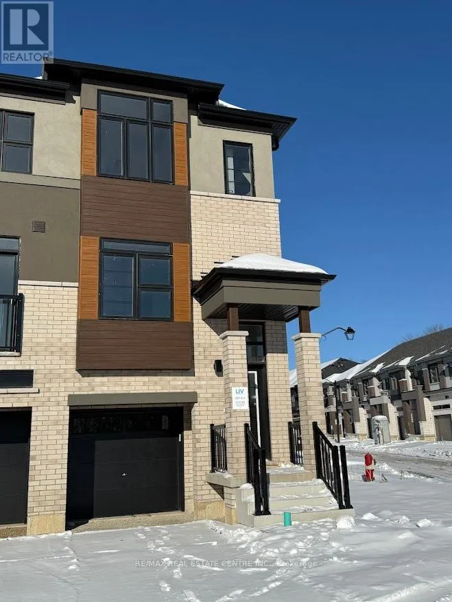 Cross Streets: Colborne St. W/ Pleasant Ridge. ** Directions: Colborne St. W/ Pleasant Ridg. Experience modern living in this brand new, never-lived-in corner freehold townhouse offering 3 spacious bedrooms and 2.5 bathrooms, ideally located in the prestigious Sienna Woods West community in Brantford. Situated on a premium walk-out ravine lot backing onto green space, this upgraded home features a bright open concept layout with 9-foot ceilings on the main floor, abundant natural light, and high-end finishes throughout. Built by a renowned builder, the end unit showcases a stylish brick and stucco exterior, a walk-out basement, and a modern kitchen with sleek cabinetry, with new appliances and blinds to be installed prior to move-in. All finishing work will be completed before occupancy. The spacious primary bedroom offers a walk-in closet, an additional closet, and a private ensuite, complemented by two additional bedrooms, a convenient main floor laundry, and ample storage. Enjoy low-maintenance living close to the Grand River, parks, trails, schools, shopping, Wilfrid Laurier University, and quick access to Highway 403 and 401. This exceptional rental provides outstanding value in a growing, family-friendly community, with future neighborhood completion enhancing long-term appeal. (id:27476)