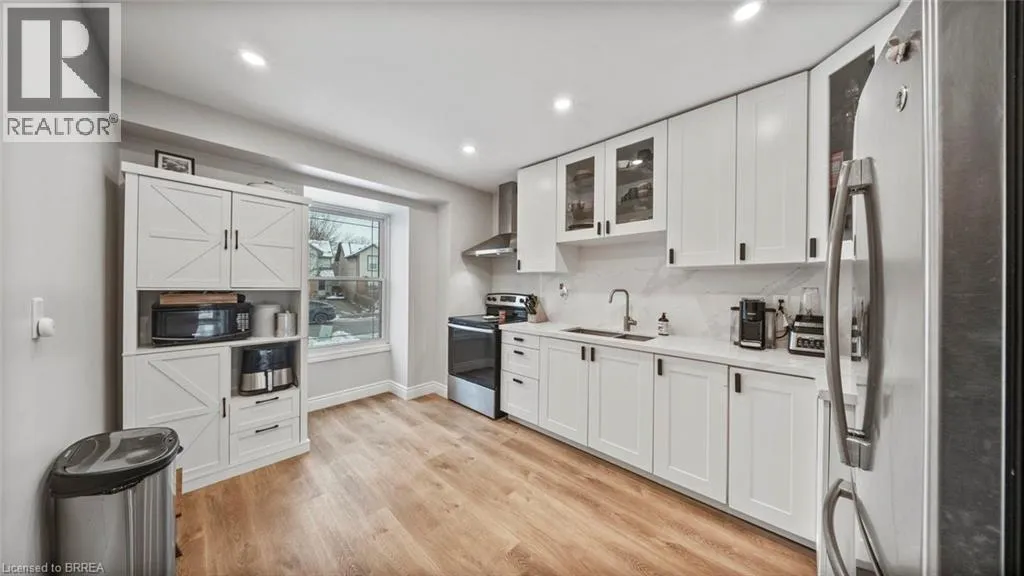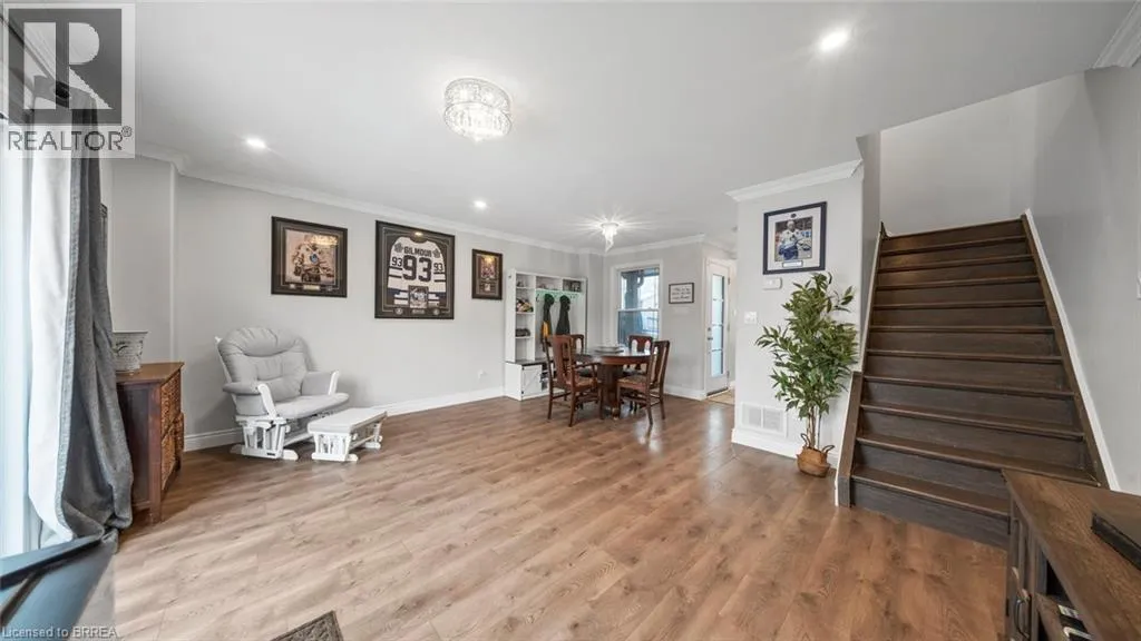 south from Banbury Rd. Sparkling like new - this gem of a home has been fully renovated throughout and boasts over 1500 square feet of living space! Situated on a quiet street in the Brantwood Park neighbourhood and offering 3 bedrooms and 2 bathrooms, prepare to be impressed from the moment you step inside. Highlighted by its many tasteful finishes - crown moulding, upgraded doors & pot lighting to name just a few - this is a home where modern elegance blends seamlessly with comfortable living. Featuring the ideal space for the day-to-day function of a busy family as well as being equally ideal for entertaining, the main floor is complete with its stunning white kitchen and gorgeous quartz countertops that are integrated onto the backsplash. The large living room is bright and light-filled with the sliding glass patio doors that lead out onto the deck and fully fenced yard. Stepping up the hardwood staircase to the 2nd storey you will find 3 generously sized bedrooms and the 4pc bathroom. The lower level is complete with its party-sized rec room which is perfect for cozy movie nights and family gatherings too. The 3pc bathroom & laundry room combo, and the very large bonus area is ideal for all your storage needs. This beautiful home is located in one of Brantford's most desirable north end neighbourhoods with many parks & trails, schools, nearby shopping and close to Hwy 403 access. Move-in ready and with so much to offer - this one is definitely not like the rest! (id:27476)