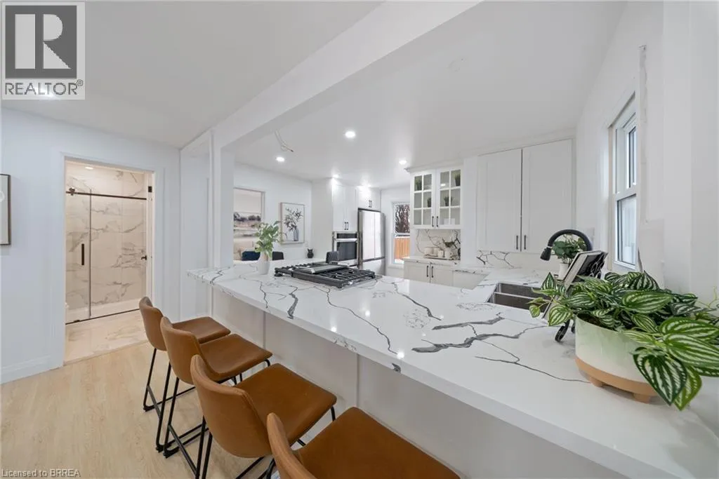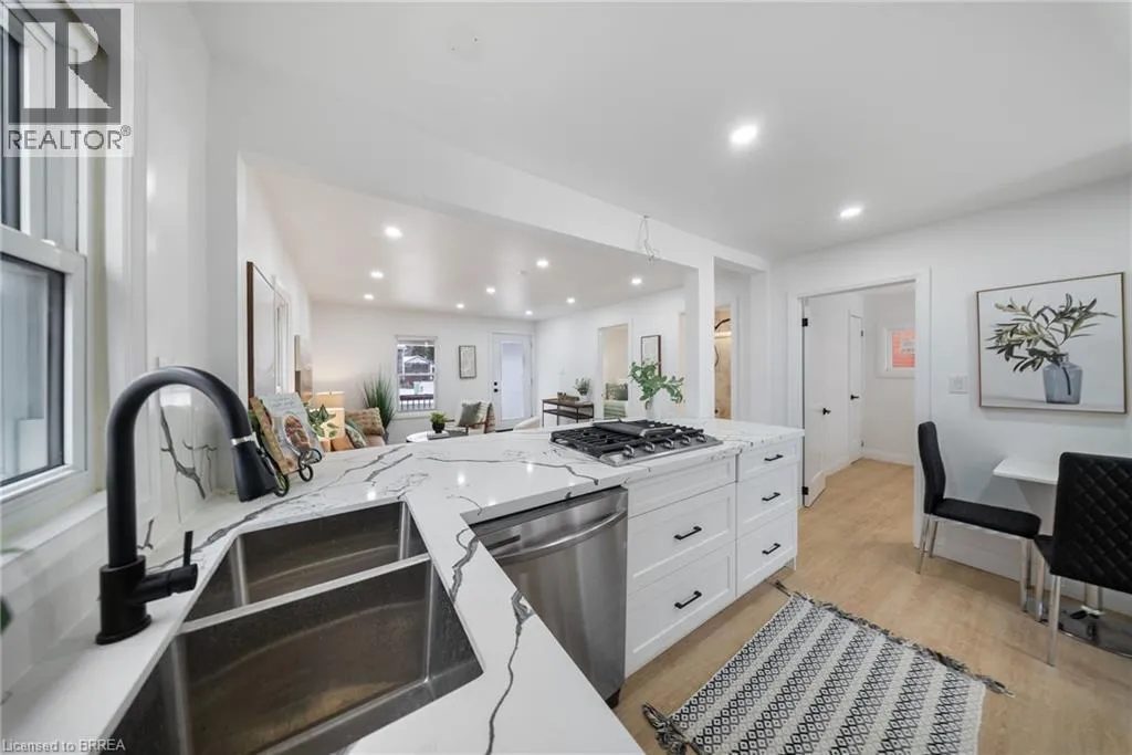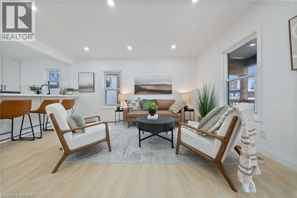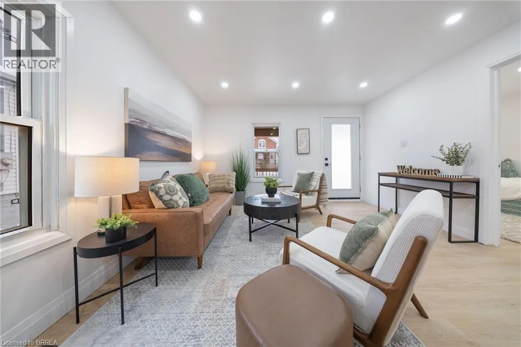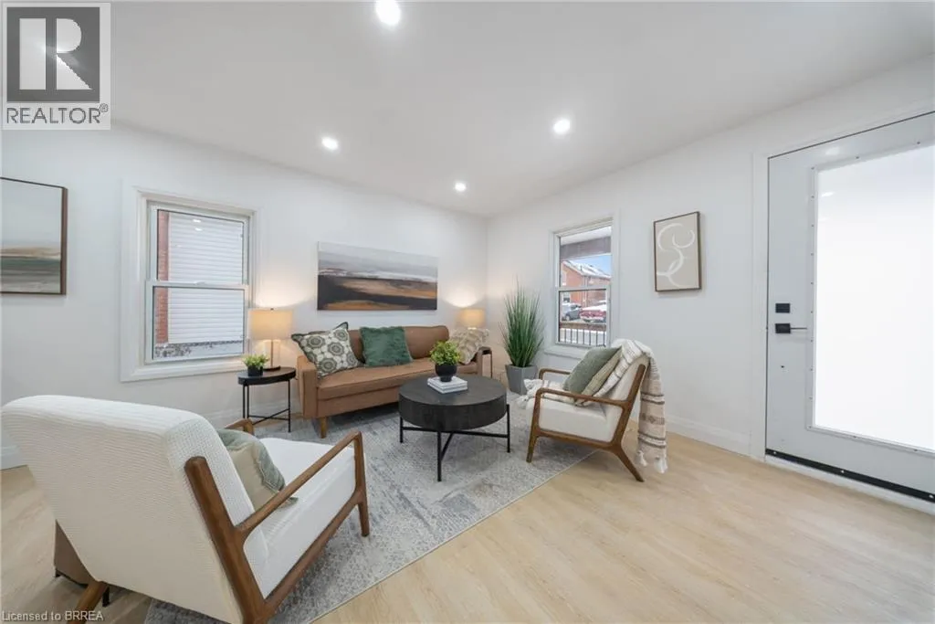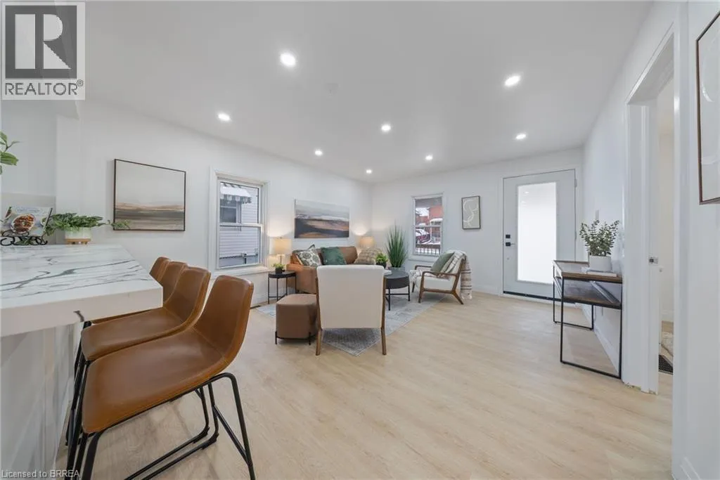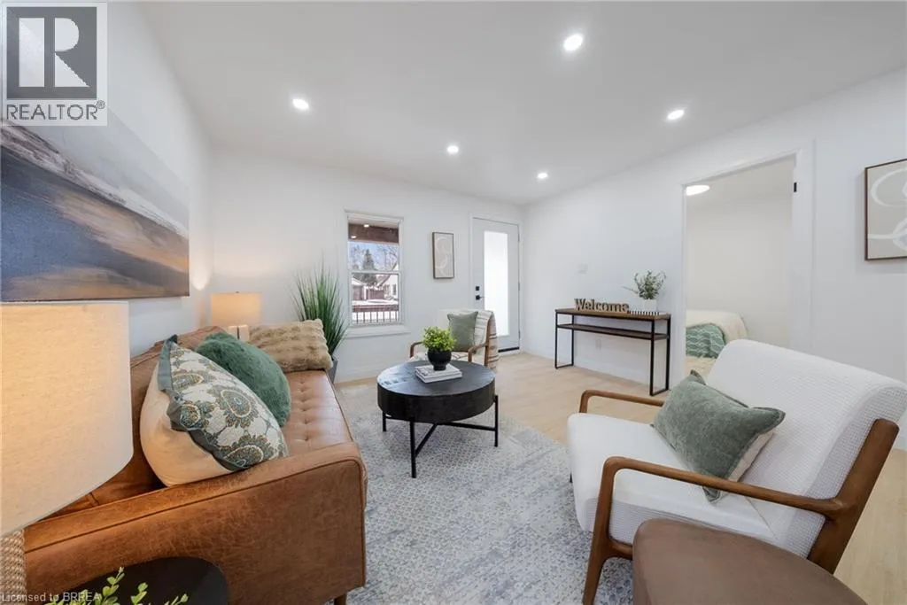 From Rawdon st turn right house will on tight Welcome to 111 Victoria Street, Brantford â a fully renovated showstopper set on an impressive 40' x 132' oversized lot, where no expense was spared. Professionally updated from top to bottom, this open-concept 2-bedroom, 1-bath home blends modern design with high-end finishes and is completely move-in ready. Step inside to a bright, stylish interior featuring new interior doors, newer windows, and pot lights throughout. The heart of the home is the brand-new premium kitchen, showcasing quartz countertops and backsplash, a deep stainless-steel sink, and high-end Samsung appliancesâperfect for entertaining and everyday living. The exterior is just as impressive, boasting all-new exterior finishes and siding, exterior pot lights, a brand-new asphalt driveway, new front porch, and a new fence fully enclosing the property. The backyard is an entertainerâs dream with a massive concrete pad and spacious new deck, enhancing both curb appeal and outdoor enjoyment. Additional peace-of-mind upgrades include a newer furnace, air conditioner, and hot water tank. This is a rare opportunity to own a turnkey home on an oversized lot offering style, comfort, and exceptional outdoor space. 111 Victoria Street is truly made to impress, don't miss your chance to make this stunning home yours. (id:27476)