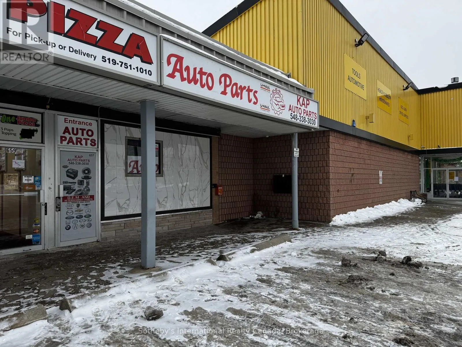 Cross Streets: Wayne Gretzky Parkway & Colborne Street E. ** Directions: South on Wayne Gretzky Pkwy, West on Colborne St. Opportunity awaits in this expansive 1,300+ sq ft commercial unit at 657 Colborne Street, ideally positioned within a well-established plaza along Brantford's high-traffic Colborne Street corridor. Formerly operated as an auto parts store, the unit features a functional, elongated layout with multiple defined rooms, making it well-suited for a wide variety of commercial uses. The flexible configuration lends itself to retail, showroom, professional office, medical or wellness, studio, or service-based businesses. Excellent street exposure, prominent signage opportunities, and ample on-site parking enhance visibility and accessibility for both customers and staff. Zoned IC-PP, the property supports a broad range of permitted uses, offering tenants the freedom to adapt the space to their operational needs. A rare leasing opportunity in one of Brantford's most active and growing commercial corridors. (id:27476)