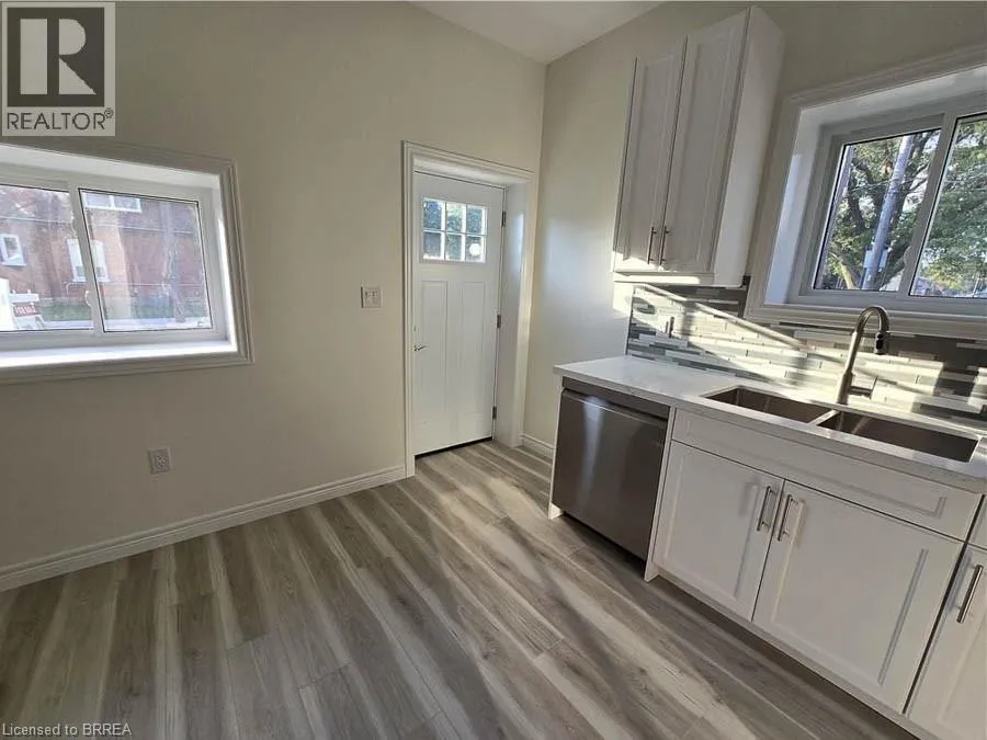Chatham Street and Rawdon Street Welcome to this newly built main floor unit in a legal duplex, ideally situated on a corner lot in a quiet, mature Brantford neighbourhood. This bright and modern unit offers a spacious and highly functional layout, perfect for families or professionals seeking a premium rental opportunity. The main floor features four bedrooms and three washrooms, including one full bathroom and two convenient two piece bathrooms. One bedroom is thoughtfully designed with a separate entrance and its own two piece washroom, making it ideal for a home office, studio, or professional use. Enjoy an open concept kitchen with white cabinetry, stainless steel appliances, modern backsplash, and ample counter space, seamlessly flowing into the living area. Nine foot ceilings throughout the main floor enhance the sense of space and natural light. High end finishes, wide plank flooring, and contemporary fixtures are featured throughout the unit. This unit includes in suite laundry, multiple entrances for added privacy and convenience, access to private basement, and two parking spaces. Located close to parks, schools, and amenities, this property offers both comfort and versatility in an excellent location! (id:27476)
