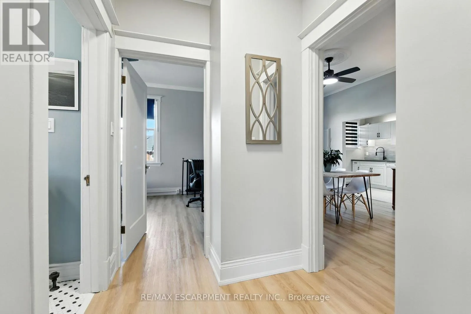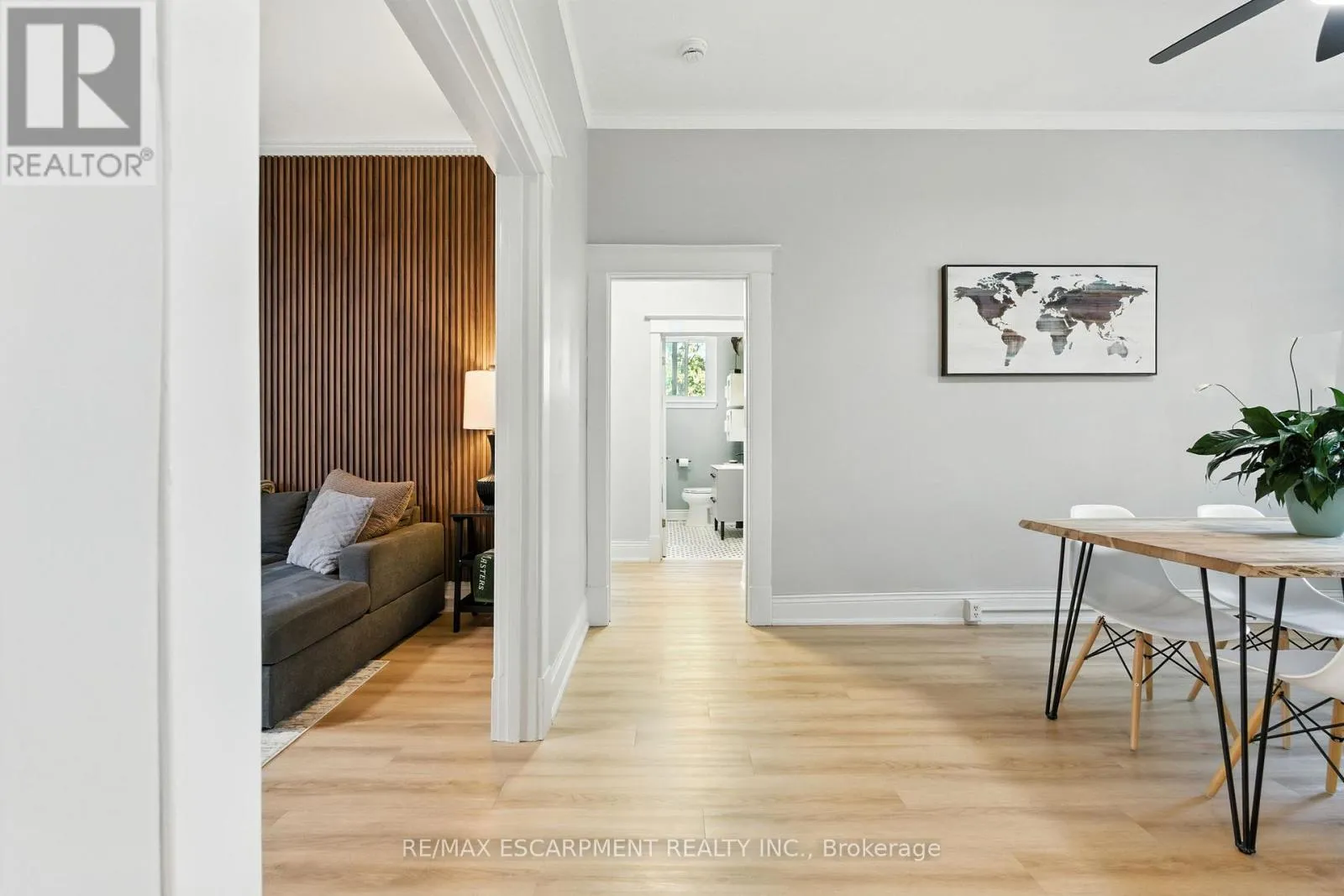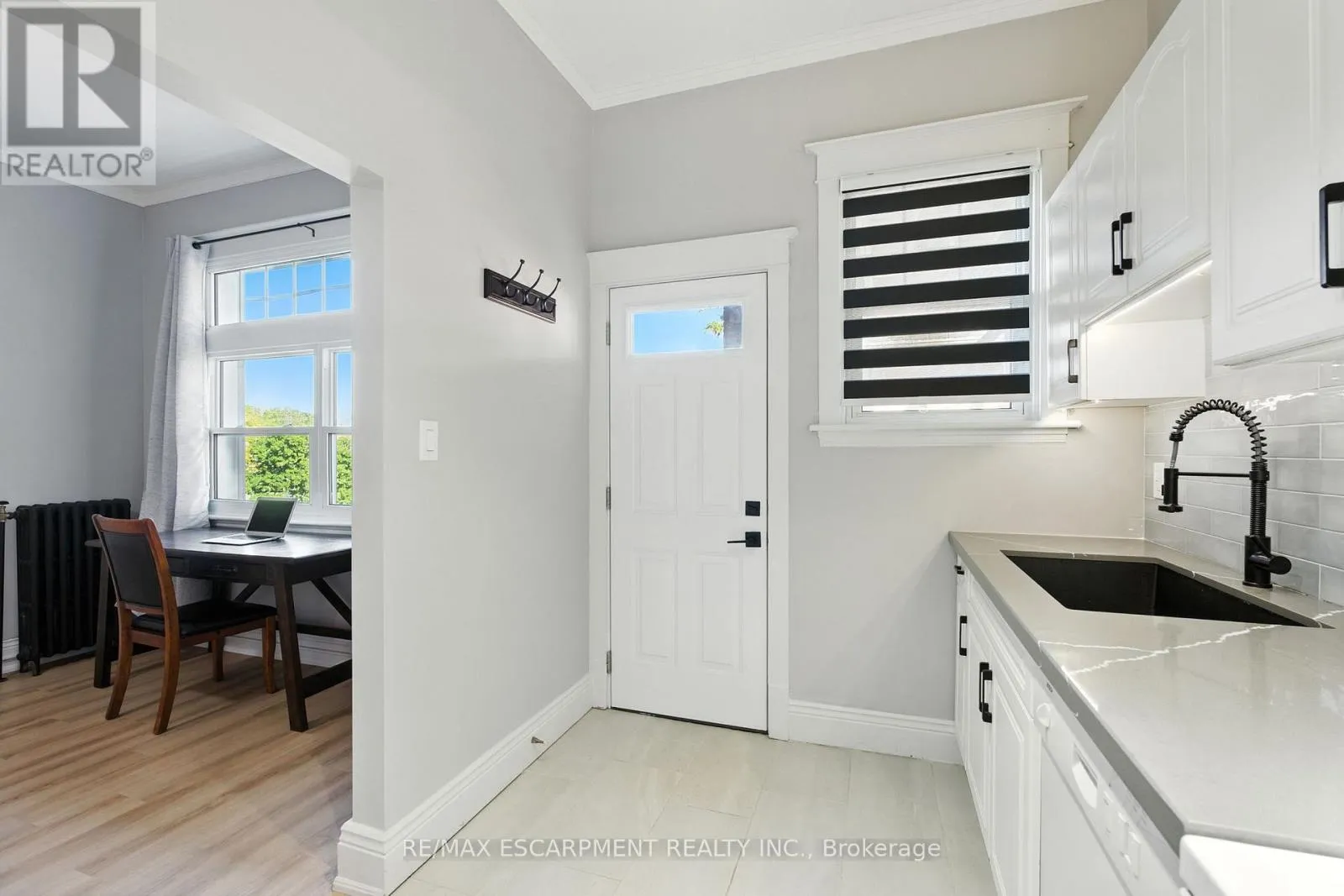 Brant Ave to Lorne Cres to Dufferin Ave Welcome to 54 Dufferin Avenue, where timeless character meets modern style. This newly updated condo offers a rare opportunity to live in one of Brantford's most sought-after and historic neighbourhoods, blending the beauty of early 1900s architecture with today's conveniences. Inside, you'll find nearly 1,000 square feet of thoughtfully designed living space. High ceilings, oversized windows and classic details like crown moulding and original hardware give the unit a sophisticated feel, while the updates make it completely move-in ready. The kitchen features quartz countertops, subway tile backsplash, valance lighting and plenty of prep space. The bathroom has been fully refreshed with a new vanity and timeless penny tile flooring that ties back to the home's 1910 heritage. Durable vinyl flooring runs throughout for a clean, modern look. The spacious living room overlooks the beautifully landscaped courtyard - perfect for relaxing after work or hosting friends. Beyond your front door, you'll love being steps away from parks, walking trails and nearby pickleball courts, as well as downtown shops, restaurants and schools. With easy access to Hwy 403 and public transit, this location makes it simple to balance work, play and everyday convenience. Offering heritage appeal, modern upgrades and a vibrant community setting, this condo is the ideal first step into homeownership in one of Brantford's most desirable areas. RSA. (id:27476)