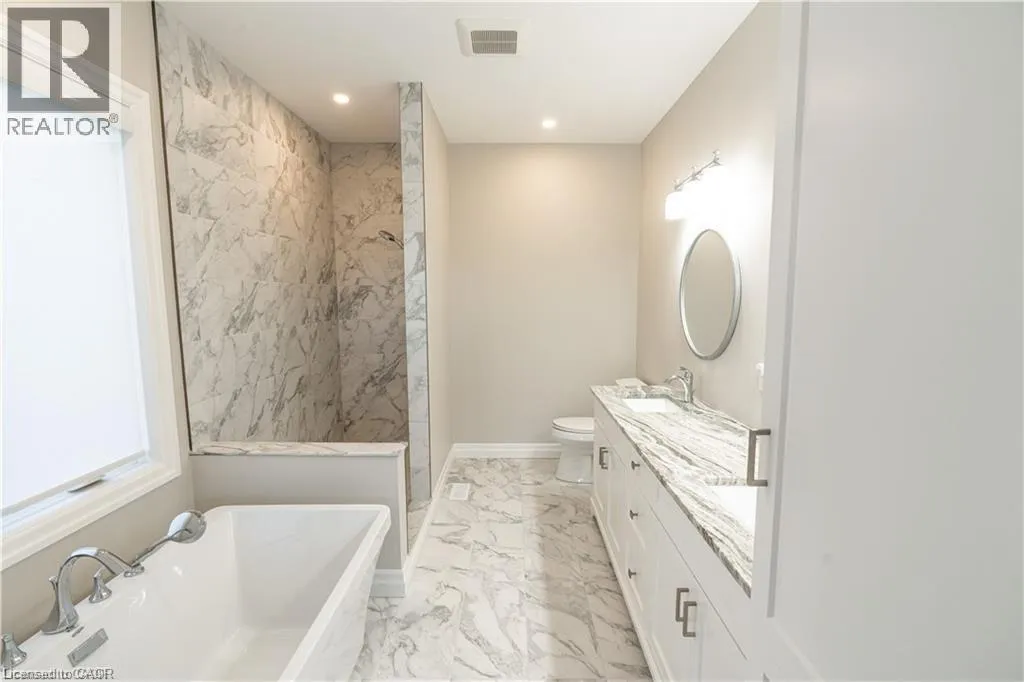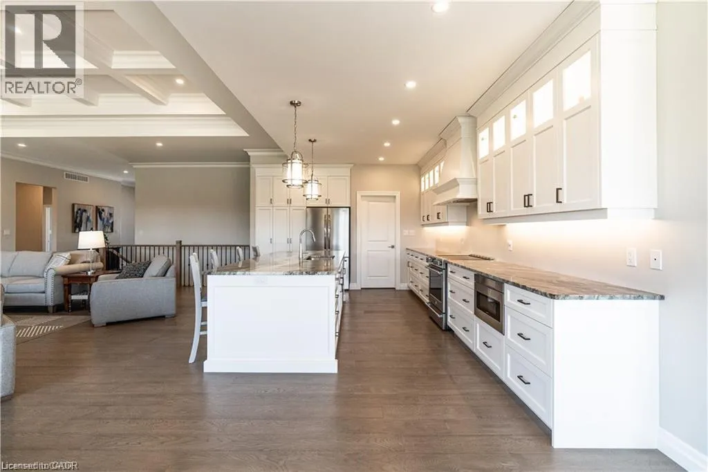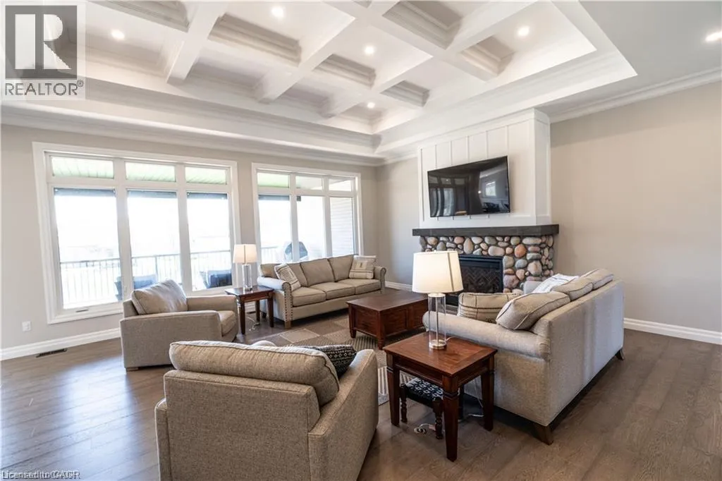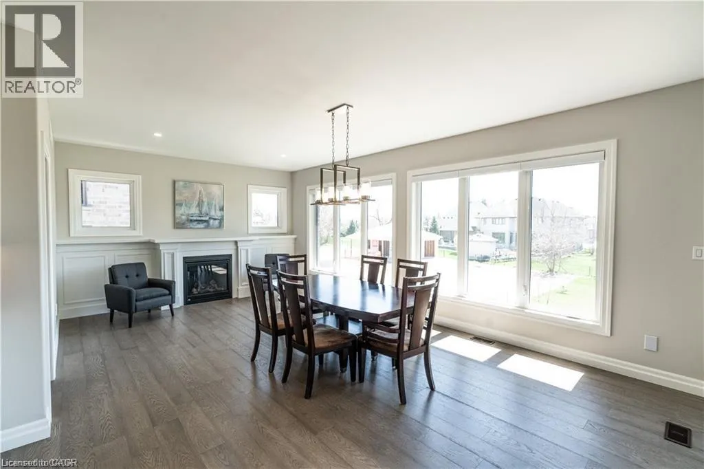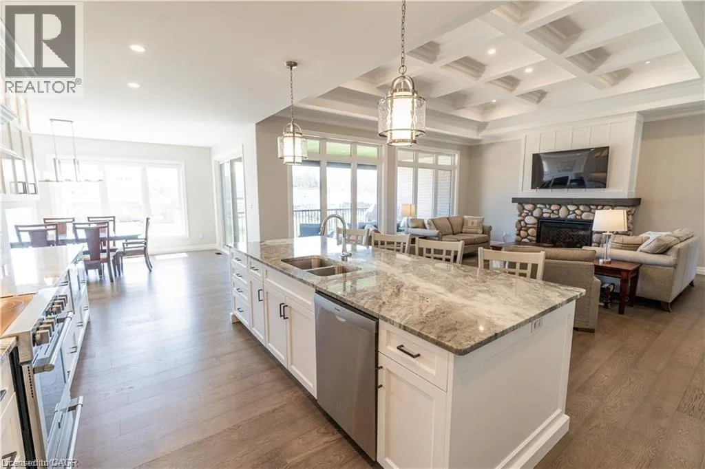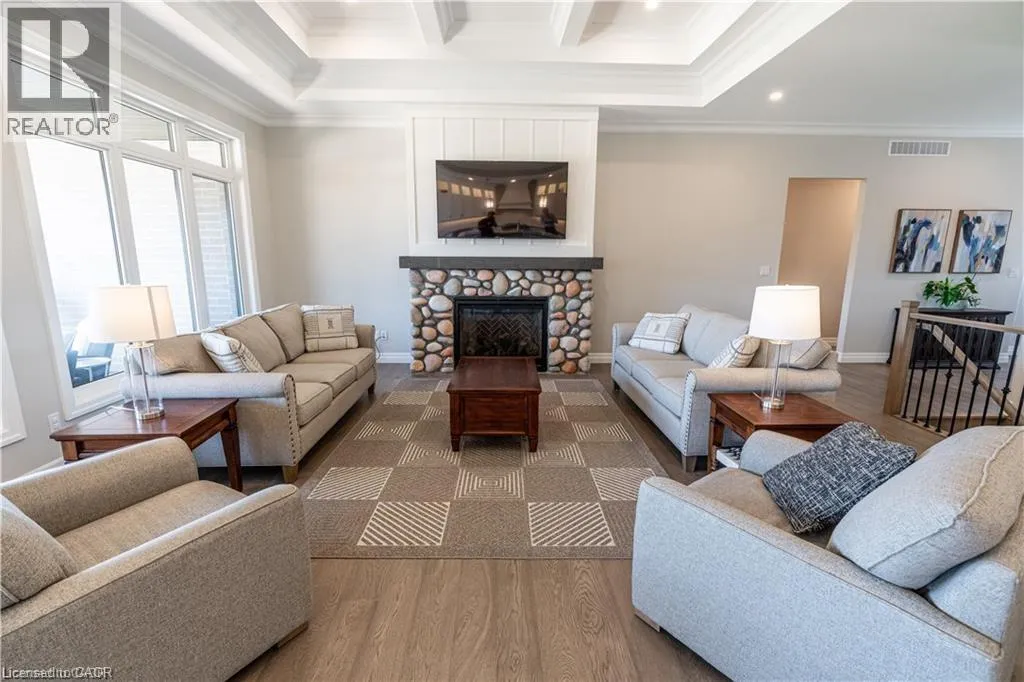 North of Oakhill Drive to Greens Road. South of Robinson Road to Greens Road. Welcome to 15 Hudson Drive, an extraordinary executive bungalow nestled in Brantfordâs coveted Oakhill neighborhood. This custom-designed walkout home offers over 5,100 square feet of luxurious living space on a rare 256-foot deep lot, blending elegance, comfort, and functionality. The open-concept layout showcases impeccable attention to detail, featuring five spacious bedrooms and three and a half bathrooms, including a stunning five-piece primary ensuite. The heart of the home is the chef-inspired kitchen with a 10-foot island, seamlessly flowing into a grand great room with soaring 12-foot coffered ceilings and a striking stone and board & batten fireplace. Entertain in style in the oversized dining room with its own hearth and fireplace, or find focus in the dedicated office, unwind in the cozy den, and stay active in the private workout room. A thoughtfully designed mudroom/laundry/pantry combination adds everyday convenience, while the three-car garage offers direct access to the lower levelâideal for a potential in-law suite. Storage is abundant throughout the home. Enjoy seamless indoor-outdoor living with a covered patio off the kitchen and a walkout from the lower level to a spacious backyard oasis enclosed with a beautiful wood fence. With Brantford expanding rapidly, properties of this caliber are increasingly rare. 15 Hudson Drive is the complete packageârefined, spacious, and ready to impress. Be sure to check out the virtual tour on YouTube to experience it for yourself. (id:27476)