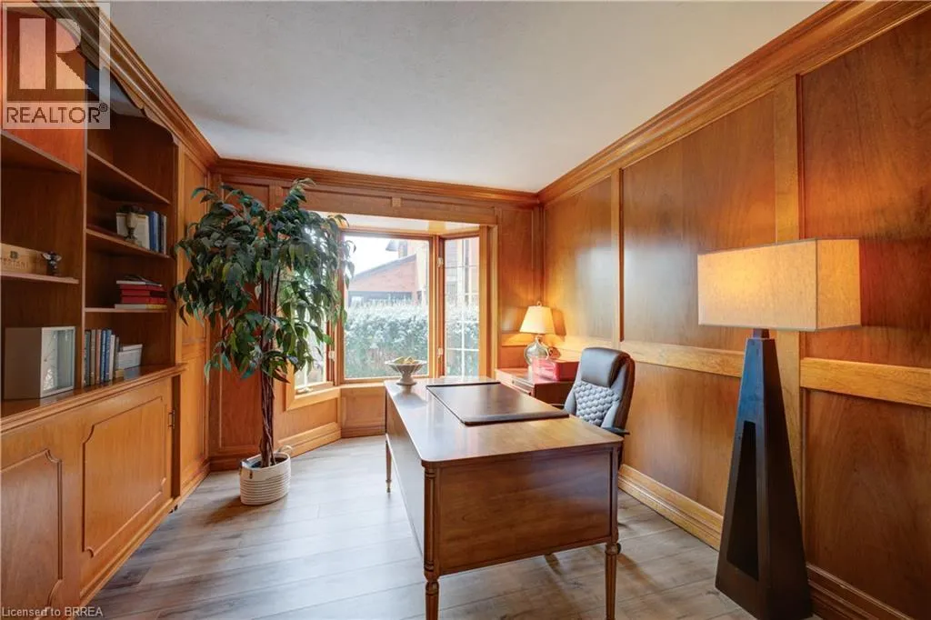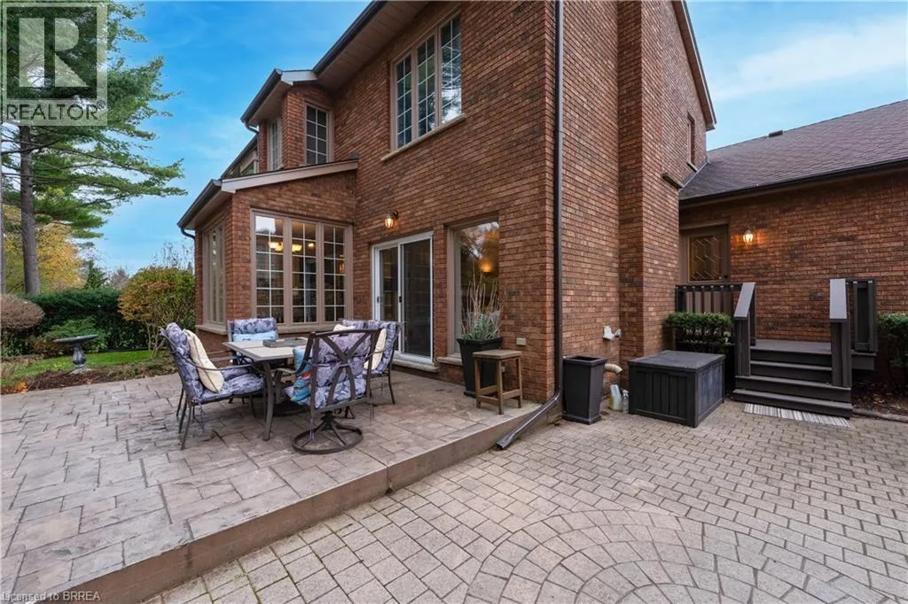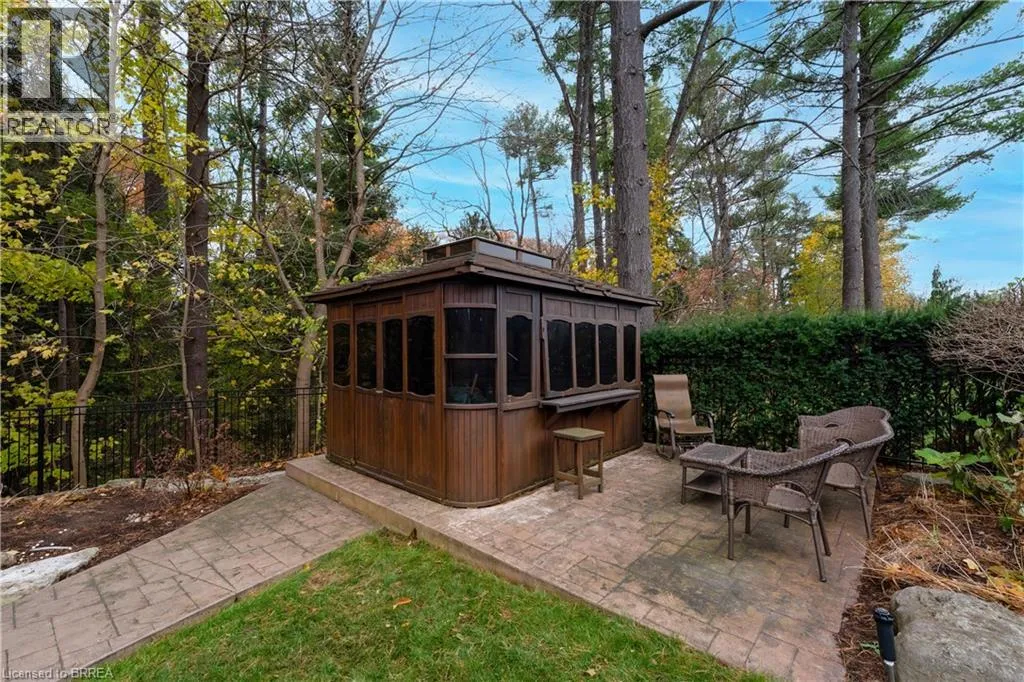 Ava Rd. and Scarfe Gardens Prestigious Court location close to Brantford Golf and Country Club. Private ravine lot with newer inground pool. Grand entranceway with spiral staircase and vaulted ceilings. Front sitting room with large window and natural wood fireplace. Main floor office with beautiful wood inlays and built-in shelves and cabinets. Large formal dining room with bay window overlooking rear wooded area. Newly renovated kitchen, eat-in area with three walls of windows overlooking inground pool. Sunken main floor family room with natural wood fireplace. Beautiful main floor, laundry room with built-in overhead cabinets and lowers. Upper level: Four spacious bedrooms. Large primary suite with bay window overlooking ravine, recently renovated 4pc bathroom with jet, soaker tub, and glass shower, his and her sinks and walk-in closet. Second level: 4pc bathroom recently renovated. Large renovated bright lower level. Rec room with gas fireplace and pool table area, separate home gym and three-piece bathroom. Fully fenced rear yard with newer, inground pool 2023, hot tub with gazebo and stamped concrete; all overlooking picturesque private wooded ravine. (id:27476)