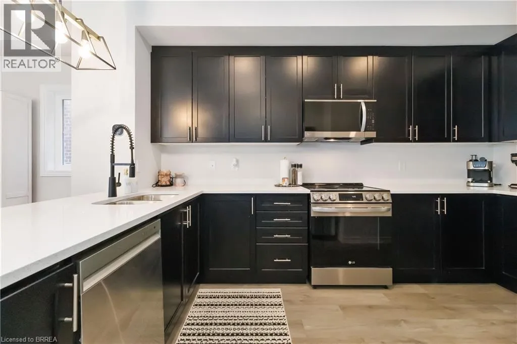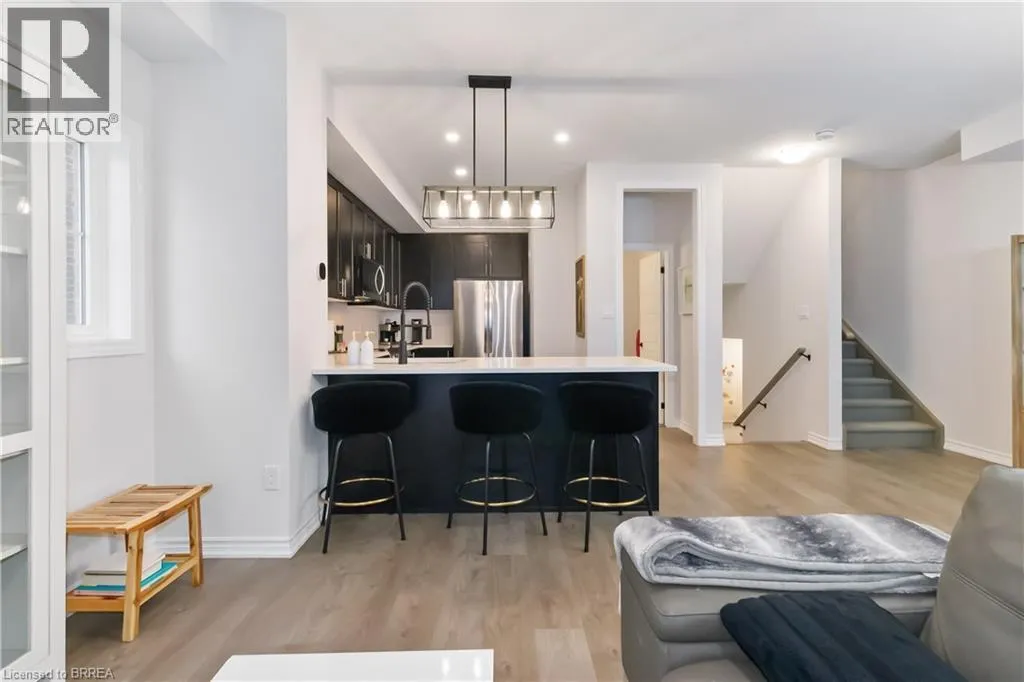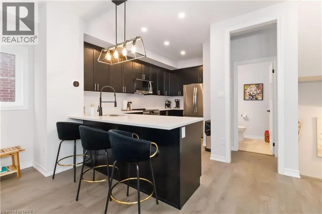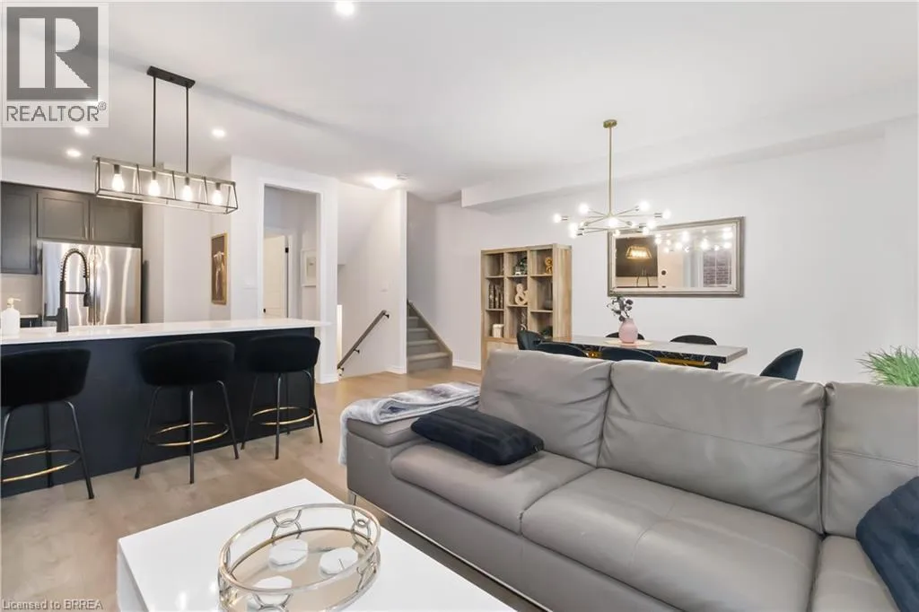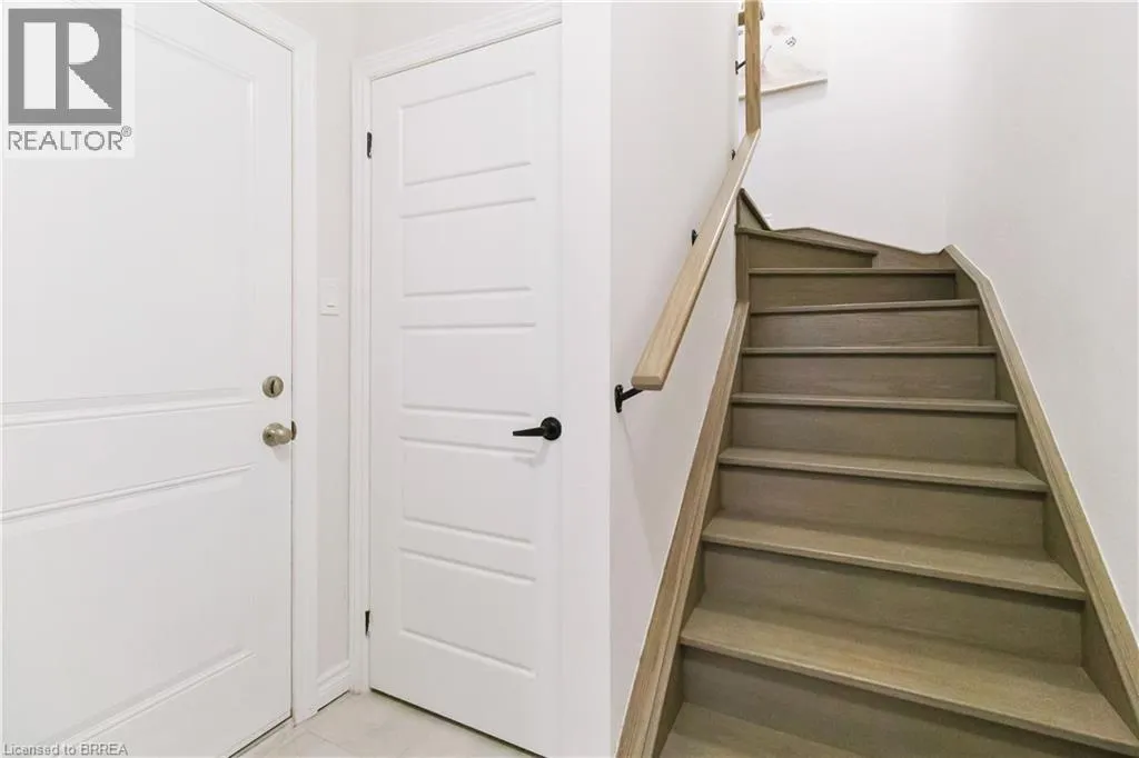 Travelling east on Powerline Road, turn right onto Park Road N. Welcome to this beautifully upgraded end-unit townhome in Brantfordâs highly sought-after North End. Offering one of the largest floor plans in the complex, this home features a bright foyer leading to a spacious open-concept main level with seamless living, dining, and kitchen areasâperfect for everyday living and entertaining. The modern kitchen boasts granite countertops, stainless steel appliances, and a large peninsula with seating. Step out through the garden door to a fully covered balcony, ideal for year-round enjoyment. A convenient powder room completes the main floor. Upstairs, youâll find three generous bedrooms, including a primary suite with walk-in closet and private ensuite, plus an additional full bath and second-floor laundry. Ideally located close to schools, parks, shopping, and amenities, with a new park currently being developed behind the property. A move-in-ready home offering space, comfort, and an excellent North End location. (id:27476)