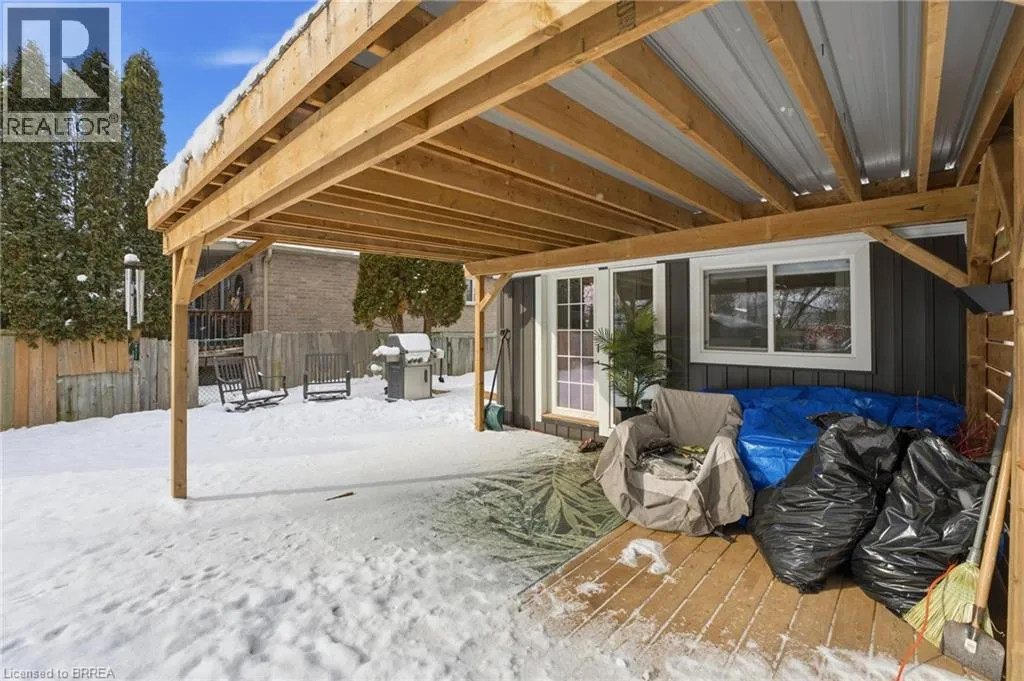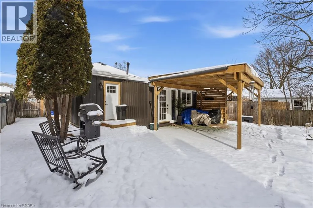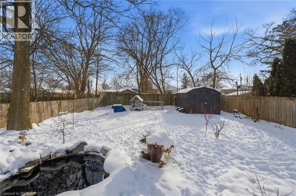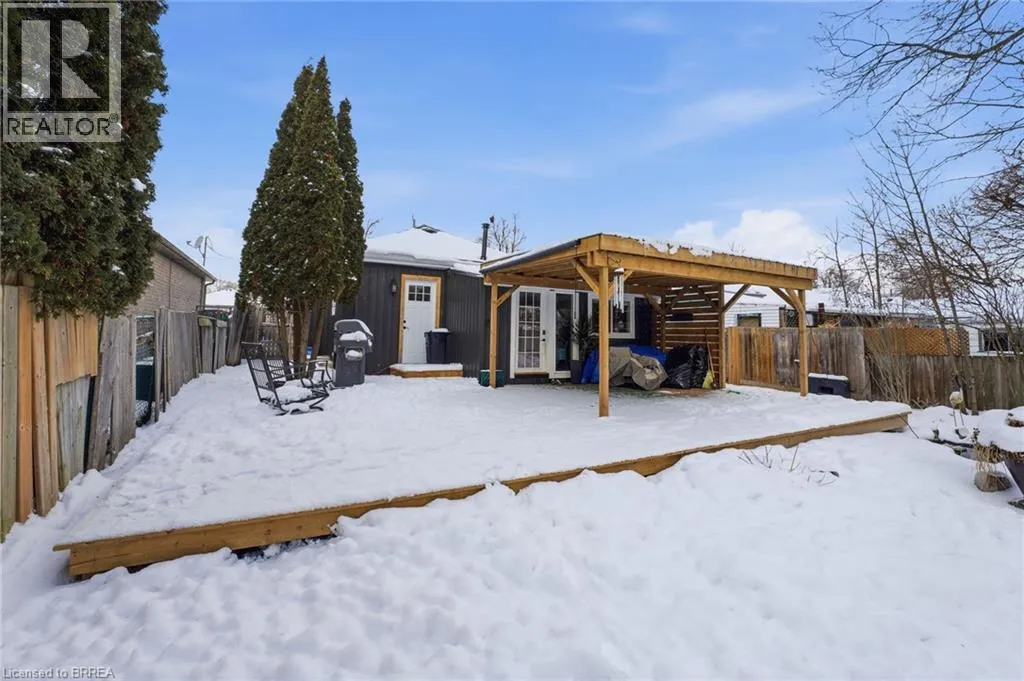 Located between Mt Pleasant St. and Catherine Ave. Prepare to be impressed. This beautifully updated 3-bedroom, 1.5-bath bungalow is nestled in a family-friendly neighbourhood and truly checks all the boxes â with a flexible, quick closing available. Bright, open living spaces flow into a stunning eat-in kitchen featuring quartz countertops, backsplash, and brand-new appliances, complemented by a spa-like 4-piece bathroom. Major updates include a new furnace, roof, siding, soffit, fascia, and eaves, along with thoughtful upgrades throughout. Step outside to a fully fenced yard with hardscaping, pond, large deck, and covered patio with metal roof â an ideal space for entertaining or relaxing. Perfect for first-time buyers, downsizers, or investors, this move-in-ready home is conveniently located close to schools, universities, shopping, hospital, casino, trails, the Grand River, and offers easy access to HWY 403. Recent highlights (since 2024): custom walk-in closet, double doors to the backyard, dedicated laundry room, covered deck, and gas line for BBQ. (id:27476)