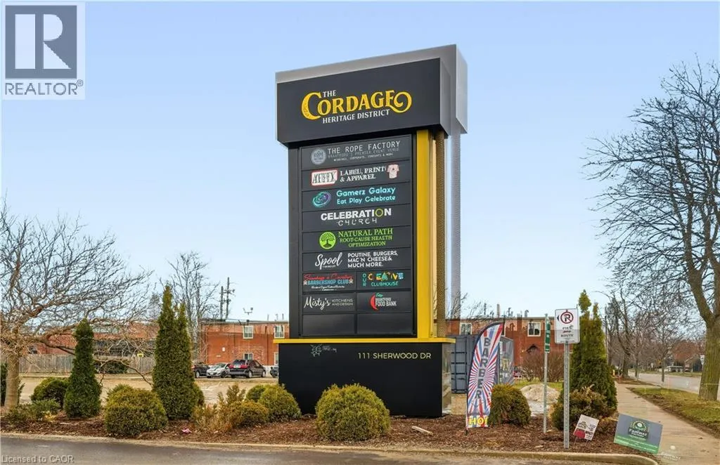 Colborne Street West to Sherwood Drive 4157 SQUARE FEET OF RETAIL SPACE AVAILABLE IN BRANTFORD'S BUSTLING, CORDAGE HERITAGE DISTRICT. Be amongst thriving businesses such as: The Rope Factory Event Hall, Kardia Ninjas, Spool Takeout Sassy Britches Brewing Co., Mon Bijou Bride, Cake and Crumb-- the list goes on! Located in a prime location of Brantford and close to public transit, highway access, etc. Tons of parking, and flexible zoning! This unit has pedestrian access from the Alley, truck level loading door at rear of unit and 18' ceilings. *UNDER NEW MANAGEMENT* (id:27476)