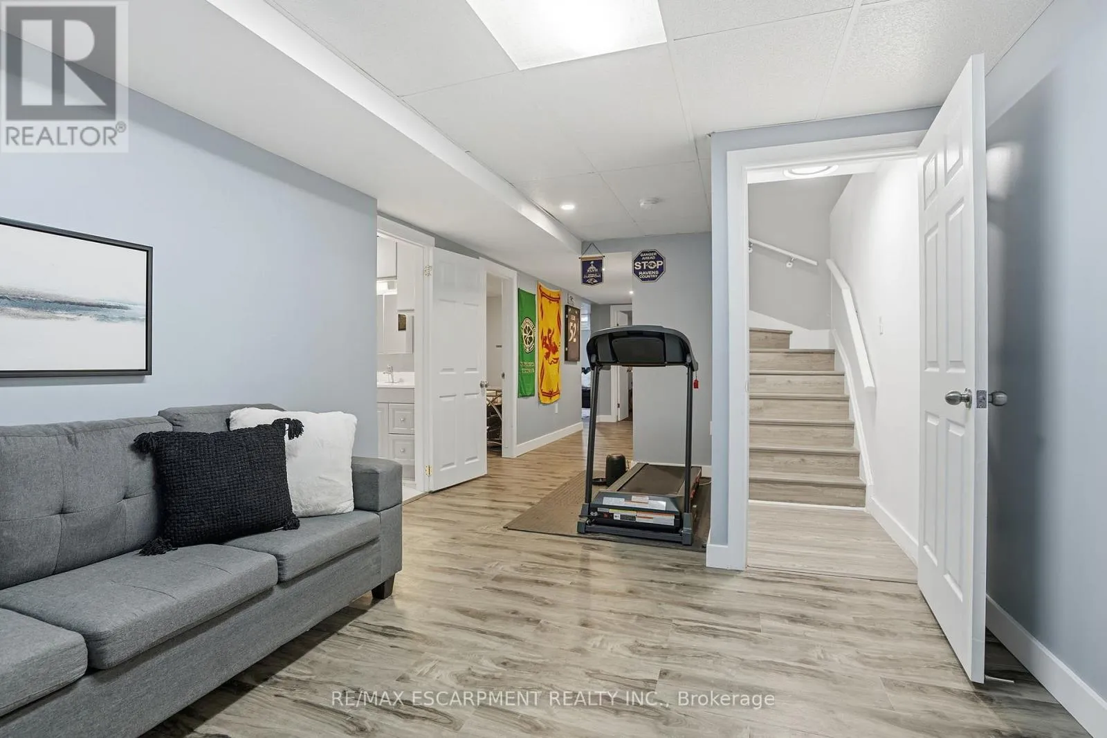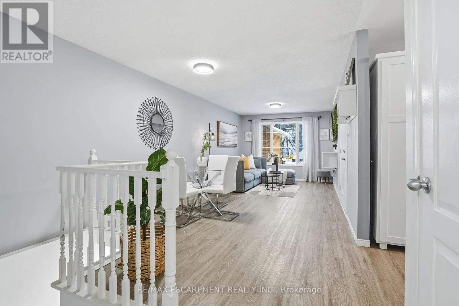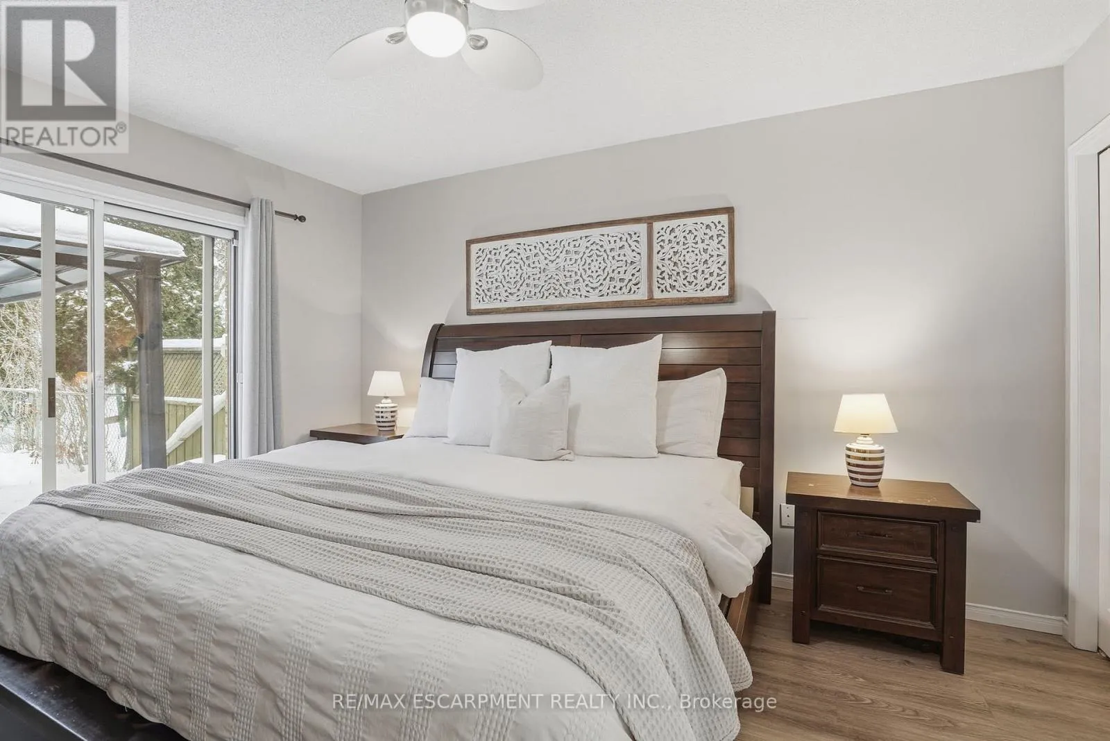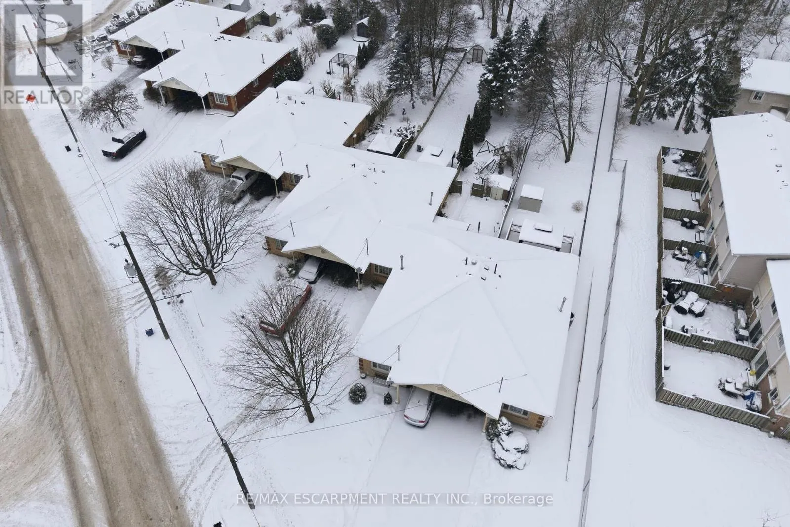 Cross Streets: West Street. ** Directions: West Street - Galileo Boulevard. Beautifully nestled on an exceptionally deep lot in the Terrace Hill neighbourhood, this charming and spacious freehold bungalow townhome features 2 bedrooms and 2 full bathrooms. Enjoy a carport as well as additional driveway parking for 2 vehicles. As you enter the home, you're welcomed into the open and bright living room that features an expansive window overlooking the front yard and leads into the dining area. The kitchen offers ample cabinetry and a tasteful backsplash, with some appliances newly updated, including the fridge (2025) and dishwasher (2024). The spacious primary bedroom offers ample closet space and a sliding door walkout to the breathtaking backyard, the perfect spot to enjoy your morning coffee outdoors. The second bedroom is also generously sized with abundant closet space and offers a view of the backyard. Completing the main level is a stunning, renovated 3-piece bathroom and a laundry room with cabinetry. In the basement, you will find a recreation area and a great-sized family room, the ideal spot for enjoying movie nights or game days, two additional rooms ideal for use as a home office, gym or hobby room, a stylish 4-piece bathroom, and abundant storage space. The remarkably deep backyard is the real showstopper! Enjoy an expansive wooden deck with a gazebo and a gas line for the barbecue, a huge green space area, a shed and garden beds, complemented by breathtaking mature trees. This lot soars with beauty in the summertime, and it's the perfect home for families, couples, and those who enjoy entertaining. With many key updates already complete, including the furnace (2025), the hot water tank and the water softener (2023), this home is move-in ready. Located in a cul-de-sac in a family-friendly neighbourhood, this home is close to parks, trails, the scenic Grand River, schools, all amenities, restaurants, highway access, golf courses, downtown Brantford, and so much more. Seize the moment and call this great home and property yours! (id:27476)