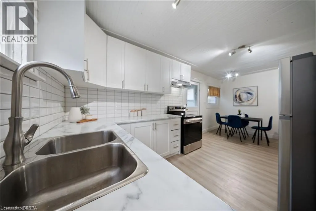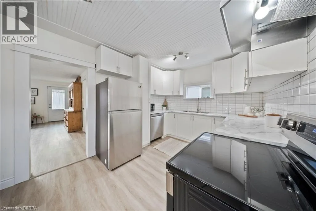 Oak Street between Balfour Street and Richardson Street Charming 3+Bedroom Home with Unique Layout in a Prime Old West Brant Location! Welcome to 68 Oak Street in the City of Brantford. This charming 2-storey, 3+ bedroom home blends original character with modern updates and is situated in a family-friendly neighbourhood in Old West Brant. Offering approximately 1,300 sq. ft. of living space, the home features a spacious living room, a main-floor bedroom (currently used as a 4th bedroom which offers incredible flexibilityâperfect as a private home office, kidsâ playroom, or a convenient guest space), a beautifully updated bathroom, and a newly renovated kitchen with ample cabinetry. Upstairs you will find 3 bright bedrooms (access through one of the bedrooms is through another) with new luxury vinyl plank flooring and fresh paint. Recent updates include the roof (2019), windows (2019â2025), exterior doors (2019â2025), kitchen (2024), stainless steel appliances, bathroom (2024), vinyl plank flooring (2025), fresh paint (2025), high-efficiency Daikin mini-splits (2025), 100-amp breaker panel (2025) , sewer line (premium pipe re-lining) and more! The home has a full unfinished basement with laundry; perfect for all your storage needs. Convenient walkable location puts amenities at your fingertips - Grocery stores, medical offices, restaurants, shopping, schools, Wilfrid Laurier University and Conestoga College campuses, GO Bus and transit, and nearby scenic walking, hiking, and biking trails along the Grand River. The private, fully fenced backyard includes a storage shed and a cozy patio area, perfect for summer entertaining. Schedule your viewing today! (id:27476)