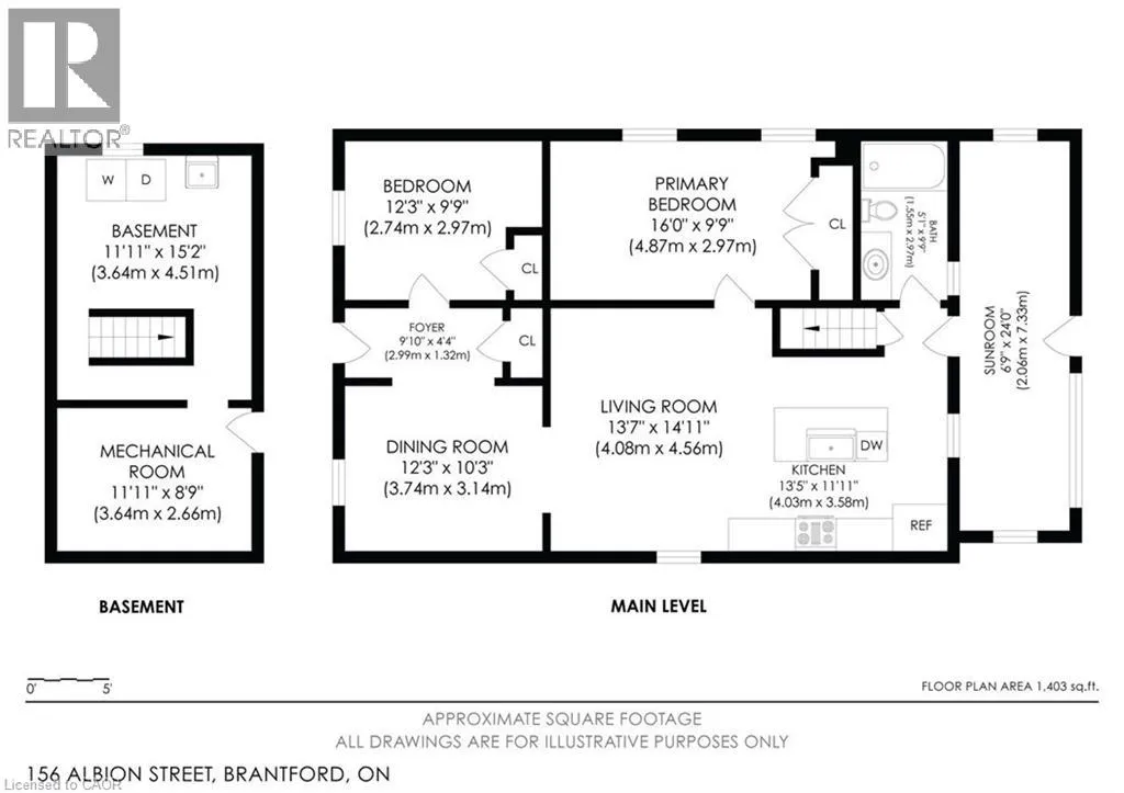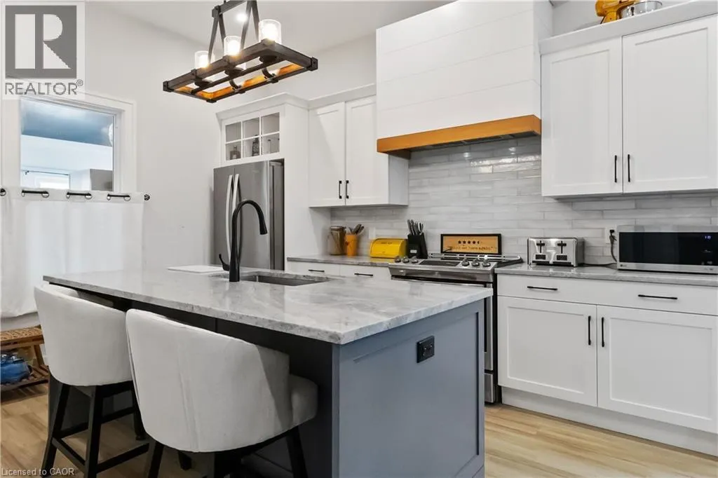 Brant Ave. - Henrietta Street - Albion Street Welcome Home! 156 Albion Street has been thoughtfully renovated within the last seven years, with the majority of updates completed between 2021â2022. This charming all-brick Brantford bungalow offers over 1,000 sq. ft. of bright, inviting living space and is sure to impress. The main floor features two generously sized bedrooms with built-in closet storage and abundant natural light. A recently renovated 4-piece bathroom complements the functional open-concept kitchen, complete with a large island, granite countertops, and stainless steel appliancesâideal for both everyday living and entertaining. A convenient mudroom/sunroom at the rear of the home adds extra living and storage space, featuring new windows, added insulation, and a heat register for year-round comfort. Some additional recent updates include a new 2-ton air conditioner (2025) and PEX plumbing (2023). The basement is high, dry, and fully usable, offering mechanical space, ample storage, and a laundry area with both gas and electric dryer hookups. Outside, the oversized yard has been refreshed in recent years with newer fencing, well-maintained gardens and flower beds, and a stunning mature cherry blossom tree. The 16'x20' 1.5 car garage is an unexpected bonusâfully insulated and equipped with a new garage door that opens to an attached gazebo sitting area, 240V heater, hydro, galvanized steel roof, OSB board interior walls and a bonus storage loft (4'x10') . Itâs perfect for summer entertaining, vehicle storage, or additional parking. Located close to local amenities, this home is minutes from the planned redevelopment of the FreshCo Plaza and less than 2 km from the new proposed Sport and Entertainment Centre, future home of the Brantford Bulldogs. A truly move-in-ready home with thoughtful upgrades throughoutâdonât miss this exceptional opportunity. (id:27476)