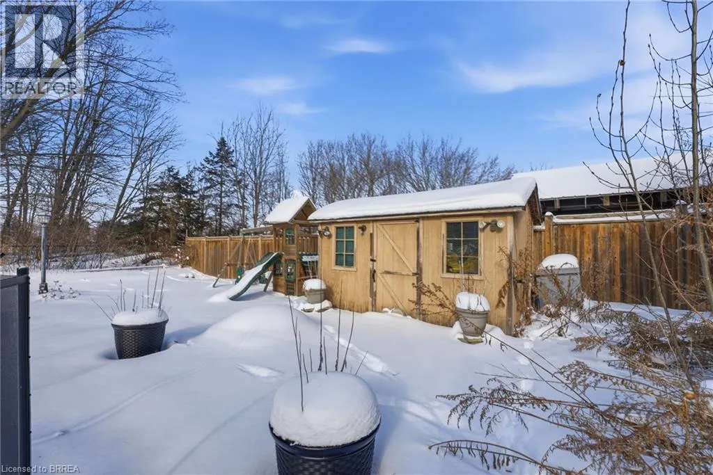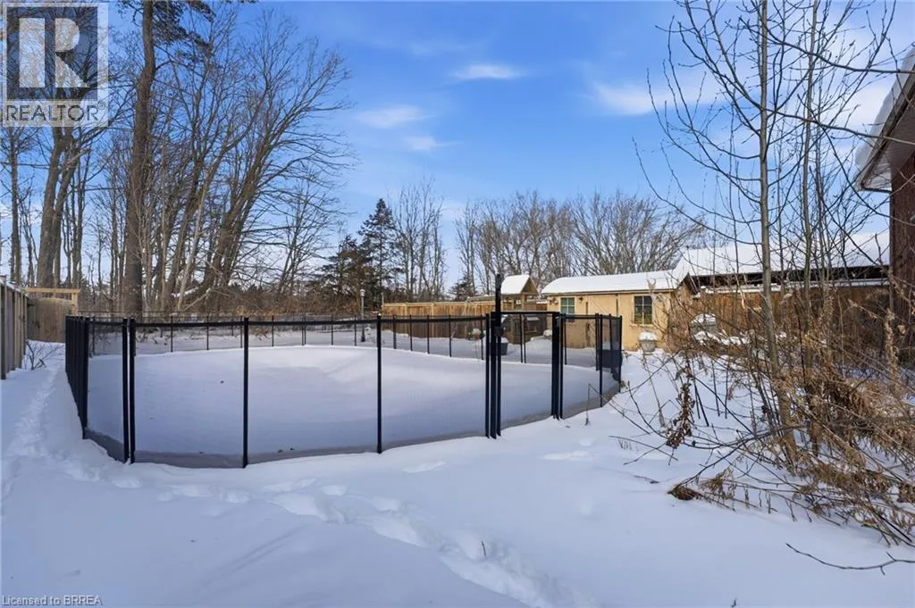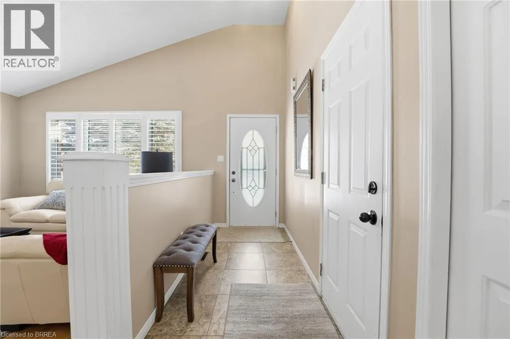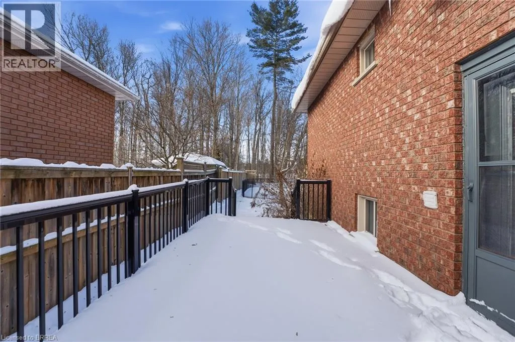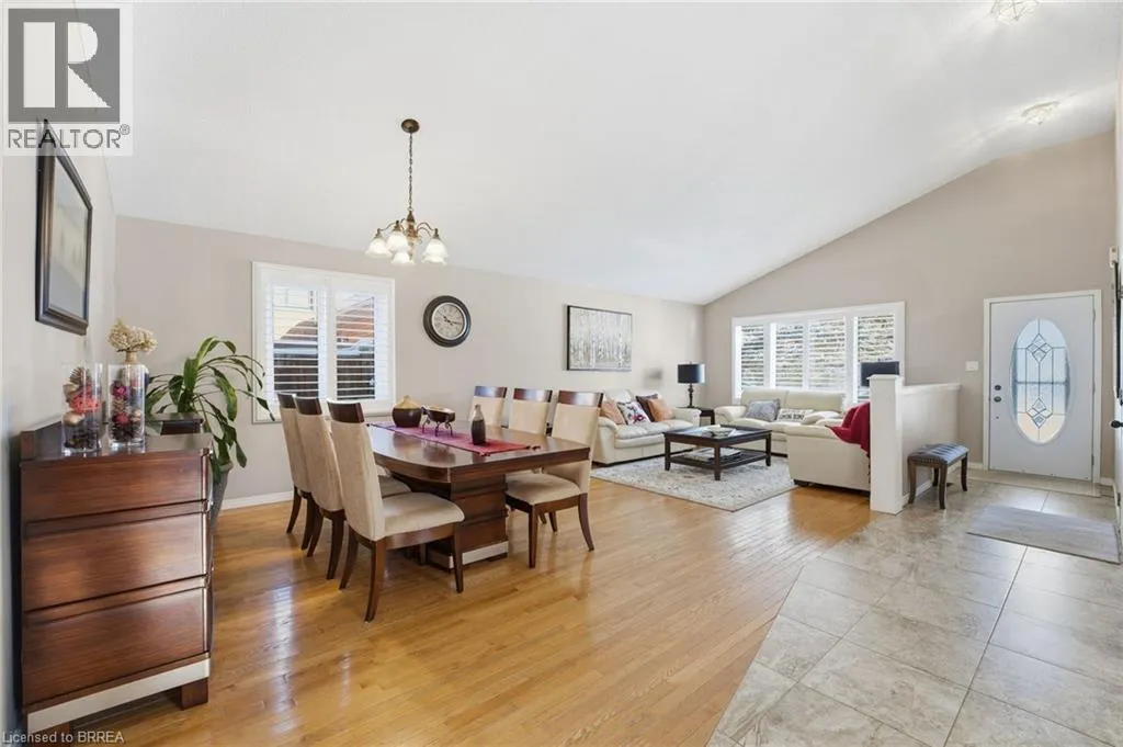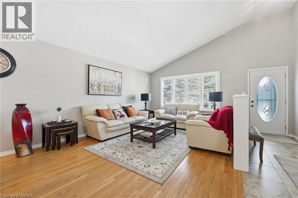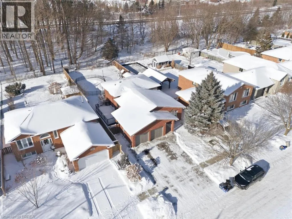 Brantwood Park Rd to Viscount Rd to Childerhose Cres Located in a highly desirable neighbourhood, this all-brick 4-level backsplit offers space, privacy, and lifestyle. Backing onto a wooded area with walking trails and no rear neighbours, the backyard feels like your own private retreat. Enjoy an inground pool with safety fence, a fully fenced yard, and a composite deck added in 2022 â perfect for summer entertaining. An attached two-car garage and rare triple-wide driveway add everyday convenience. Inside, the open-concept living, dining and kitchen area features 12-foot vaulted ceilings, creating a bright and spacious main level. The upper floor includes three bedrooms, while the lower levels offer a large family room with gas fireplace and a separate rec room â also with a gas fireplace â providing plenty of flexible living space. With two full bathrooms and a functional multi-level layout, this home delivers comfort, privacy, and room to grow. (id:27476)
