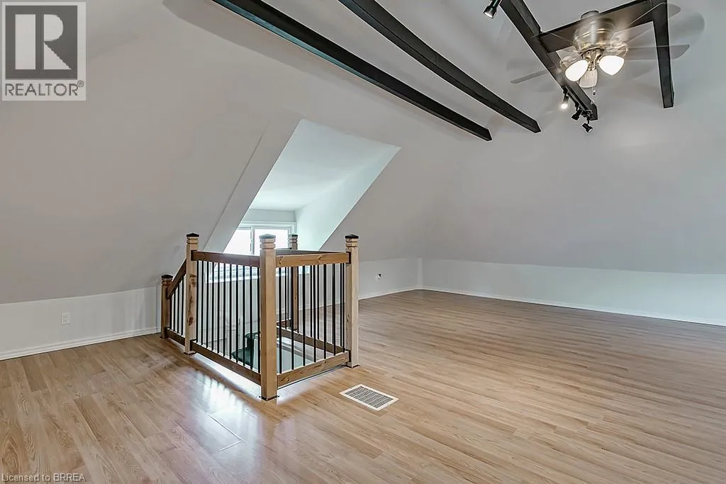 DALHOUSIE ST EAST SIDE DRUMMOND ST BETWEEN DALHOUSIE AND COLBORNE ST This updated, upper-level rental in a converted Victorian home offers the perfect mix of modern living and historic charm. With a private entrance, this unit is ideal for tenants seeking comfort, style, and convenience. The main floor features a kitchen equipped with built-in appliances, in-suite laundry, and a handy mudroom for added functionality. The flexible layout includes four bedrooms, with the option to use one as a dining room or living space. A modernized 4-piece bathroom (2022) completes the main level. The second floor is a bright and open loft area, offering endless possibilities for a family room, creative workspace, or home office. This level also includes an upgraded 3-piece bathroom (2022) and sleek, newly installed railings. The entire unit boasts hardwood floors and fresh, neutral paint throughout (2022). Tenants will enjoy exclusive use of half the backyard, a single parking space (with additional street parking available through a city permit). Additional features include keyless entry, exterior video surveillance for added security. Located just a short walk from Laurier University, public transit, shopping, and dining, this home is perfectly situated. This is a rental opportunity you wonât want to missâschedule your viewing today! (id:27476)