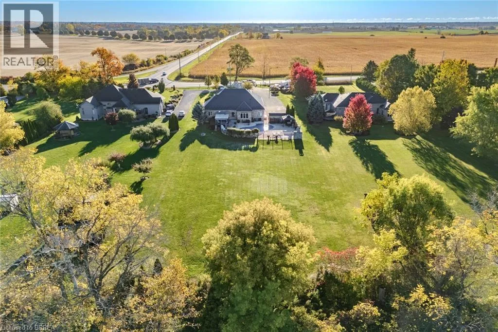 Cross Street: Colborne St E and Garden Ave Immaculate Country Property on the Outskirts of Brantford! Welcome to this stunning bungalow set on a beautifully maintained 1.15-acre property just minutes from the city. Offering 3+2 bedrooms, 4 bathrooms, and an incredible backyard paradise with an in-ground pool, this home truly has it all! Step inside to a bright and open foyer flanked by a welcoming sitting room and a formal dining room. The heart of the home features a modern open-concept kitchen and living area with a cozy breakfast nook, a sliding glass door leading to the backyard, and a convenient 2-piece powder room. The main level also boasts a spacious primary bedroom complete with a walk-in closet and a luxurious 5-piece ensuite bathroom, plus two additional bedrooms and a 4-piece main bath. Downstairs, you'll find a fully finished basement designed for entertaining - featuring a large recreation room with a pool table and bar, two additional bedrooms, a bathroom, and ample storage space. Outside, enjoy your private backyard oasis with a sparkling in-ground pool, perfect for summer relaxation and gatherings. Additional highlights include a 2-car attached garage, steel roof with 50-year warranty, and recent updates such as new A/C (2024), pool liner (2024), and pool pump (2024). Located just outside Brantford, this home offers the peace of country living with close proximity to all amenities and easy access to Highway 403. This property is a true showstopper - book your private showing today! (id:27476)