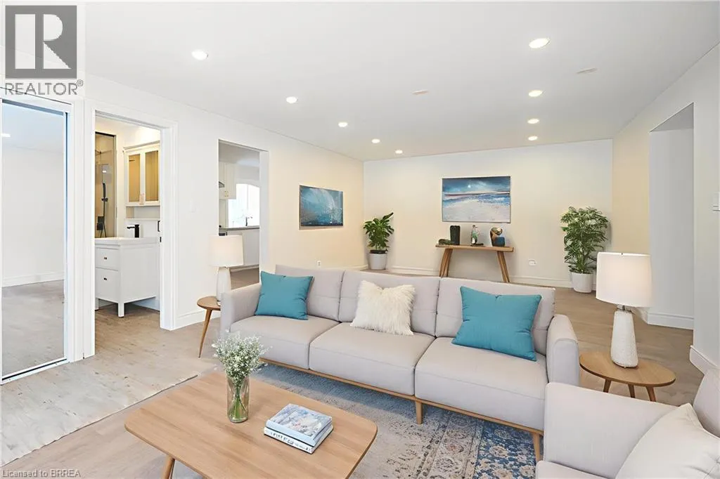 King George Road to Olivetree Road to Casson Lane Welcome to 20 Casson Lane, Brantford - a fully renovated 2-bedroom, 1-bathroom walkout lower unit that truly doesnât feel like a basement. This bright and spacious unit offers nearly 1,500 sq ft of living space, with tons of pot lights and large windows throughout, bringing in an incredible amount of natural light. The layout features two large bedrooms, a spacious living room, and a separate TV room that can also serve as a home office or dining room. The unit has been completely renovated and features new hardwood flooring throughout, quartz countertops, gold hardware and a modern glass shower. The kitchen is a standout with upgraded built-in appliances, refinished cabinetry, quartz counters, and wall-to-wall pantry storage. An in-unit washer and dryer adds to the convenience. Enjoy access to a large shared backyard that is maintained for you, as well as an exclusive parking space. Rent is $2,200 per month plus 40% of utilities. Located close to public transit, parks, a golf course, and shopping - 20 Casson Lane is a great option for anyone looking for space, light, and quality finishes. (id:27476)