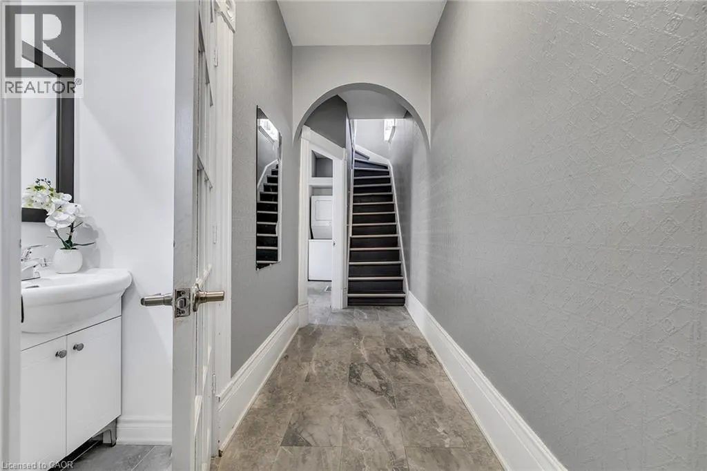 Brant Ave to St. James St to William St. Welcome to a stunning home located in Brantford's Victorian District. This charming and spacious 3 bed, 1.5 bath main + second floor unit features 10' ceilings, Porcelain tiles, a new powder room (Oct 2025), main floor laundry, kitchen, living and dining. Upstairs offers 3 spacious bedrooms, and a 4-pc bath. Professionally done exterior painting, gives a fresh and modern finish. Don't miss this charming, move-in ready home. (id:27476)