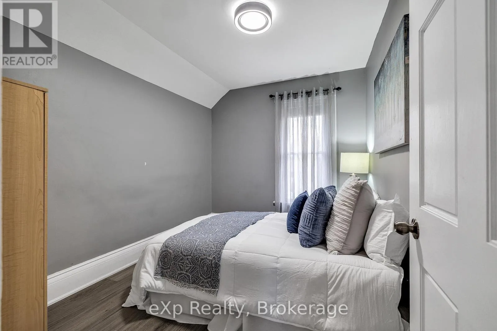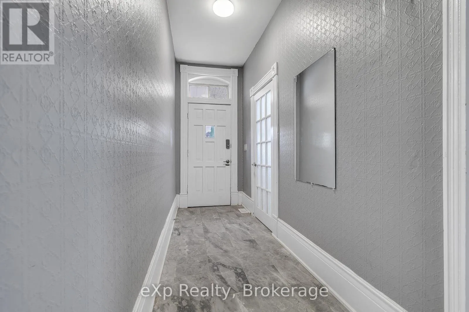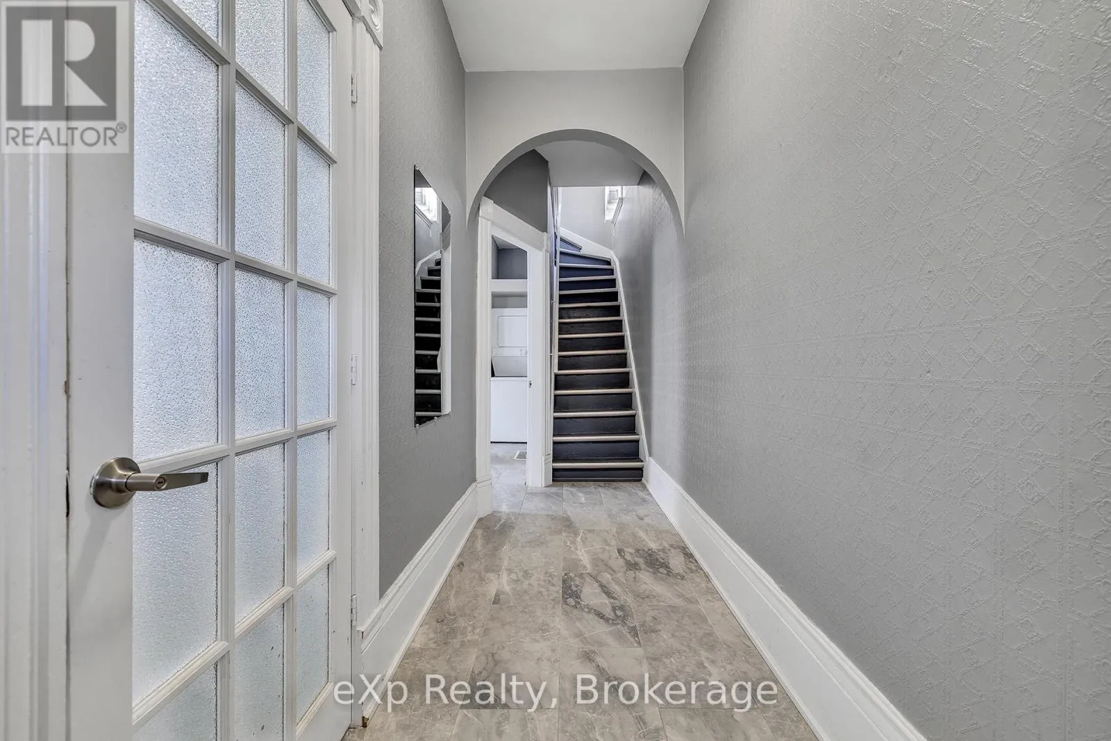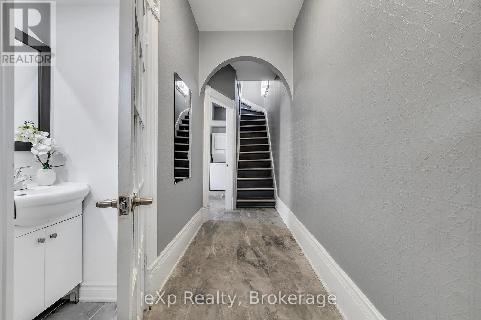 Cross Streets: St Paul Ave & Brant Ave. ** Directions: Brant Ave to St. James St to William St. Welcome to a stunning home located in Brantford's Victorian District. This charming and spacious 3 bed, 1.5 bath main + second floor unit features 10' ceilings, Porcelain tiles, a new powder room (Oct 2025), main floor laundry, kitchen, living and dining. Upstairs offers 3 spacious bedrooms, and a 4-pc bath. Professionally done exterior painting, gives a fresh and modern finish. Don't miss this charming, move-in ready home. (id:27476)