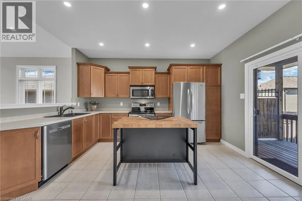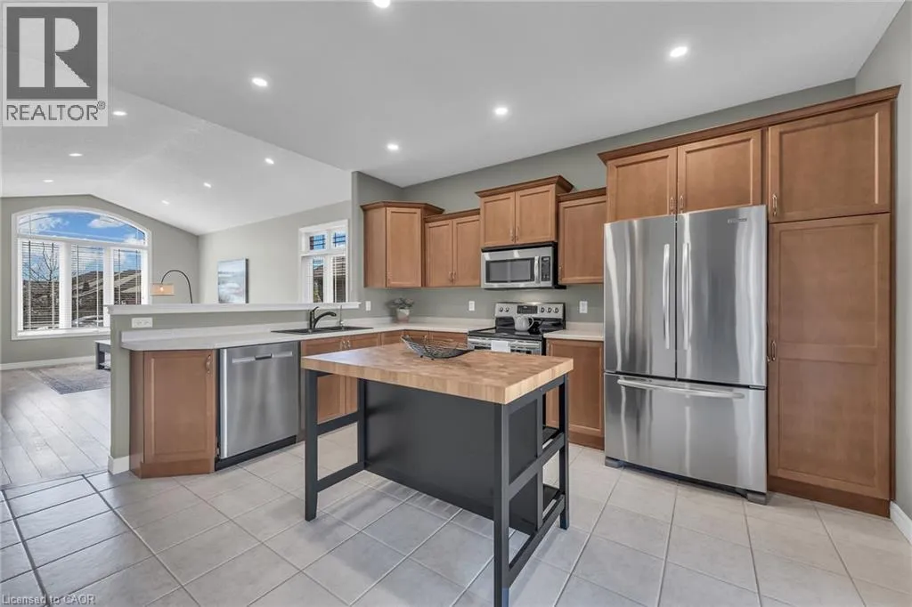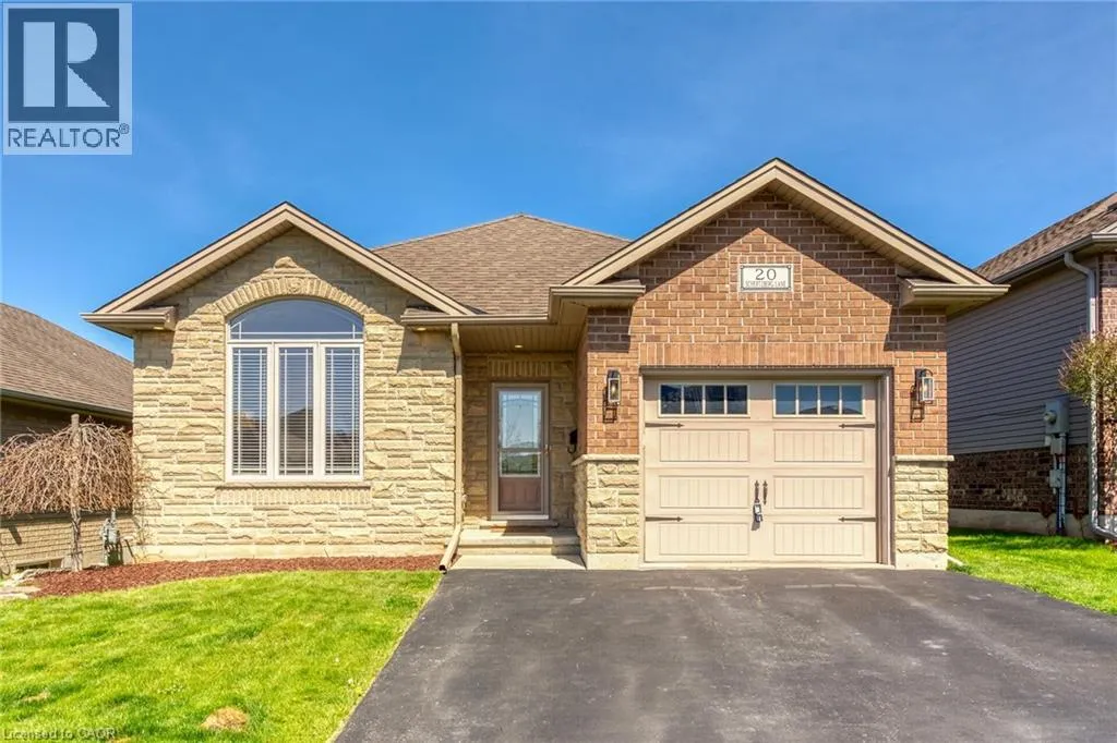 Conklin to McGuiness to Fisher to Schertzberg Immaculate bungalow on a quiet street in popular West Brant, built in 2011. This open-concept home features soaring ceilings and a bright, spacious eat-in kitchen overlooking the dining and living areasâperfect for everyday living and entertaining. The sunny living room showcases hardwood floors and large windows that flood the space with natural light. Sliding doors from the kitchen lead to a covered rear deck with natural gas BBQ hookup, overlooking a generous fully fenced yardâan ideal spot to relax and enjoy your day. Foundation trees planted along rear fence line. Two well-proportioned bedrooms and a spacious four-piece bath complete the main floor, offering comfortable, accessible living. The fully finished basement features large windows for added natural light, a spacious family room with gas fireplace and pot lights, two additional bedrooms (one currently used as an exercise room), a full bath, and a large utility room providing excellent storage. A fantastic layout for empty nesters with visiting guests or grandchildren, or for families needing extra space. Recent updates include stylish new windows installed July 2025. Located in a quiet, family-friendly neighbourhood close to shopping and parksâthis is truly the perfect bungalow. (id:27476)