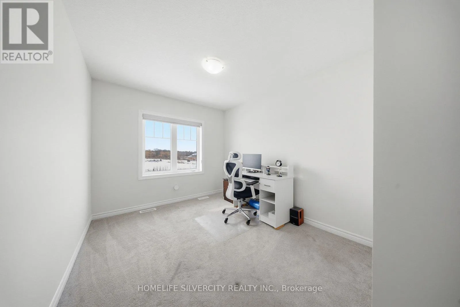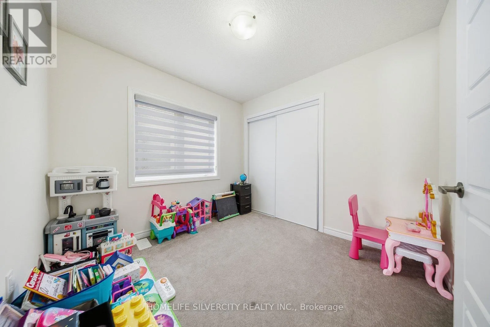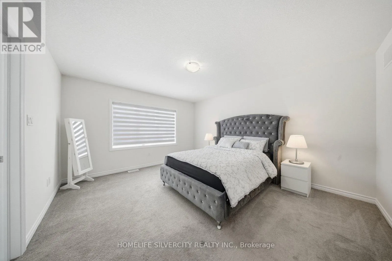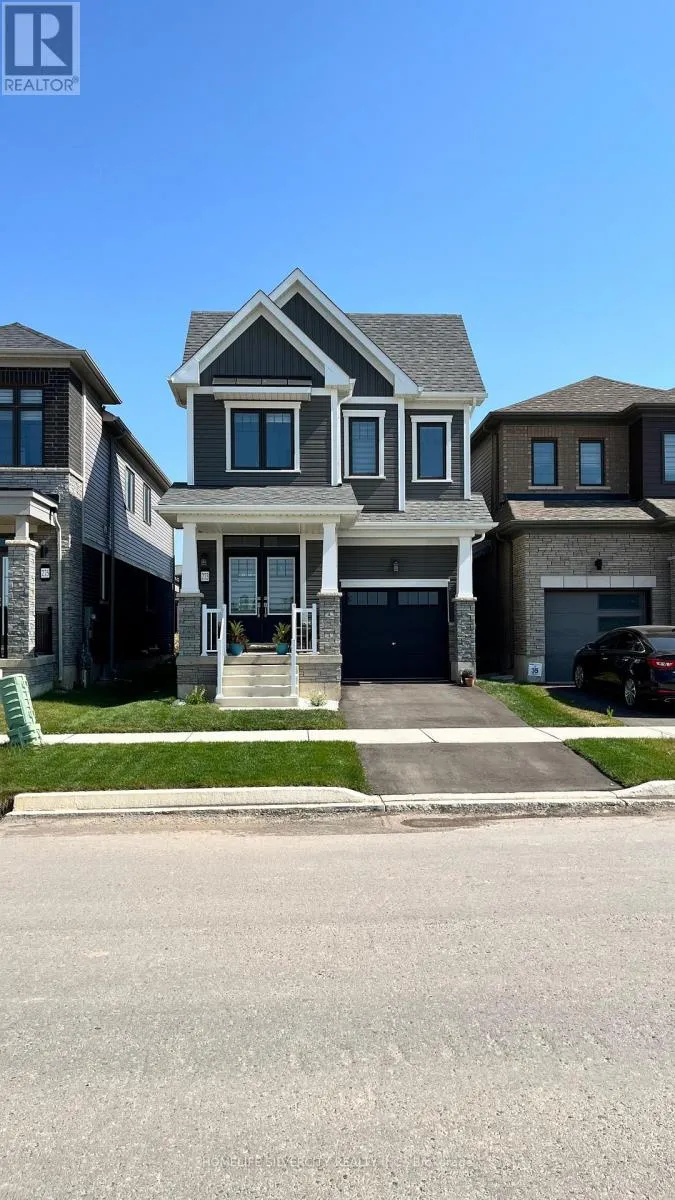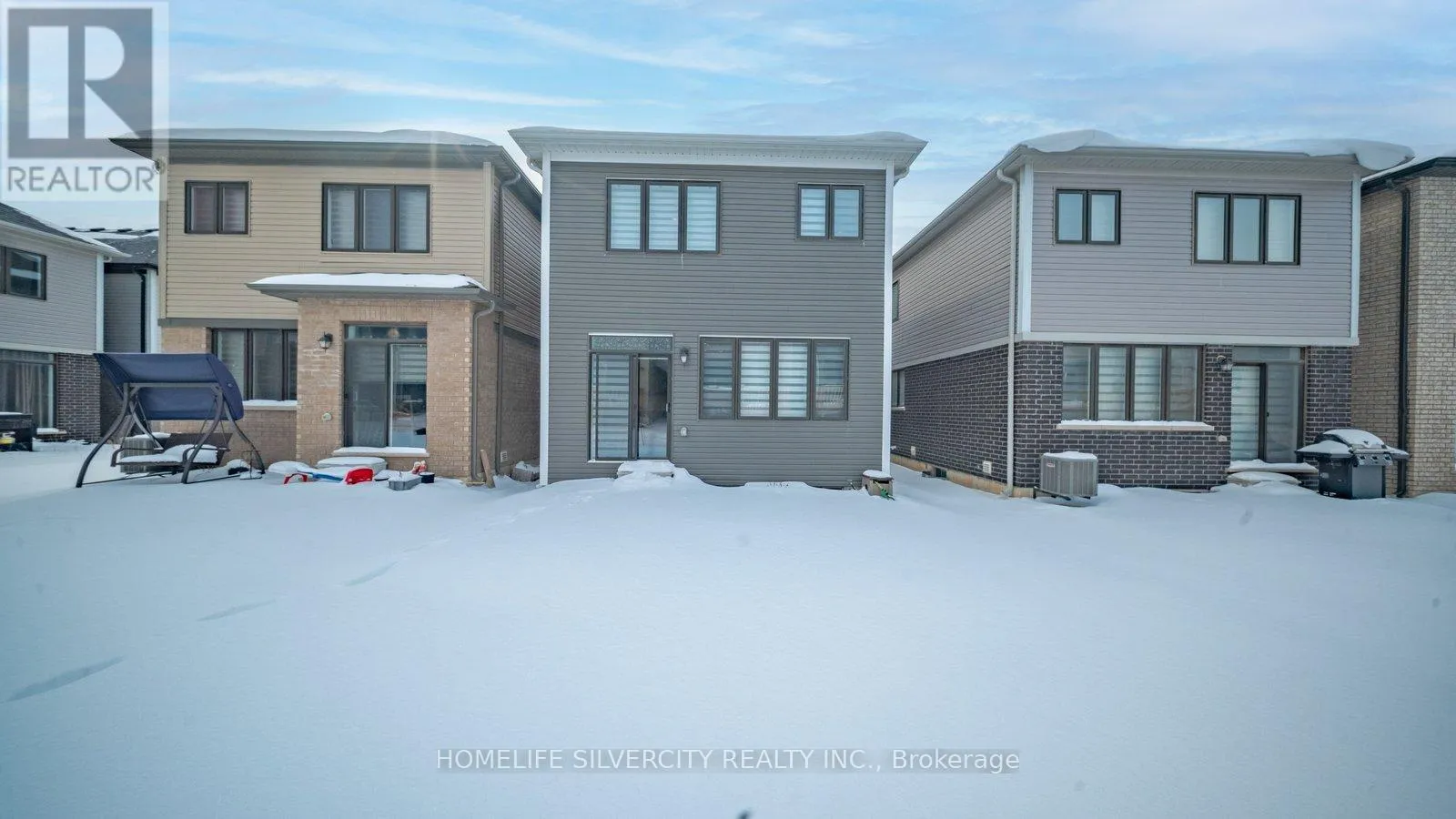 Holder Dr & Gillespie Dr Welcome to your dream Home! Located in the sought-after Empire South neighborhood of West Brant. This home is built in 2022, spacious 4 bedrooms, 3 bathrooms, Double Door front Entrance, (1863 sq. ft), detached home situated on a premium pond-facing lot in a growing Brantford community. Enjoy peaceful views, a school bus stop at the front and steps to a future park, making this an ideal family location. The main floor offers a bright open-concept layout with upgraded smooth ceilings, upgraded lighting, zebra blinds. The modern spacious kitchen featuring upgraded cabinetry with quartz countertops, large breakfast area with double sink and dishwasher. The spacious great room flows seamlessly, with sliding doors leading to the large backyard. Inside access to the garage completes this level. A hardwood staircase with modern metal pickets leads to the upper floor, upstairs you'll find three generously sized bedrooms with 4 pc full bath. The primary Bedroom with large walk in closet ; 4-piece Ensuite with tub and separate shower. Upper level laundry. The unfinished basement provides excellent future potential with upgraded large windows, rough in bath, 200 AMP (Electrical panel). Located close to schools, parks, Plaza, walking trails and many more amenities. (id:27476)