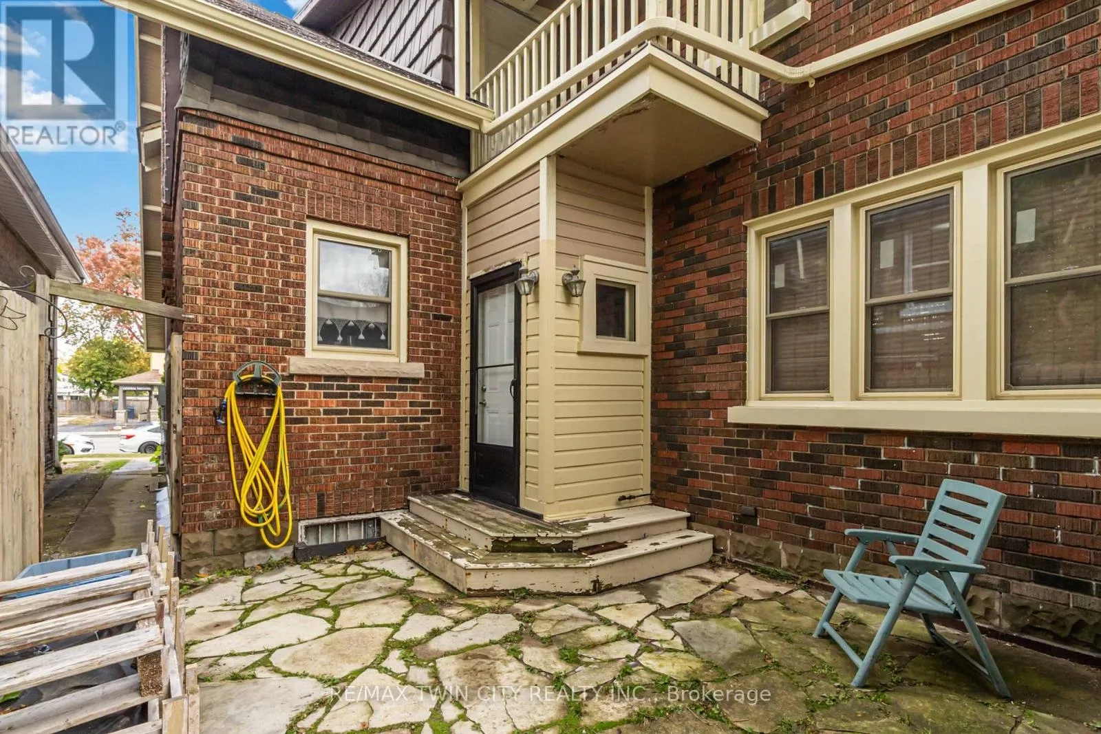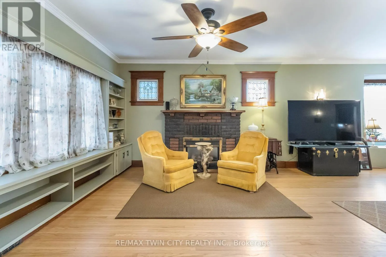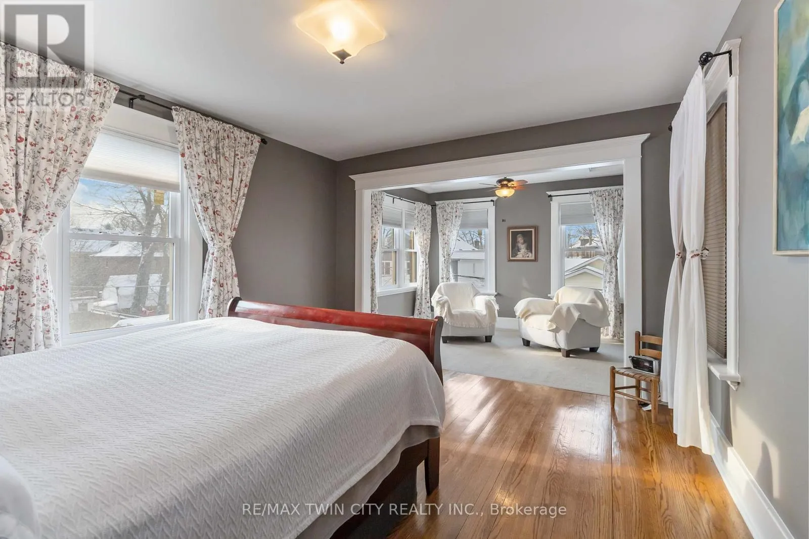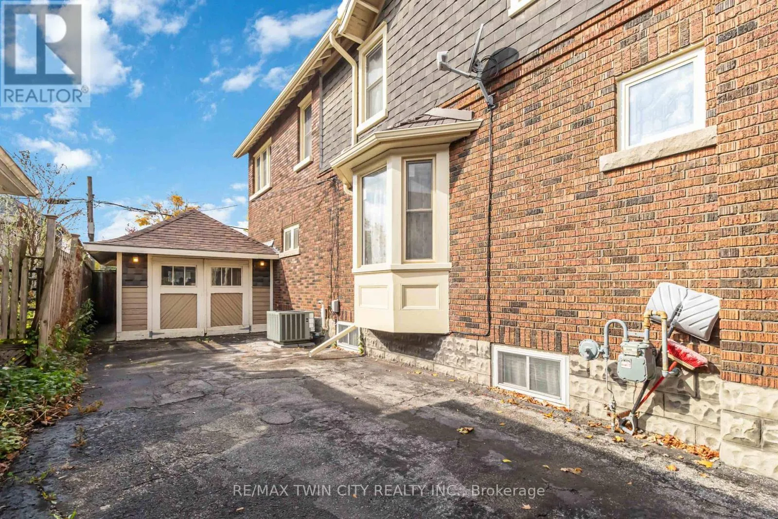 Cross Streets: Lorne Cres. ** Directions: From the 403 head south on King George Road (turns into St.Pauls). Turn left onto Brant Ave and home will be on the right. Classic charm meets modern comfort in this beautifully maintained brick 2-storey home, ideally located on Brant Avenue close to parks, schools, shopping, and transit. Offering over 2,000 sq ft of living space, this home is far more spacious than it appears and showcases timeless character throughout, including refinished red oak hardwood floors, rich original chestnut trim, oversized baseboards, crown moulding, bay windows, and elegant French doors. The formal living room and main-floor family room each feature gas fireplaces, creating warm and inviting spaces ideal for both entertaining and everyday living. The updated eat-in kitchen blends classic style with modern function and features cherry cabinetry, granite countertops, ceramic tile flooring, stainless/professional-series appliances, and a steel entry door. Upstairs, the oversized primary bedroom is a true retreat with a sitting area or sunroom, walk-in closet, and private balcony, complemented by two additional bedrooms and a 4-pc bathroom. The lower level awaits your personal touches offering an unfinished area with a separate basement entrance, providing excellent potential for a home-based business, in-law setup, or additional living space. Outside, enjoy a large covered front verandah, a private fully fenced backyard with flagstone patio, an attached carport, and a detached garage or workshop with electrical. Significant updates include a metal roof, new windows on the main and upper levels (2022), new security lighting (2022), and new eavestroughs (2024), along with attic insulation. This is a rare opportunity to own a character-filled home with meaningful upgrades in a prime location-this one truly must be seen to be appreciated. (id:27476)