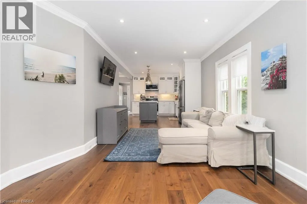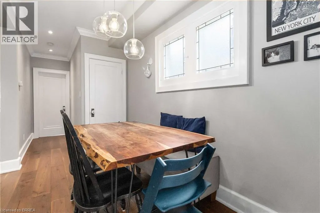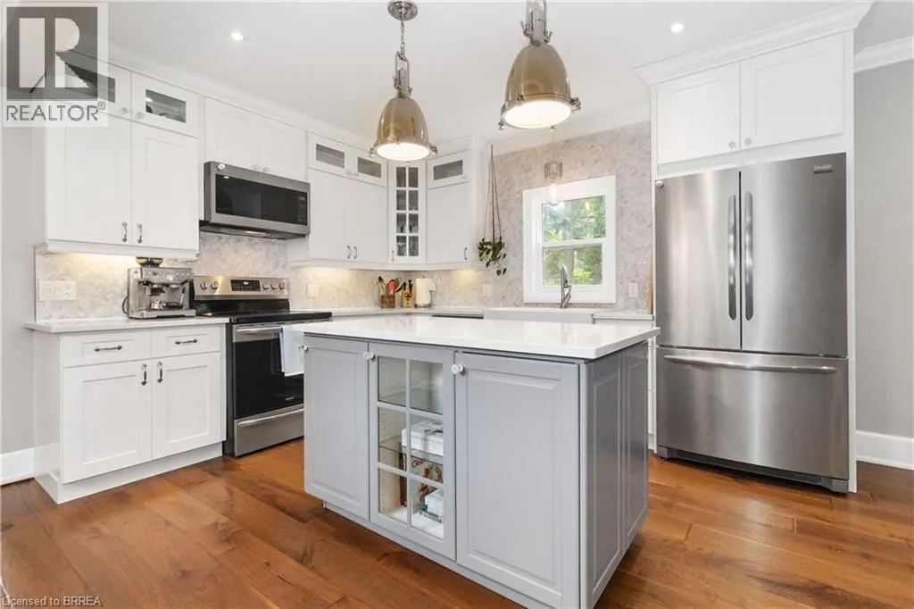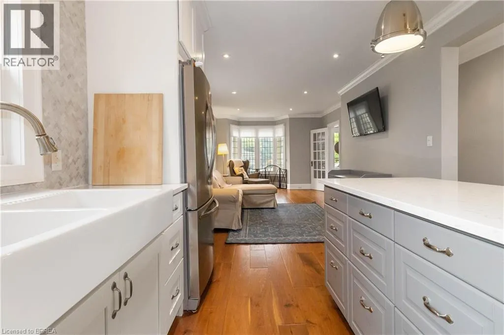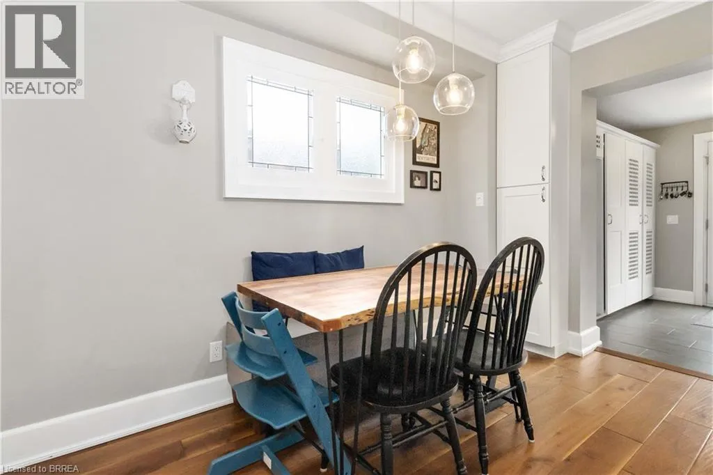From Highway 403 - take exit 36 toward Cambridge, Hwy 24 North - in 300m - left onto Fairview Dr - in 150m - left onto King George Rd - in 2.6kms - right onto Dufferin Ave - in 400m - left onto Morrell St - in 100m - right onto Lincoln Ave to #19 19 Lincoln Ave represents a shining example of handsome curb appeal & historic charm combined with modern updates from top to bottom. This family home is situated in the heart of Brantford's sought after Dufferin neighbourhood. Welcoming and alluringâfor those who appreciate an abundance of natural light complemented by a contemporary colour scheme. This seldom offered home also affords many upgrades such as FA gas furnace (2011), shingles (spring of 2014), an extensive renovation in 2015 resulted in an attractive open main level floor plan the welcomes you entering from the bright front foyer. It's hard not to smile with eyes wide when entering the living room at front of the house featuring classic leaded glass bay windows. Turning to the modern yet classic kitchen with white cabinetry, a large island with an abundance of added storage, all complimented by premium quartz surfaces and shining stainless appliances framed by resilient engineered hardwood. The rear of the main level features more storage, double doors leading to the back yard and a practical and convenient 2 piece washroom. Upstairs features 3 bedrooms, all in soothing neutral tones, original oak hardwood in excellent condition updated vinyl windows. The 2nd level is complete with a 4 piece washroom. In the basement - you will also find newer windows, resilient vinyl plank flooring in the Rec Room and renovated Laundry area. Well thought out storage is also featured in the lower level along with updated mechanicals. The back yard features a newer deck (2019), enough grass and gardens to enjoy but won't take your entire weekend maintaining - and a detached single car garage (recently painted) with shingles replaced in 2013. I dare you not to fall in love with this truly lovely home in a highly desired area. (id:27476)