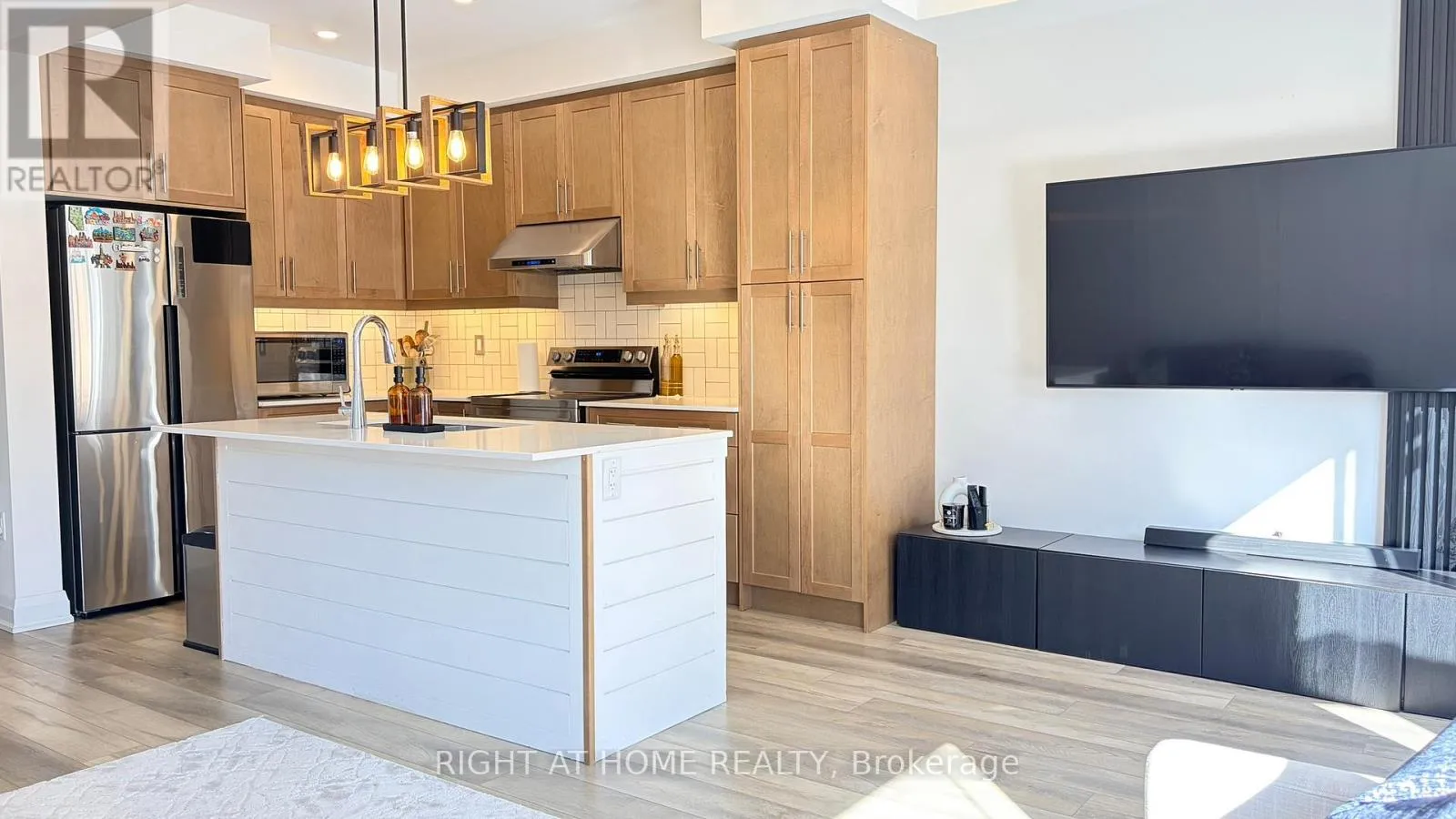 Cross Streets: Shellard Ln & Blackburn Dr. ** Directions: West Brantford. Welcome to this exceptional 3-bedroom, 2.5-bath freehold end-unit townhome built in 2022 by renowned Losani Homes. With only one owner since 2023, this property has been meticulously cared for and thoughtfully upgraded throughout. Boasting approx. 1,900 sq. ft of living space (above & below grade combined). This house offers the feel of a detached home thanks to its oversized 1.5-car garage with EV charger outlet installed, extra-wide driveway, and end-unit design, this home stands out for style, space, and functionality. The main floor features 9 ft ceilings, elegant wainscoting, and an open-concept layout filled with natural sunlight. A modern kitchen showcases quartz countertops, quality finishes, and a bright breakfast area overlooking the backyard. Pot lights on all floors - inside and outside - create a warm and inviting ambiance day and night. Upstairs, enjoy three spacious bedrooms including a large primary suite with a walk-in closet and a beautifully upgraded ensuite with quartz counters. The convenience of upper-level laundry adds to the home's practicality. The finished basement provides additional living space and offers potential to be converted into a future rentable suite. Step outside to a fully fenced backyard, complete with a stylish floating deck, perfect for relaxation and outdoor entertaining. Located in a family-friendly Brantford community close to parks, trails, schools, shopping, and major roadways, this home offers the perfect blend of comfort, modern features, and great curb appeal. This is truly a move-in-ready home that checks all the boxes, come see it in person and experience everything it has to offer! (id:27476)