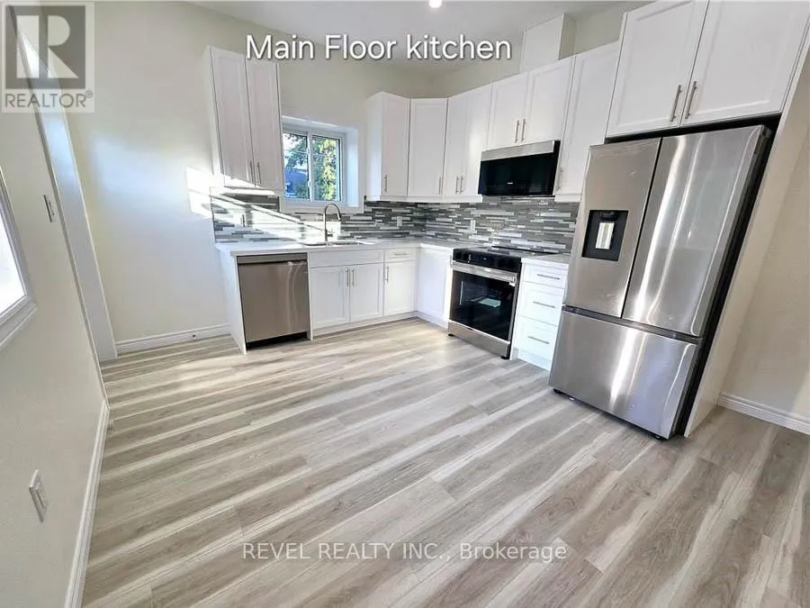 Cross Streets: Chatham Street and Rawdon Street. ** Directions: Chatham St and Rawdon St. Welcome to this newly built main floor unit in a legal duplex, ideally situated on a corner lot in a quiet, mature Brantford neighbourhood. This bright and modern unit offers a spacious and highly functional layout, perfect for families or professionals seeking a premium rental opportunity. The main floor features four bedrooms and three washrooms, including one full bathroom and two convenient two piece bathrooms. One bedroom is thoughtfully designed with a separate entrance and its own two piece washroom, making it ideal for a home office, studio, or professional use. Enjoy an open concept kitchen with white cabinetry, stainless steel appliances, modern backsplash, and ample counter space, seamlessly flowing into the living area. Nine foot ceilings throughout the main floor enhance the sense of space and natural light. High end finishes, wide plank flooring, and contemporary fixtures are featured throughout the unit. This unit includes in suite laundry, multiple entrances for added privacy and convenience, access to private basement, and two parking spaces. Located close to parks, schools, and amenities, this property offers both comfort and versatility in an excellent location! (id:27476)