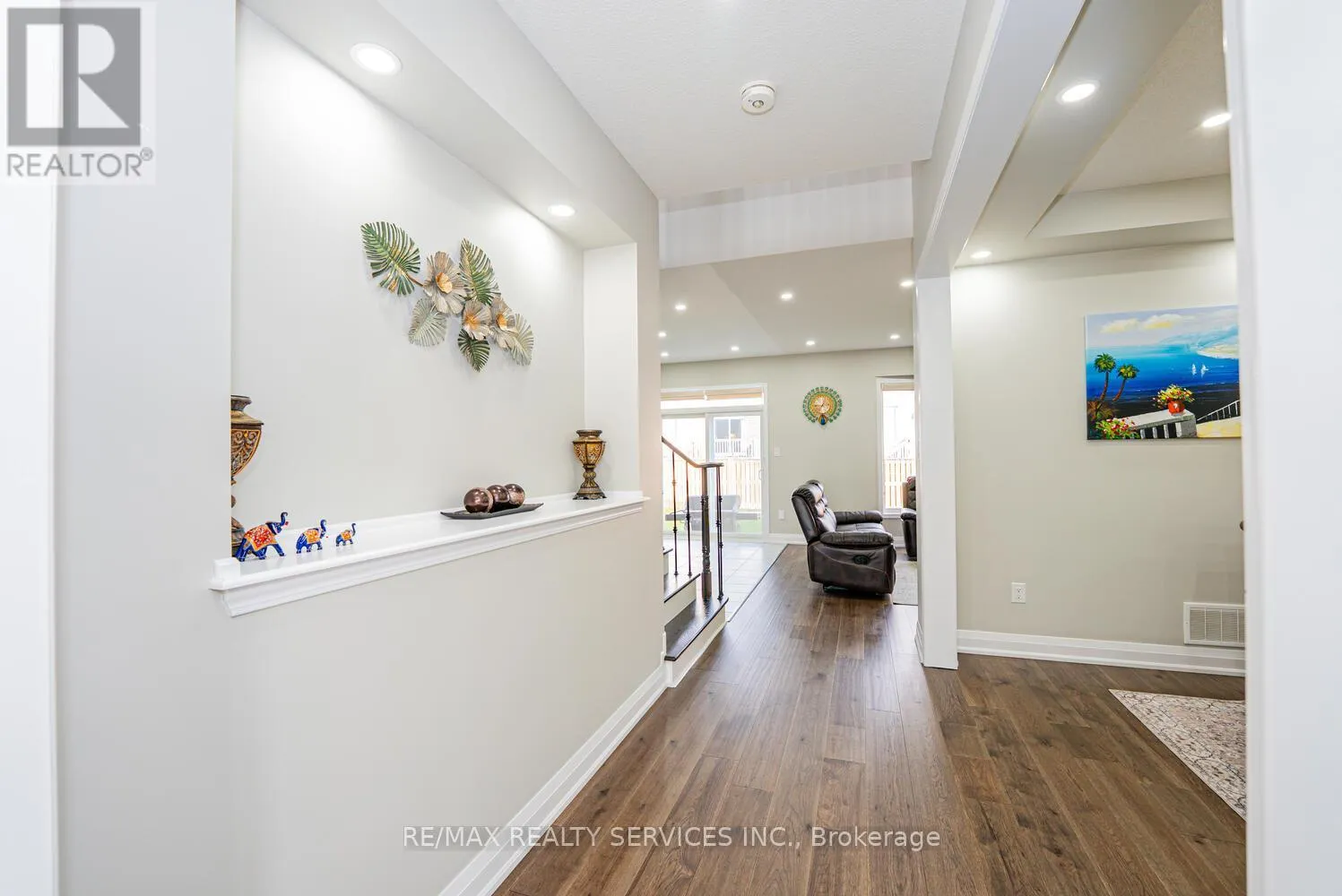 Shellard Lane/Powell Rd Beautiful all-brick 4-bedroom Ashford Model home in the desirable West Brant community-perfect for growing families! Features include a front-entry office, 9-ft ceilings on the main level, a separate dining room, and oak hardwood flooring throughout the principal living areas. The gourmet kitchen offers stainless steel appliances, upgraded cabinetry, and a central island, with a mudroom off the kitchen providing convenient access to the garage. The bright breakfast area walks out to a fully fenced backyard, while the spacious family room features a bay window overlooking the yard The primary bedroom boasts generous his-and-her walk-in closets and a 5-pcensuite with a soaker tub and glass shower. The second floor offers three additional spacious bedrooms with closets and large windows, a convenient upper-level laundry room, and a computer loft with a walk-out to the balcony showcasing beautiful views of the pond and walking trail-perfect for enjoying stunning sunsets and resort-style living. UNBEATABLE SCHOOLLOCATION: Designated schools include Edith Monture Elementary School and Walter Gretzky Elementary School. Plus, the upcoming Blanche E. Williams Public School (opening September2026) is located near the intersection of Shellard Ln & Anderson Rd-just steps from Powell Rd and approximately a 2-3 minute walk-an exceptional advantage for families with young children. (id:27476)