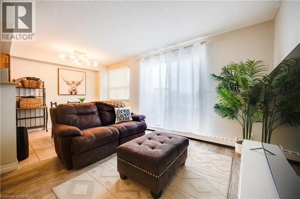 West from Garden Avenue and East from Gretzky Parkway. Bright and cozy 1-bedroom condo with an open-concept layout, featuring a functional kitchen and comfortable bedroom. Enjoy the balconyâperfect for relaxing or entertaining. Laundry is conveniently located in the unit. Ideally situated close to highways, shopping, Mohawk Park, schools, and public transit. The building offers elevator access, a fitness room, and a community room. Includes 1 covered parking spot, visitor parking, and a storage locker. (id:27476)