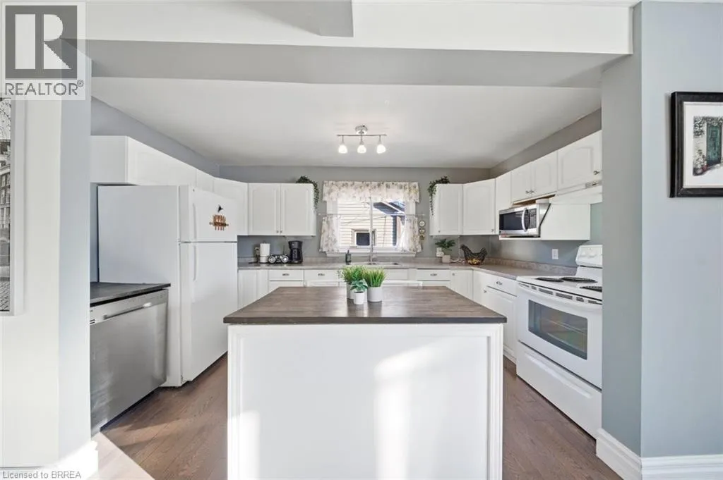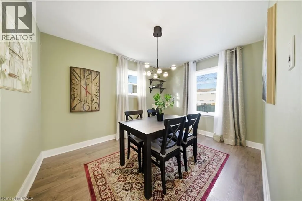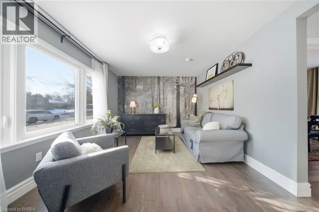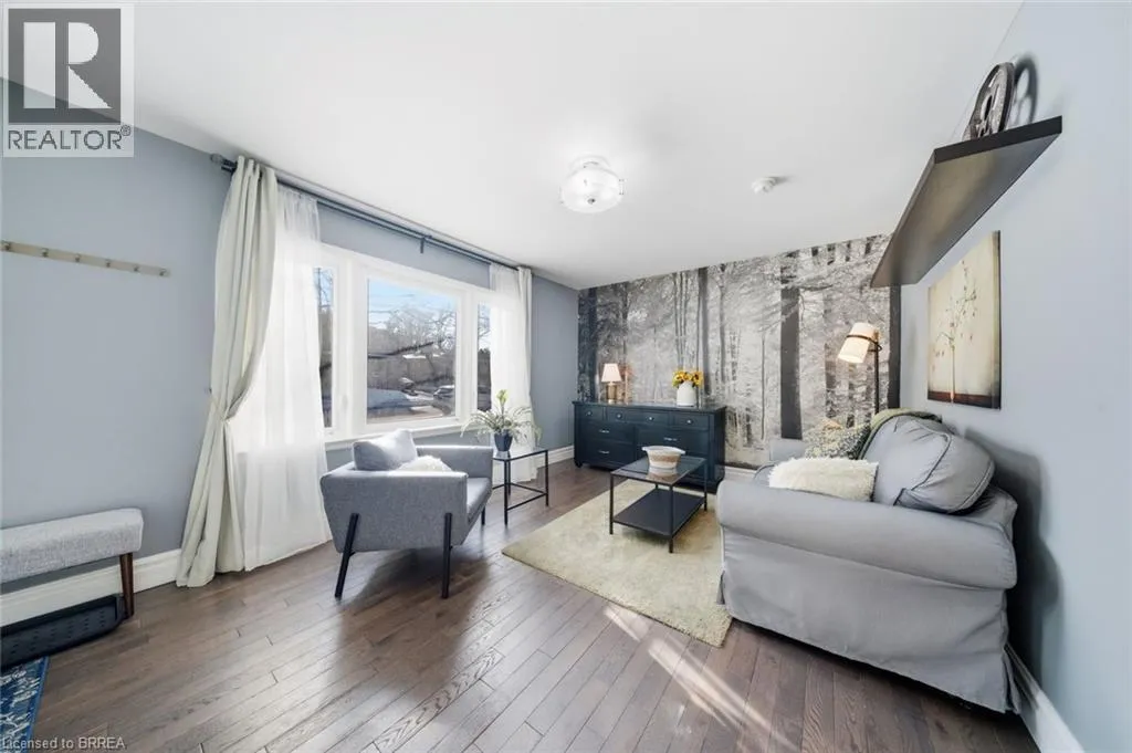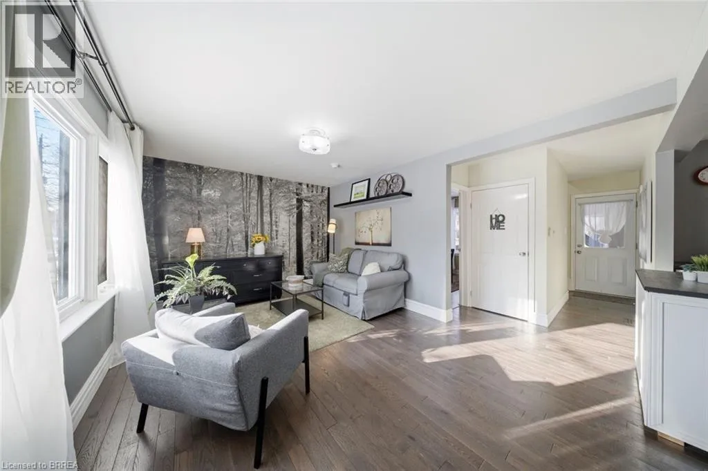 Take North Park to Wood st Rare Opportunity in a Quiet, Central Neighbourhood â Ideal First Home Welcome to this inviting 1½-storey home offering 3 bedrooms and 2 updated baths, perfectly designed for comfortable everyday living with flexible spaces to grow. The open-concept main floor features a bright kitchen with island, plus a separate dining room that can easily double as a home office or guest bedroom â ideal for remote work or hosting visitors. A practical mudroom off the back leads to the fully fenced yard, summer patio area & deck , where mature maple trees in both the front and backyard create a peaceful, natural setting. Upstairs, youâll love the 2 huge upper bedrooms with large windows and beautiful natural light, along with a charming foyer at the top of the stairs â perfect for a cozy reading nook or study area. The finished lower level adds even more living space with a family room, additional 3 rd bedroom , and convenient 3-piece bath â great for guests, teens, or movie nights. Outside, enjoy multiple outdoor living spaces, gardens, and a tree-lined street. Large garden shed included for your tools and yard equipment , great storage building . The asphalt driveway provides parking for 3 vehicles off-street, a rare bonus in this area. Set in an excellent central location, just short drive to or you can walk to Wood Street Park, Wayne Gretzky Sports center , Brantford Aquatic Facility, shopping, transit, and everyday amenities. Tucked away yet close to everything â this is a quiet neighbourhood where homes rarely come up for sale, making it a fantastic opportunity for your first home. Additional updates include gas furnace, hydro, and central air conditioning, bathroom fixtures , lighting, newer wood and laminate flooring, most windows , decks front and back, to name a few. A warm, welcoming property with outdoor enjoyment spaces, mature trees, and versatile living areas â move in, settle down, and start building equity in a great community. (id:27476)