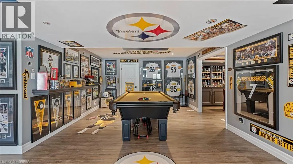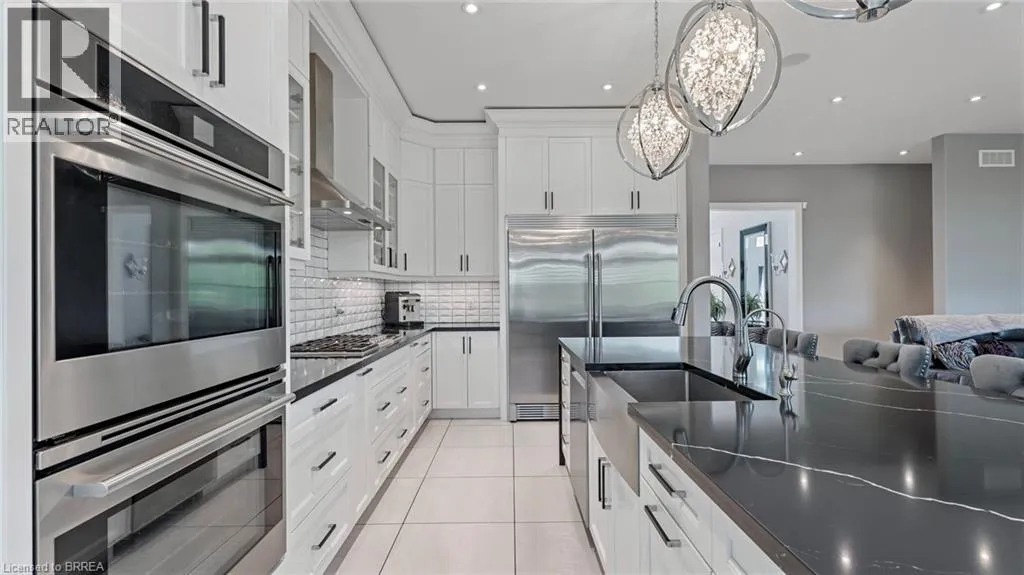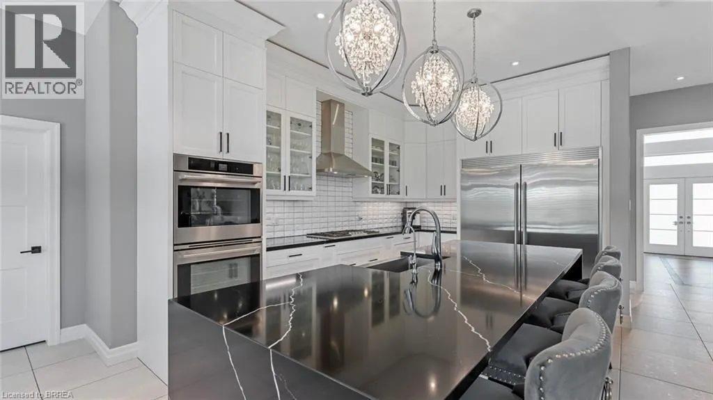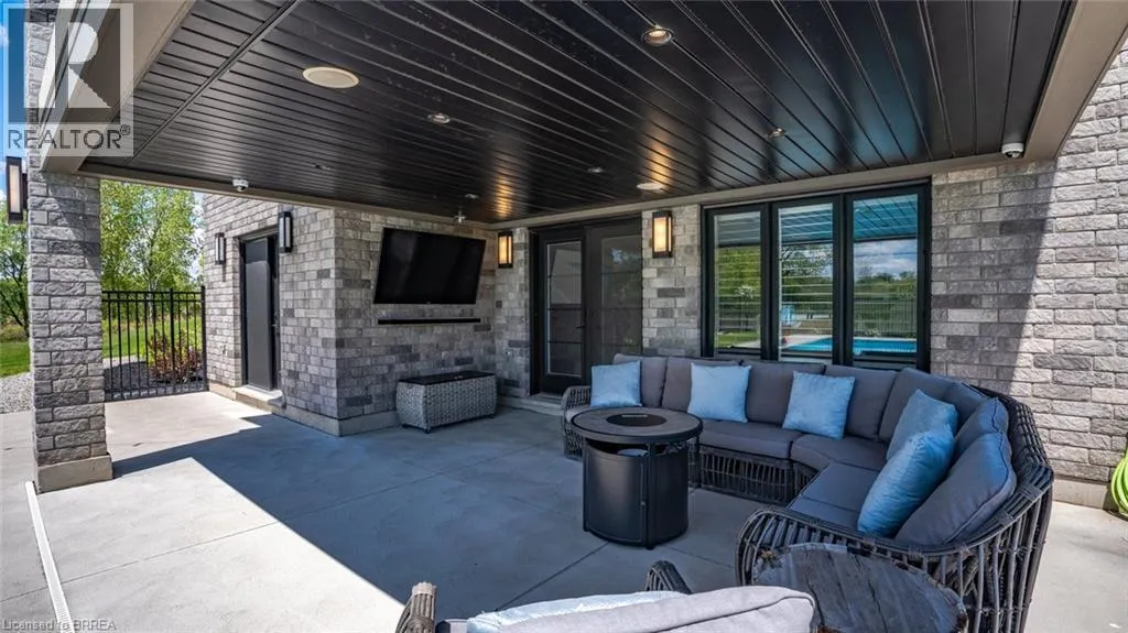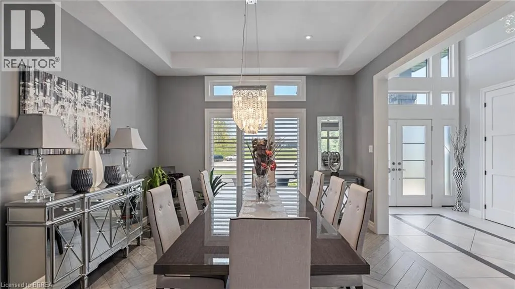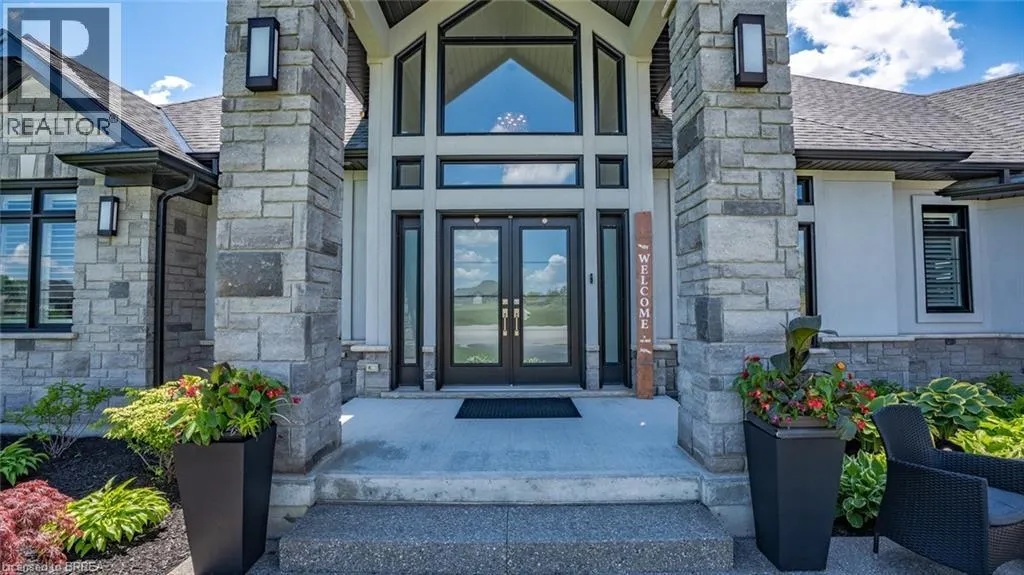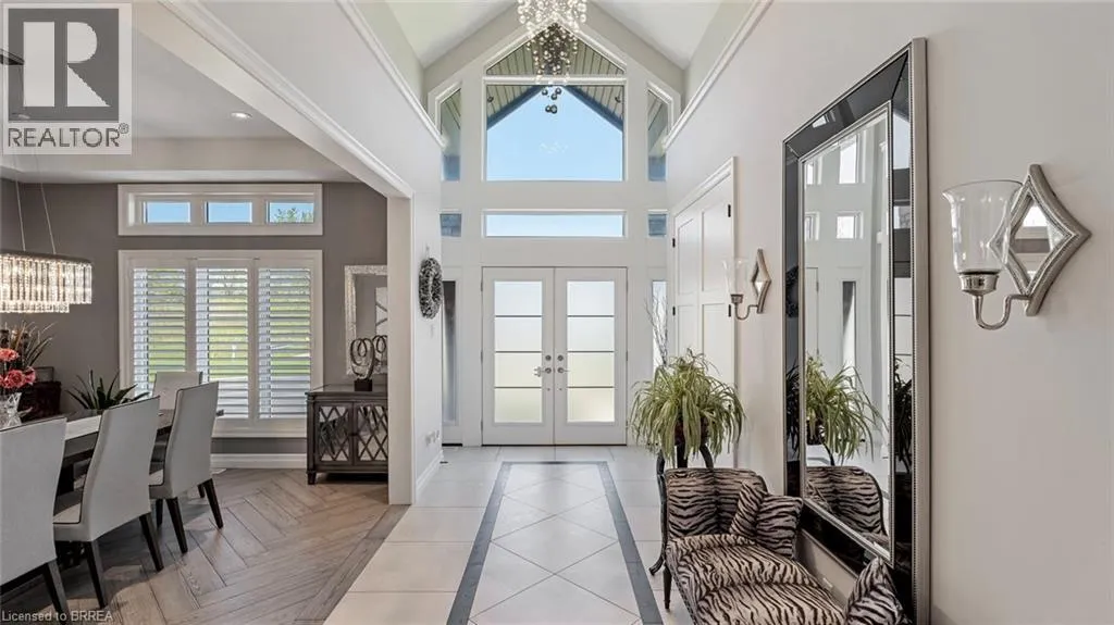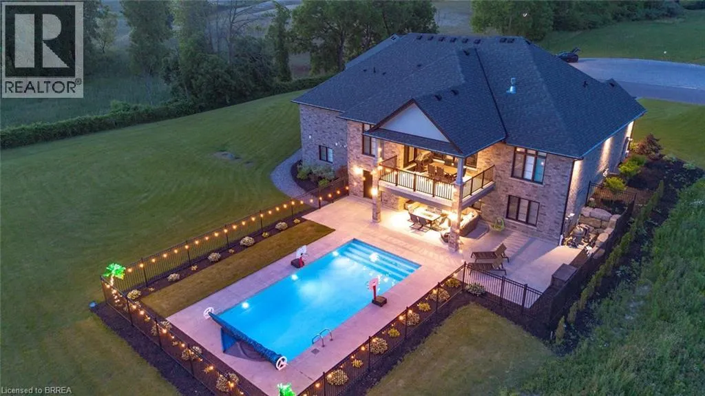 Mount Pleasant Road to Tedley Blvd to Harper Blvd to Ruijs Blvd Tranquility is defined as being âFree from Disturbance and no other phrase truly defines this home as perfectly as it does. Tucked away all by itself, in the most exclusive neighbourhood in all of Brantford, the Vallee Estates, there is no other property as private, luxurious and *tranquil* as this one is. We all live in the new world where home has become more than just a place to sleep- itâs become a place to LIVE, to entertain, to host and make memories in. Where you watch your kids grow and celebrate success together. Where you can't wait to get home after a long day, jump in for a swim and just melt into the backyard as you watch the sunset turn the sky on fire as it falls below the tree tops and you think to yourself: this is all mine.. you've made it, Welcome HOME to 41 Ruijs. Stepping into the front door, youâll immediately notice the sky-high cathedral ceiling above you and the polished tile floors below you, and everything else you would come to expect from a home of this caliber. The open concept floor plan turns the living area into the heart of the home, equipped with a chef inspired kitchen, waterfall island, floor to ceiling decorative fireplace, herringbone dining room floor, breakfast nook, pantry, and walk-out to the floating covered patio. Flow inside and out during all the summer events, that your new house becomes THE destination for, all summer long. With over FIVE THOUSAND SQUARE FEET of living space and a fully finished walk-out basement, this space really feels like more than just a house. Throw open the doors, turn up the music, and walk out to the pool deck to jump right in. The walk out basement gives this house that 'resort' feel- and the feeling isn't wrong! Wrapped with hand scraped concrete, landscaping and scenic views, with the water sparkling all day long and the wind whispering stay home today you'll wonder how you ever lived anywhere else. Because this is *the place* that will make you feel like youâre finally HOME. (id:27476)