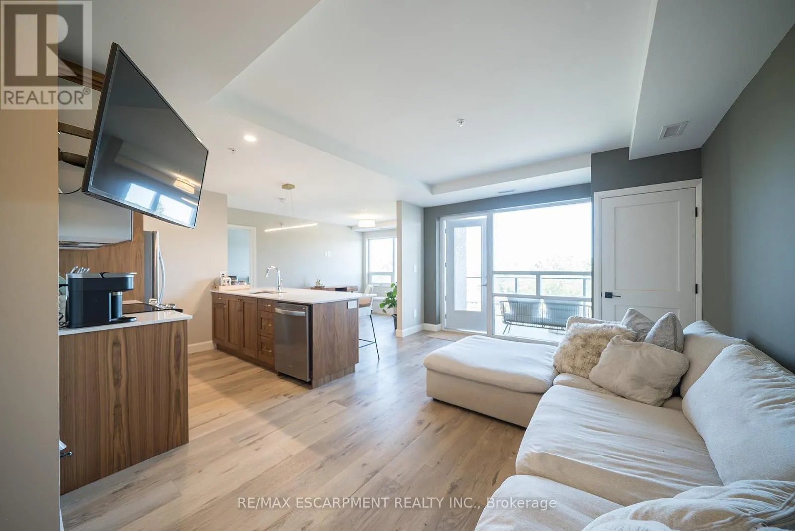 Cross Streets: Fairview Dr / Wayne Dr. ** Directions: Fairview Dr to Wayne Dr to Norman St. Welcome home to 34 Norman Street, Unit #502 in Brantford's desirable Fairview/Greenbrier neighbourhood. Located in The Landing, one of the areas premier condominium communities, this modern unit offers 1 bedroom plus a den, 1 bathroom, and 785 sq. ft. of thoughtfully designed living space. The bright bedroom includes a walk-in closet with in-suite laundry, while the upgraded kitchen features stylish cupboards, countertops, and brand-new stainless steel appliances. A spacious open layout provides flexibility with room for dining or a home office, and sliding doors lead to a large balcony with a quiet view. This unit also comes with 1 parking space and an oversized storage locker. The Landing offers exceptional amenities, including a fitness centre, a rooftop lounge with BBQ stations and gas fireplaces, a bar and lounge area, and a quiet library for relaxing or working. Set in Brantford's sought-after North End, the location provides convenient access to shopping, dining, schools, parks, and major highway routes, making it ideal for both commuters and those who love to stay close to city conveniences. (id:27476)