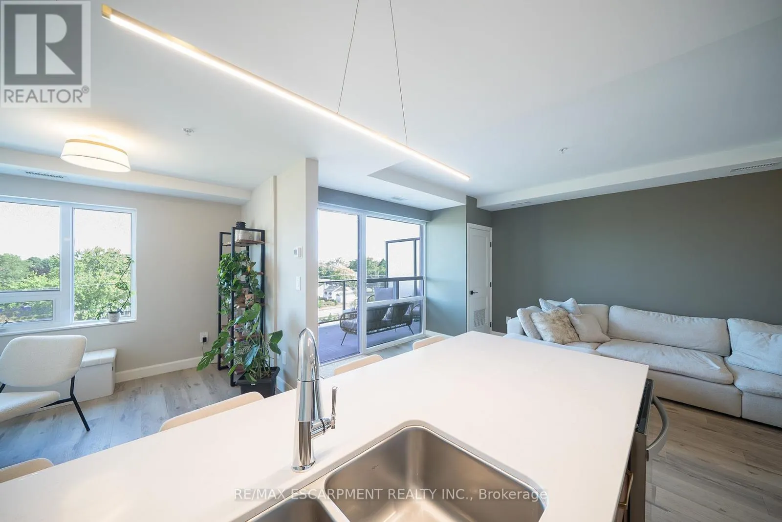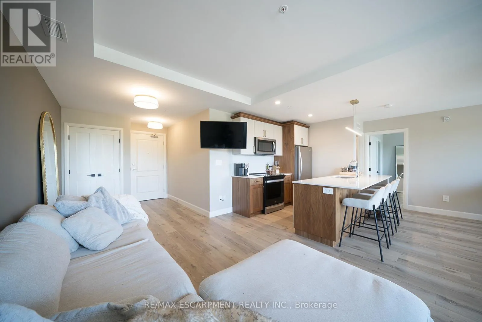 Cross Streets: Fairview Dr/Wayne Dr. ** Directions: Fairview Dr to Wayne Dr to Norman St. AVAILABLE FOR LEASE - Welcome home to 34 Norman Street, Unit #502 in Brantford's desirable Fairview/Greenbrier neighbourhood. Situated in The Landing, one of the city's most sought-after condominium buildings, this bright and modern unit features 1 bedroom plus a den, 1 bathroom, and 785 sq. ft. of comfortable living space. The open layout includes a stylish kitchen with upgraded cupboards, countertops, and stainless steel appliances, a spacious great room with room for dining or a home office, and sliding doors to a large balcony with a peaceful view. The bedroom offers a walk-in closet with the convenience of in-suite laundry. This unit also comes with 1 parking space. The Landing elevates condo living with luxury amenities: a fully equipped fitness centre, a rooftop lounge with BBQ stations and gas fireplaces, a welcoming bar and lounge area, and a quiet library for work or relaxation. Located in Brantford's North End, you'll enjoy easy access to shopping, dining, schools, parks, and major highway routes. (id:27476)
