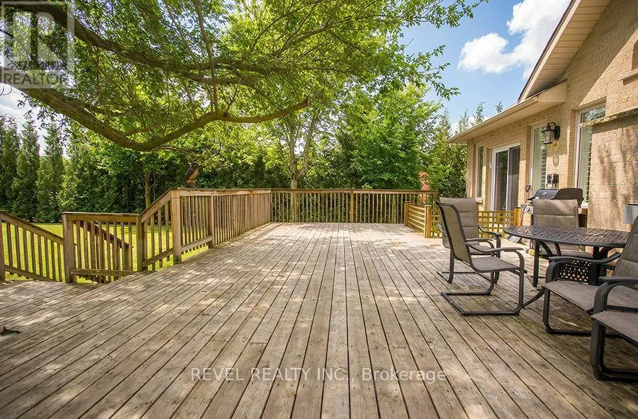 Cross Streets: Oakhill Drive & Franks Lane. ** Directions: Oakhill Drive to Franks Lane. Welcome to the prestigious Foxhill Estates community, where executive living meets resort-style comfort. Situated on a beautifully landscaped 0.732-acre lot, this impressive raised bungalow offers 3+1 bedrooms, 3.5 bathrooms, & over 4,481 sq ft of finished living space. From the moment you arrive, the curb appeal stands out w mature trees, cedar hedges, concrete walkways, & a triple-car garage w epoxy flooring & driveway parking for 8-10 vehicles. The backyard is truly a private oasis, featuring a heated saltwater in-ground pool, an expansive concrete pool deck, a wooden deck off both the kitchen & primary bedroom, an irrigation system, & two custom-built sheds. Inside, the main level showcases vaulted ceilings, maple hardwood flooring, LED pot lights, and a gas fireplace in the great room. The dining room features a large bay window w California shutters and comfortably seats 10. The professionally refinished maple kitchen offers granite countertops, stone backsplash, under-cabinet lighting, stainless steel appliances, a double-door pantry, and oversized patio doors leading to the deck - perfect for entertaining. The primary suite includes sliding patio doors to the deck, a walk-in closet, and a private ensuite w a soaker tub, standalone shower, and granite vanity. Two additional main floor bedrooms and a dedicated office over the garage w a skylight provide excellent flexibility for families or those working from home. The fully finished lower level offers exceptional in-law suite capabilities w a separate entrance, full kitchen w granite counters and stainless steel appliances, living area, bedroom, and full bathroom. Heated floors in the basement and garage add year-round comfort. A renovated recreation room w large windows and pot lights creates additional living and entertaining space. This exceptional Foxhill Estates property offers space, privacy, and versatility - ideal for multigenerational living, entertaining, and everyday executive comfort. (id:27476)