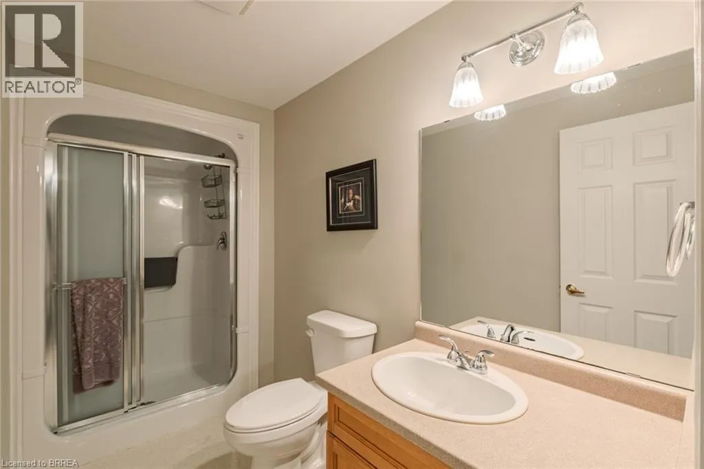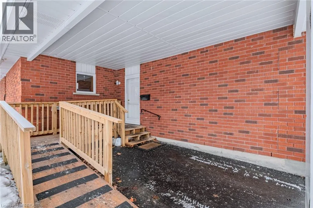 Welcome to this well-maintained end-unit bungalow condo in the highly sought-after Lynden Hills neighbourhood of Brantford, just minutes to Highway 403 and close to shopping, parks, and all major amenities. This bright 2+1 bedroom, 2 bathroom home offers low-maintenance living with a spacious open-concept living and dining area, a functional kitchen with ample cabinetry, a 3-piece bath, and two main-floor bedrooms, including one with walkout access to the private back deck. The fully finished basement features a cozy rec room with natural gas fireplace, a third bedroom, an additional 3-piece bath, and a utility/laundry room with plenty of storage. Complete with a carport and wheelchair-accessible ramp, plus a private deck for relaxing or BBQs, this is a fantastic opportunity for easy condo living in a prime location. Book your private showing today! (id:27476)