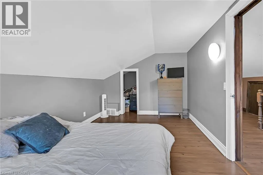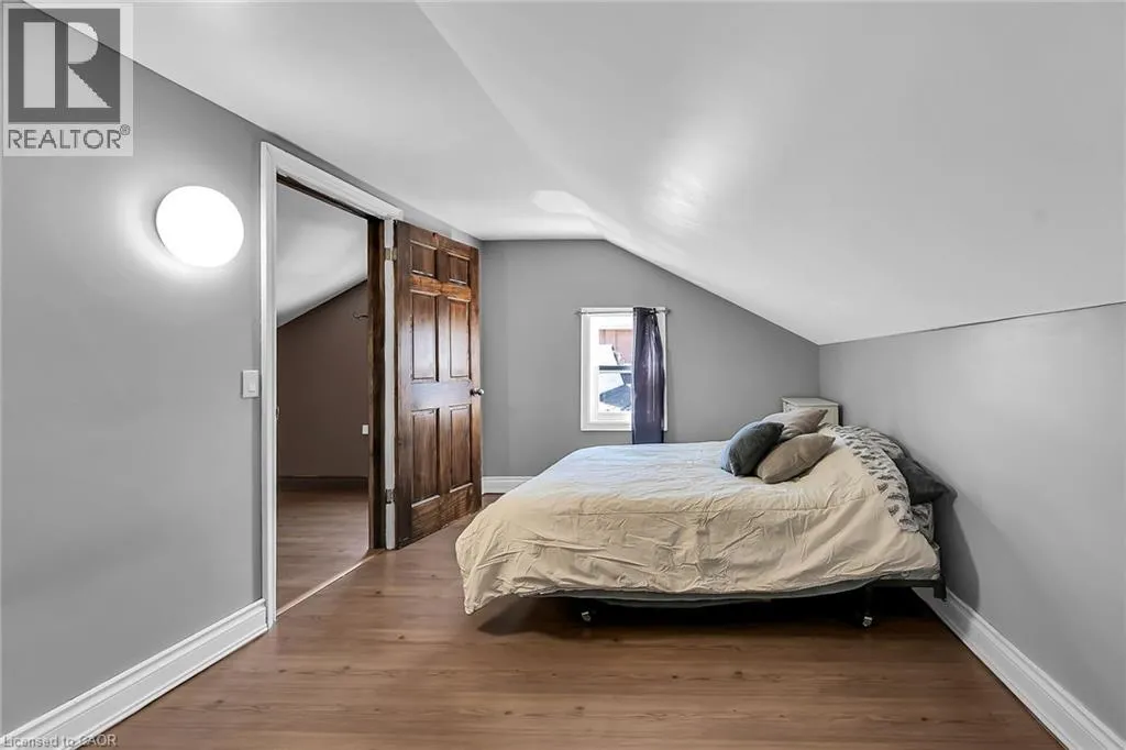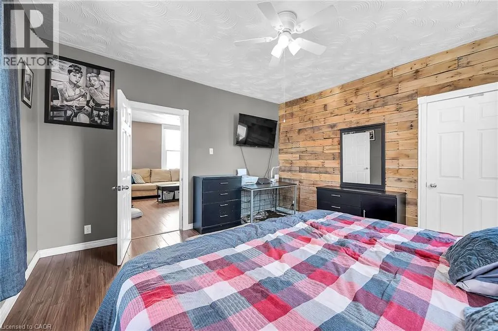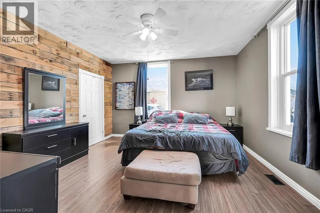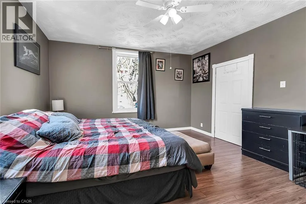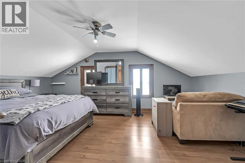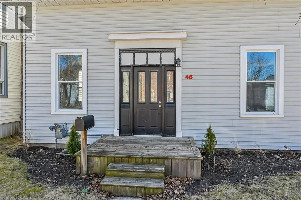 Mount Pleasant Street to Walnut Beautiful well maintained older home in nice area of West Brant offers 1.5 storey home plus recently renovated single car garage on a good size lot - fully fenced for your kids and fur babies! Quaint side porch welcomes you into the good size updated kitchen with newer stainless steel appliances, handy mudroom/laundry room on the back of the house with double garden door walk out to yard & entertaining patio. Large living room with two bright windows - all windows in the house replaced in 2024-25, main floor master bedroom and nice spa like bathroom with tiled walk in shower and jacuzzi tub - fantastic exhaust fan changes colour and plays music! Upstairs features two good sized bedrooms with closets and tons of attic space with easy access door - great for storage. Partial unfinished basement houses the mechanicals of the house including natural gas furnace and water heater. Single car garage/man cave loved by the current owner who is a car enthusiast - put an addition on the back, new concrete floor, new front roll up door as well as rear roll up door - doubles as a place to chill on rainy days while looking at the back 40. New privacy fence recently installed plus handy garden shed. Lots of parking - approx. 5 cars, mature trees and a quiet street make this home great for first time buyers, or even downsizers. Close to all amenities West Brant offers. (id:27476)