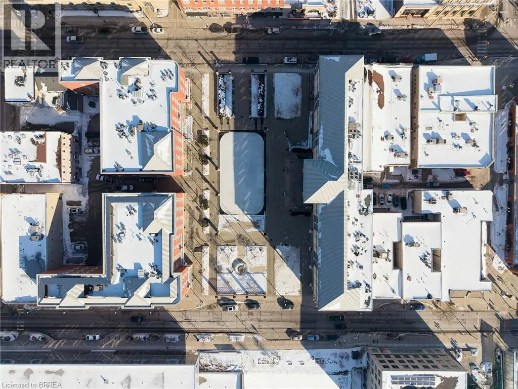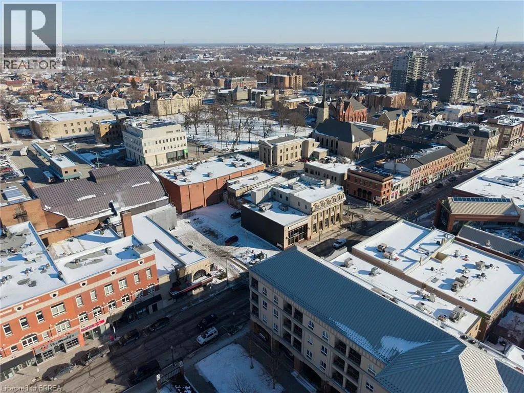 From Brant Avenue head east on Colborne Street. Building on the left hand side. Located Downtown at Harmony Square Welcome to 150 Colborne Street, Unit 407 â Downtown Brantford Living at Its Best! Step into style, comfort, and convenience with this fully renovated, loft-style 1-bedroom, 1-bathroom condo, ideally situated in the heart of downtown Brantford, directly overlooking vibrant Harmony Square. This stunning unit offers an unbeatable combination of modern living and prime location. Boasting high ceilings, a spacious private balcony, and sophisticated finishes throughout, this unit is designed to impress. The kitchen is a true showstopper, featuring rich navy cabinetry, ample storage and counter space, and stainless steel appliances â perfect for home chefs and entertainers alike. The open-concept layout seamlessly connects the kitchen, dining, and living areas, making entertaining both effortless and elegant. Step through French doors to your oversized balcony, large enough to accommodate outdoor dining or a cozy lounge setup â the perfect space to unwind while enjoying views of Harmony Square and all its seasonal events. The bright and airy bedroom is bathed in natural light thanks to a charming arched window and includes a generous closet. The updated 4-piece bathroom continues the modern aesthetic with stylish finishes and thoughtful design. Additional features include coin-operated laundry facilities conveniently located within the building, eliminating the need for off-site trips. The air conditioner was replaced in 2024. Location is everything â and this property delivers. Just steps from Wilfrid Laurier Universityâs Brantford campus, the Conestoga College campus, and the new YMCA/Laurier Recreation Complex. With countless restaurants, cafes, shops, and year-round festivals right outside your door, you'll be at the centre of it all. Amazing opportunity to experience one of Brantfordâs most dynamic and walkable neighbourhoods. (id:27476)